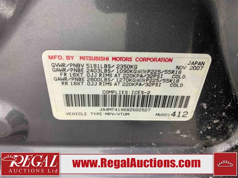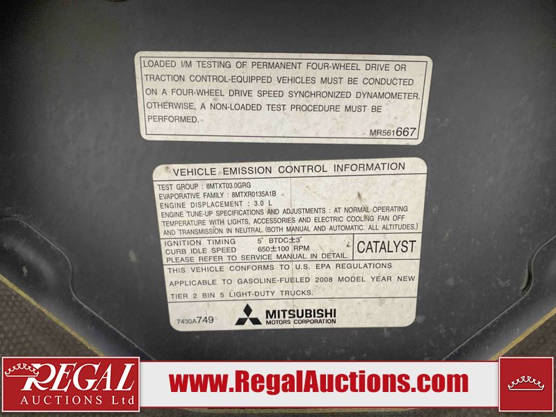 This 2008 MITSUBISHI OUTLANDER 4D UTILITY 4WD is powered by a 3.0L 4-cylinder gasoline engine and an automatic transmission. It is equipped with four-wheel drive. The SUV has seats for 5 people. The SUV has low mileage for its age. The vehicle has high-value options including a sunroof, leather upholstery, power seats, heated seats, a DVD Player, and navigation. The Tire Pressure light is on. The body looks to be in good condition overall. There is rust on the left rear fender, right rear fender, and right front fender. There is slight dent damage on the right front fender. There are very minor chips in many areas around the body. There are very minor scratches in many areas around the body. The front bumper is misaligned. The interior looks to be in good condition overall. The windshield is cracked. All of the tires have lots of tread remaining. This SUV is being sold by a franchise dealership. The vehicle will be sold with the following declarations: Dealership Trade-In (See Footnote 1). Footnotes: 1) This vehicle is being sold on behalf of a franchise dealership. Franchise Dealerships are automotive sales companies who are directly connected to an automotive manufacturer like Ford, Tesla, Honda, BMW, or similar. Regal Auctions Ltd. makes no guarantee or warranty, either express or implied, with respect to the data provided in this report. The information has been provided from the consignor and from sources generally believed to be reliable, however the accuracy of this information cannot be guaranteed by Regal Auctions.