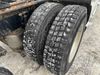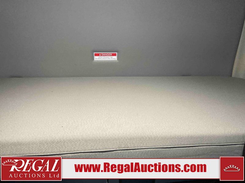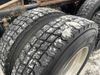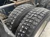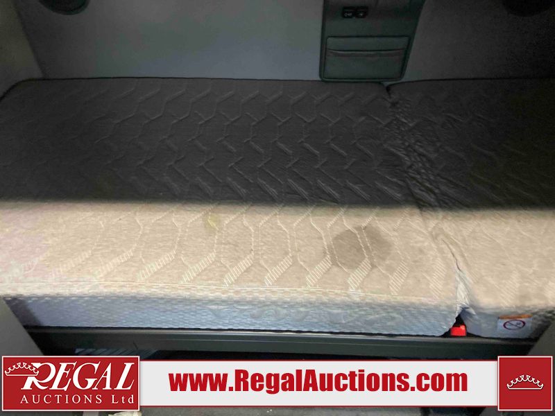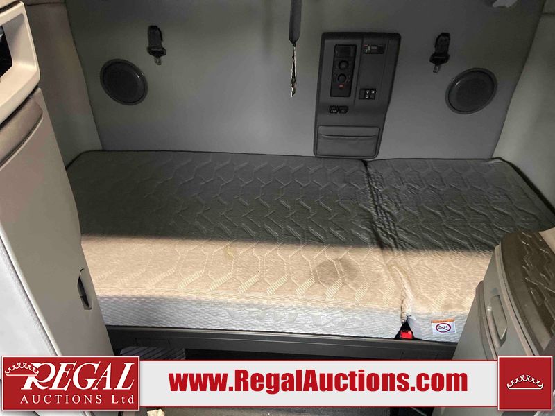 This unit is a 2020 Volvo VNL 760 dual sleeper axle highway tractor. The odoemter reads 866,629. It has a GVWR of 53,200 pounds. Its CVIP is 04–20 25. The interior is dirty. Both seats are stained and the armrest are torn. The lower mattress is stained and worn. This unit is equipped with a microwave, refrigerator, rear climate control, stereo system, and a CB radio. All panels are showing scratches and scuffs. The front end has chips. The engine cover is cracked. The windshield is chipped. The rear cab accessory bracket has peeling paint. The rear of the cab is dented and has peeling paint. This unit is powered by a Volvo 12.8L inline six cylinder turbo diesel engine and a 12 speed automatic transmission. The tires are mounted to steel rims and appear to be in good enough condition for use. This unit is equipped with air brakes, air suspension, rear sliding axles, and a stereo system. It has a 13,200 pound front axle and 20,000 pound rear axles.