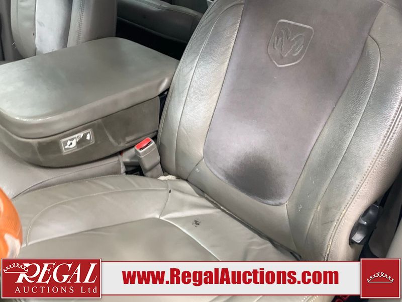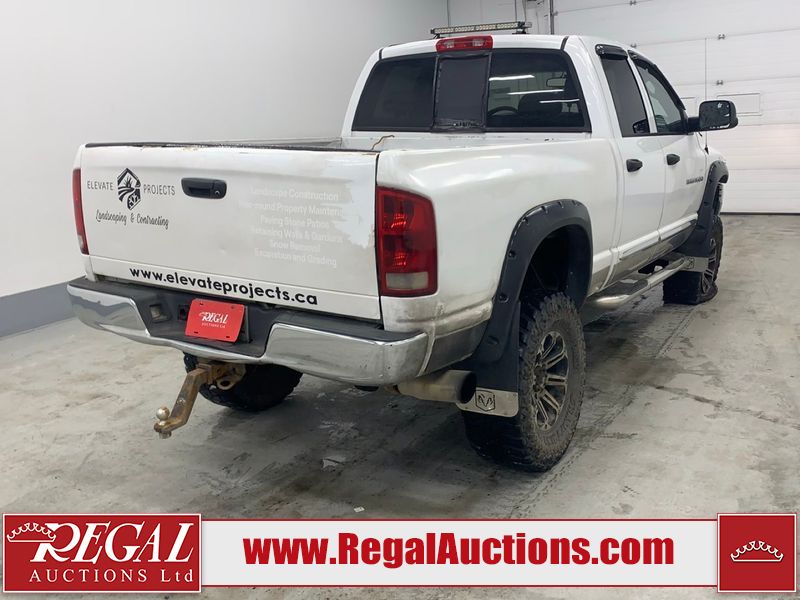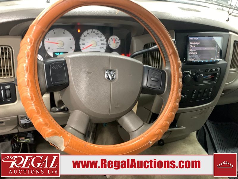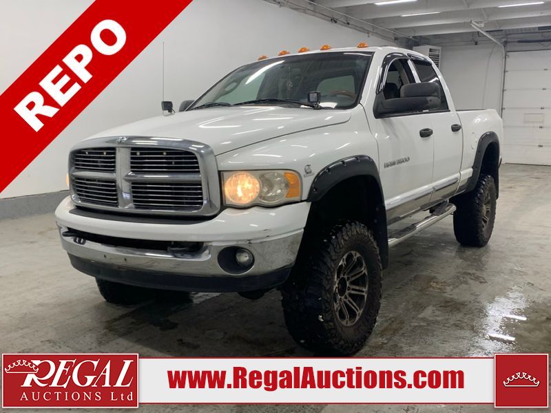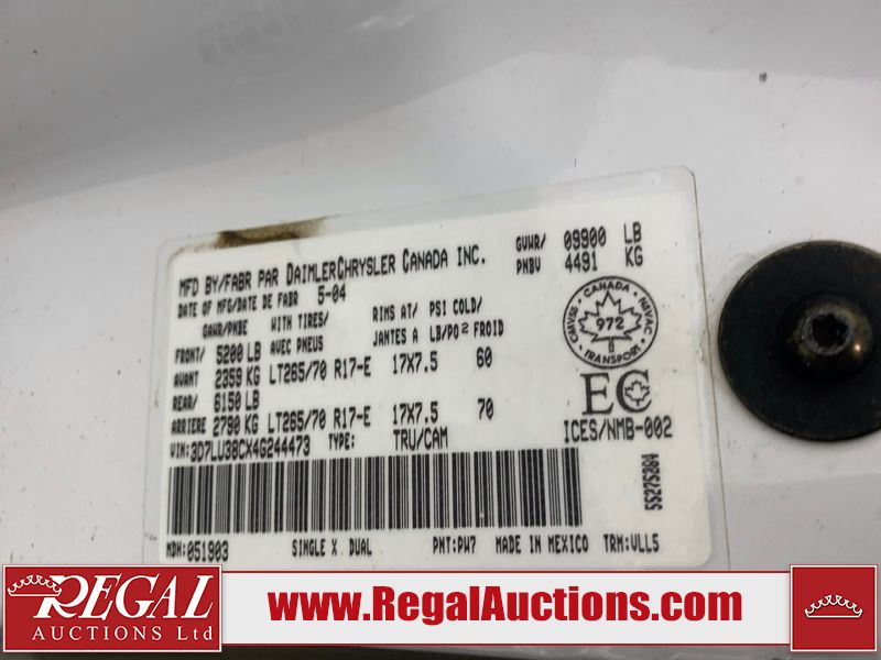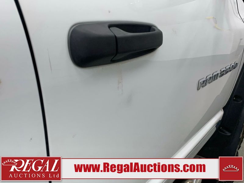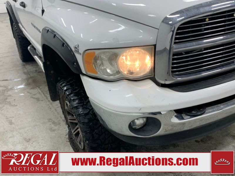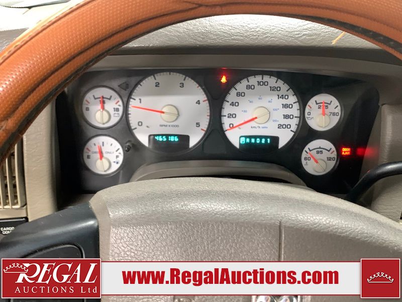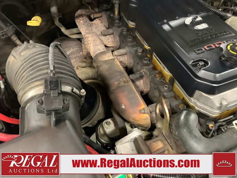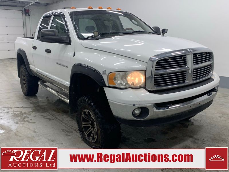 This 2004 DODGE RAM 3500 LARAMIE CREW CAB SWB 4WD 5.9L is powered by a turbocharged 6 cylinder diesel engine and an automatic transmission. It is equipped with four wheel drive. The truck has seats for 5 people. The truck has high mileage for its age. The vehicle has high value options including heated seats. The vehicle has some mechanical problems. The battery is dead. The vehicle requires a boost to start and may require a booster pack in order to stay running. The body looks to be in rough condition overall. There are severe scratches on the front bumper. The tail gate and right rear fender have been repainted poorly. There is some hail on the hood and roof. There is a fair amount of rust on the rear bumper and tail gate. There is some paint peeling on the tail gate. There are incidental chips on the front bumper, grille, left front fender, left front door, left rear door, left rear fender, rear bumper, tail gate, and right rear fender. There is rust on the front bumper, roof, left front door, left rear door, left rear fender, and right rear fender. There is dent damage on the front bumper, left rear fender, rear bumper, tail gate, right front door, and right front fender. There are minimal scratches on the left front fender, left rear fender, right rear fender, right front door, and right front fender. There is incidental paint peeling on the left front fender and left rear fender. There are very minor chips in many areas around the body. There are very minor scratches in many areas around the body. There is very minor dent damage in some areas around the body. The tail lights are broken. The aftermarket side step foot holds are coming off. Aftermarket sidesteps have been installed. An aftermarket infotainment centre has been installed. Aftermarket lights have been installed on the hood. Aftermarket wiring has been ran all through the engine bay and the cab. The truck has had a lift kit installed. The interior looks to be in fair condition overall. The driver's seat, passenger seat, and rear seats are worn. The carpet is dirty. The roofliner is dirty. The windshield is chipped. The passenger side mirror is broken. All of the tires have lots of tread remaining. The right front tire is flat.