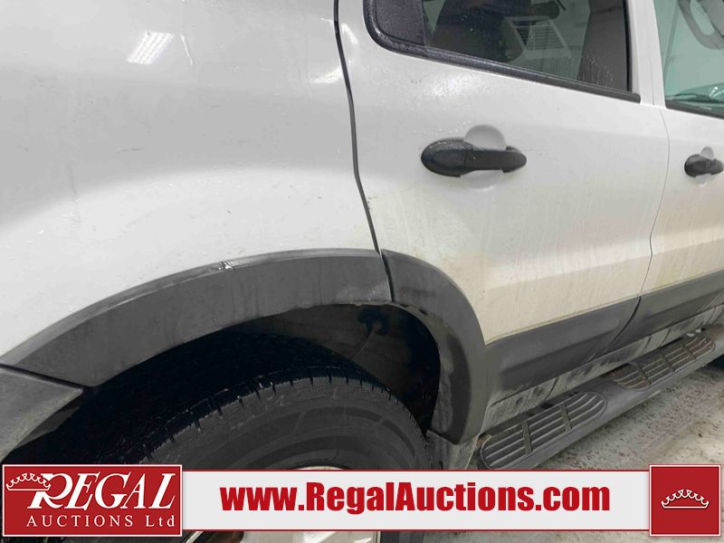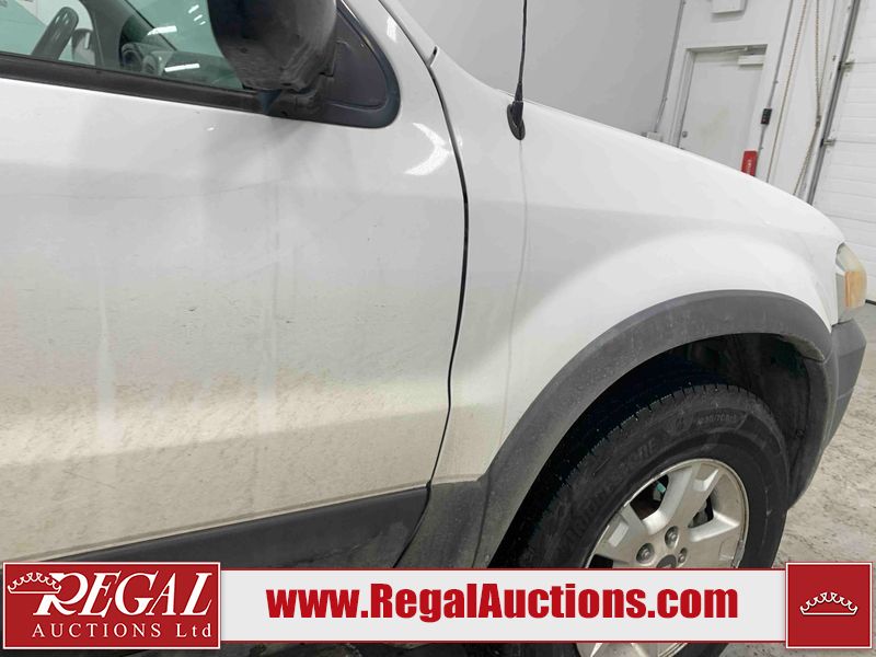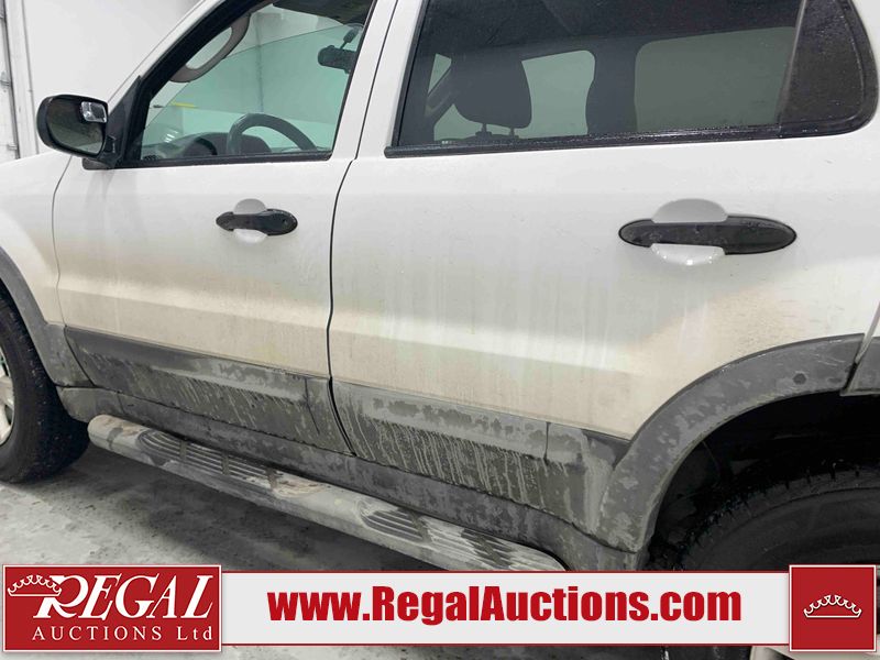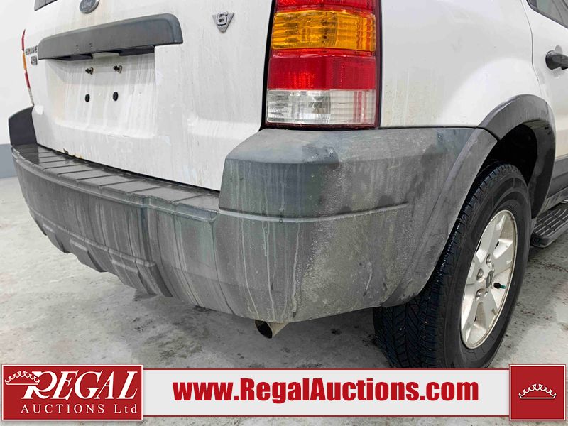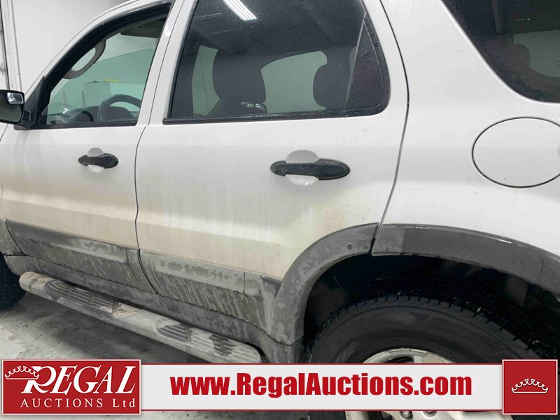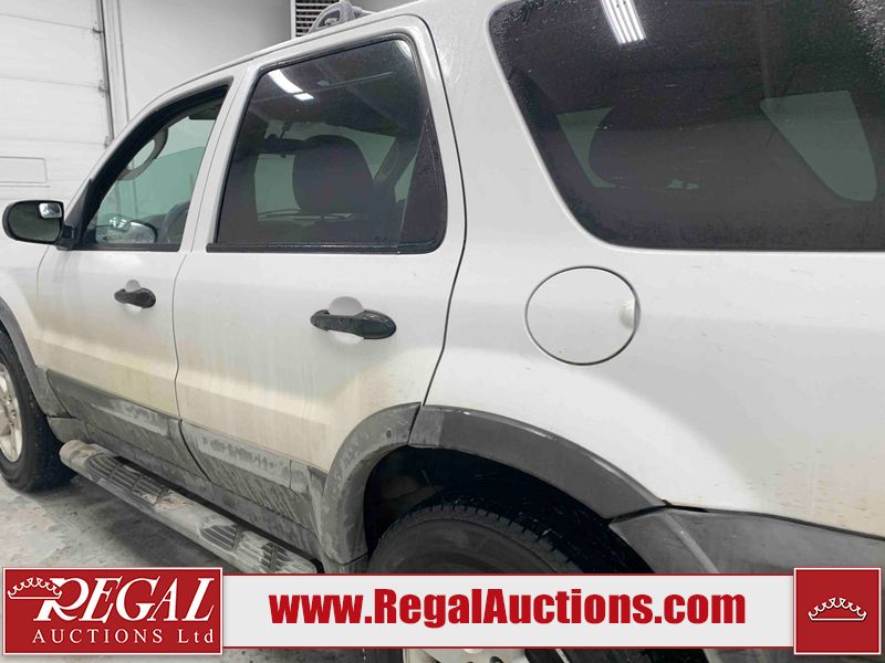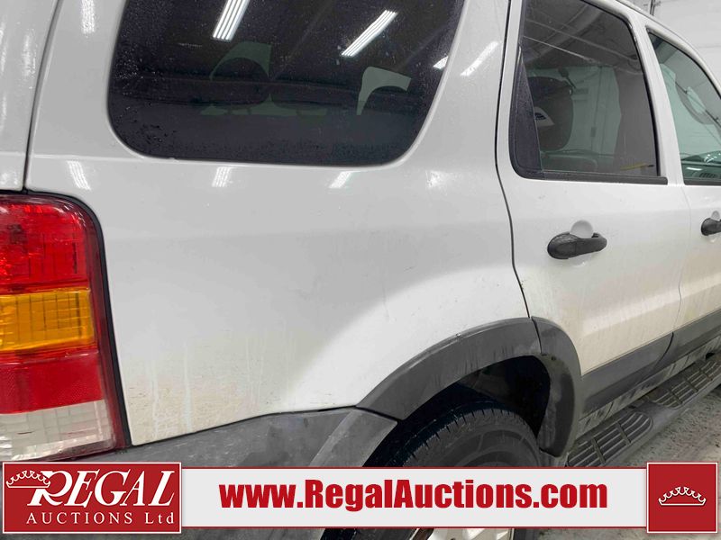 This 2005 FORD ESCAPE 4D UTILITY is powered by a 3.0L V6 gasoline engine and an automatic transmission. It is equipped with four-wheel drive. The SUV has seats for 5 people. The SUV has low mileage for its age. The vehicle has high-value options including power seats and a backup camera. The body looks to be in good condition overall. There is rust on the rear door. There is paint peeling on the rear door. There are very minor chips in many areas around the body. There are very minor scratches in many areas around the body. The interior looks to be in good condition overall. The driver seat has stains. The driver side mirror is broken. All of the tires have lots of tread remaining. This SUV is being sold by a franchise dealership. The vehicle will be sold with the following declarations: Dealership Trade-In (See Footnote 1). Footnotes: 1) This vehicle is being sold on behalf of a franchise dealership. Franchise Dealerships are automotive sales companies who are directly connected to an automotive manufacturer like Ford, Tesla, Honda, BMW, or similar. Regal Auctions Ltd. makes no guarantee or warranty, either express or implied, with respect to the data provided in this report. The information has been provided from the consignor and from sources generally believed to be reliable, however the accuracy of this information cannot be guaranteed by Regal Auctions.