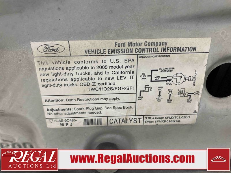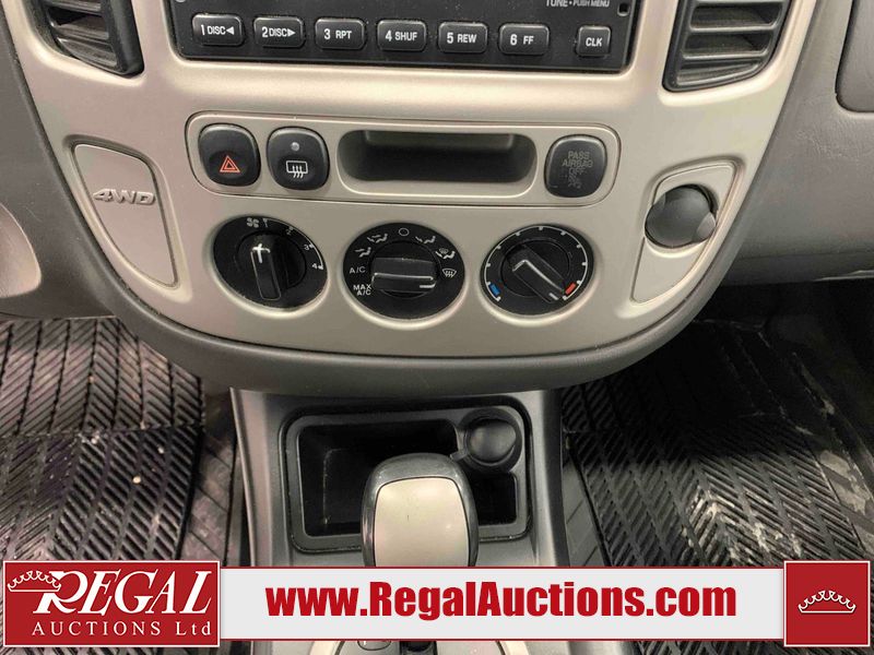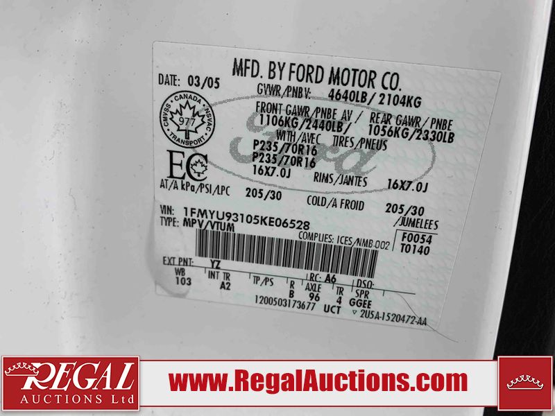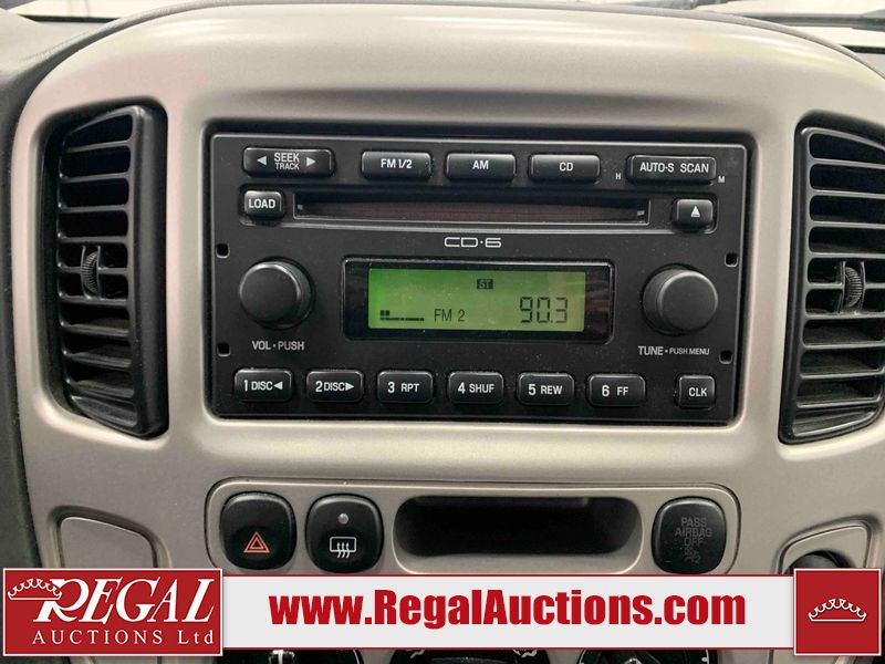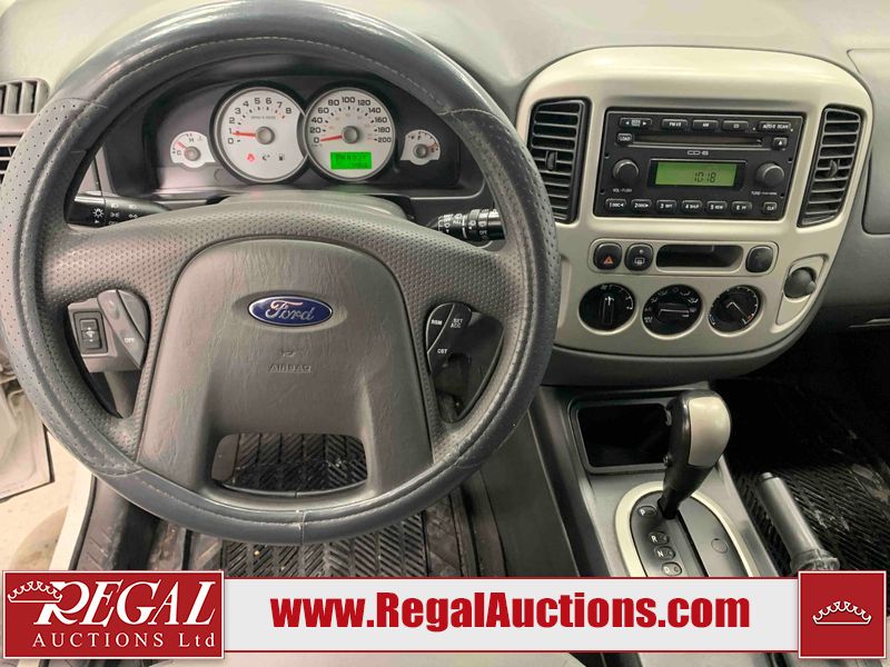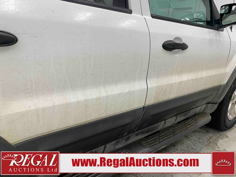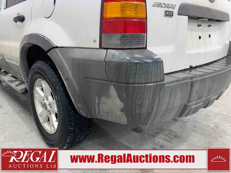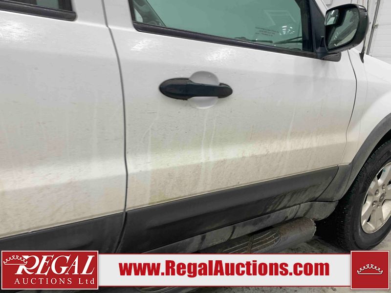 This 2005 FORD ESCAPE 4D UTILITY is powered by a 3.0L V6 gasoline engine and an automatic transmission. It is equipped with four-wheel drive. The SUV has seats for 5 people. The SUV has low mileage for its age. The vehicle has high-value options including power seats and a backup camera. The body looks to be in good condition overall. There is rust on the rear door. There is paint peeling on the rear door. There are very minor chips in many areas around the body. There are very minor scratches in many areas around the body. The interior looks to be in good condition overall. The driver seat has stains. The driver side mirror is broken. All of the tires have lots of tread remaining. This SUV is being sold by a franchise dealership. The vehicle will be sold with the following declarations: Dealership Trade-In (See Footnote 1). Footnotes: 1) This vehicle is being sold on behalf of a franchise dealership. Franchise Dealerships are automotive sales companies who are directly connected to an automotive manufacturer like Ford, Tesla, Honda, BMW, or similar. Regal Auctions Ltd. makes no guarantee or warranty, either express or implied, with respect to the data provided in this report. The information has been provided from the consignor and from sources generally believed to be reliable, however the accuracy of this information cannot be guaranteed by Regal Auctions.