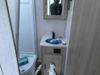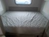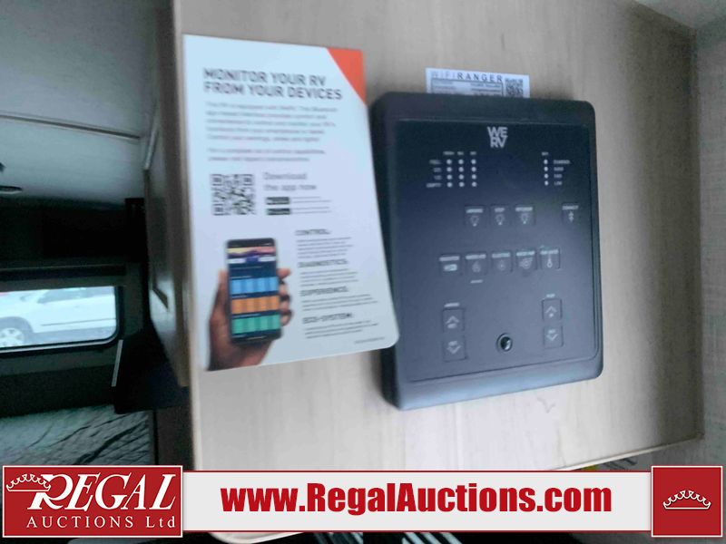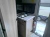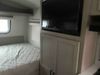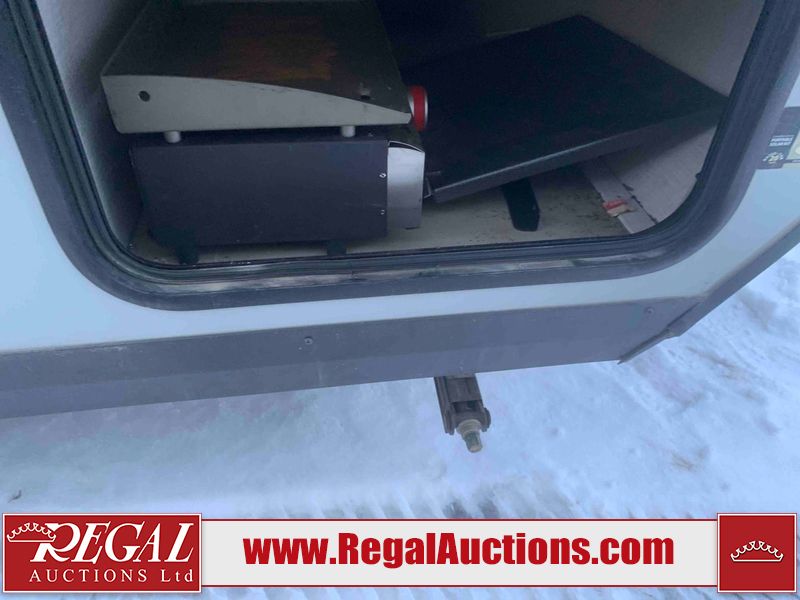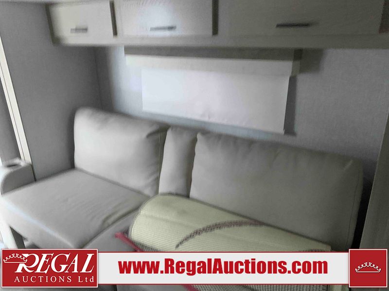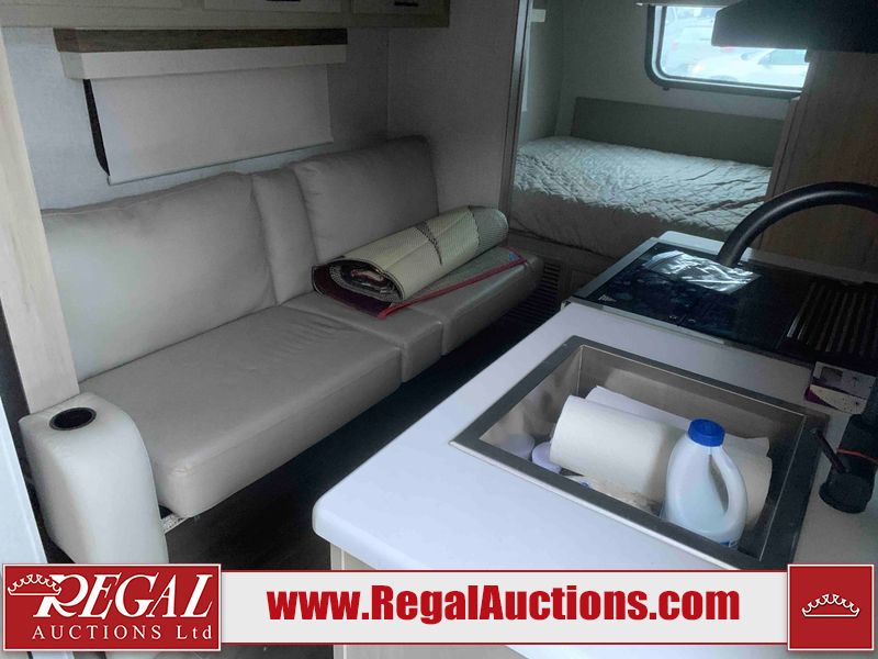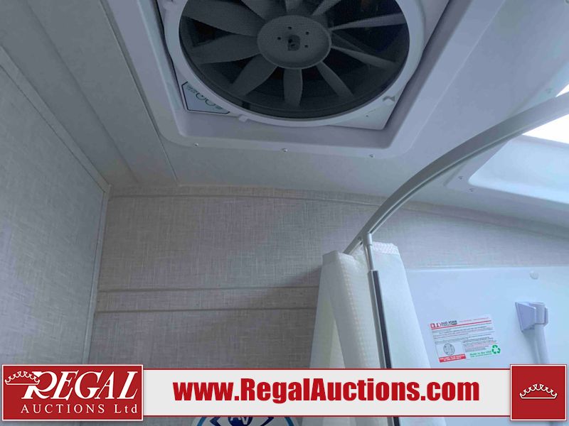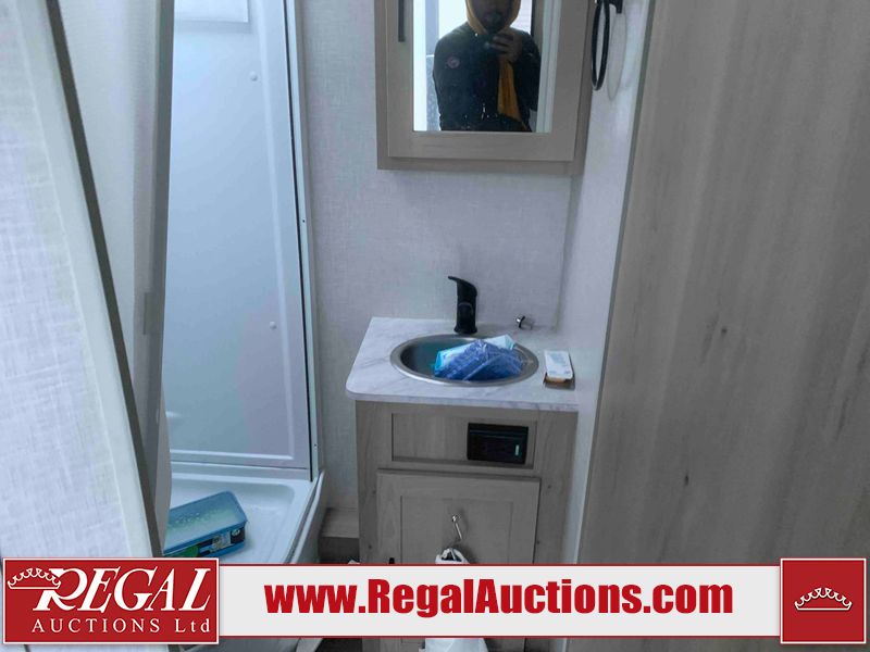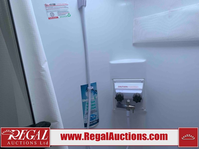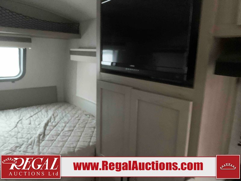 This RV is a Forest River Rockwood G19 FBS Geo pro model bumper pull travel trailer. This unit has a single entry door, roof air, and a single slide out accommodating the living area. The interior is dirty. The exterior walls are made of hardwall fibreglass. Some walls are showing scratches and scuffs. This unit does not get power with external power supply. The batteries may be dead. The slide out cannot be tested. This unit is equipped with two batteries and two propane tanks. Alloy rims are mounted, the tires appear to be in good enough condition for use. This unit is equipped with a three burner stove top, oven, microwave, refrigerator, television, and a stereo system. The layout consist of a bed in the front, kitchenette/living area in the center, and a bathroom in the rear.