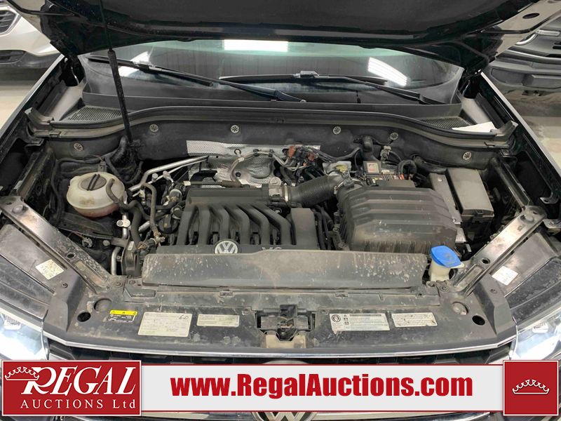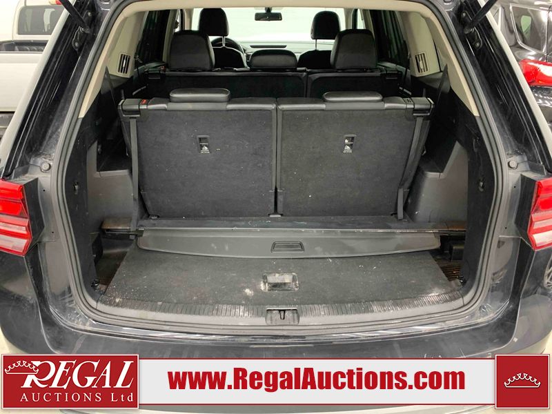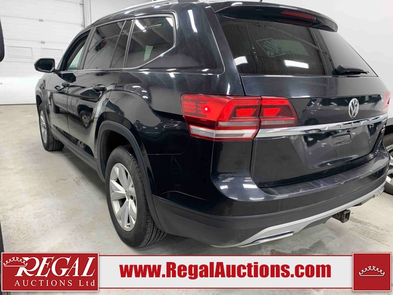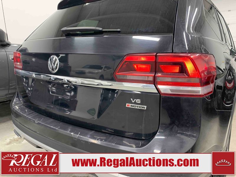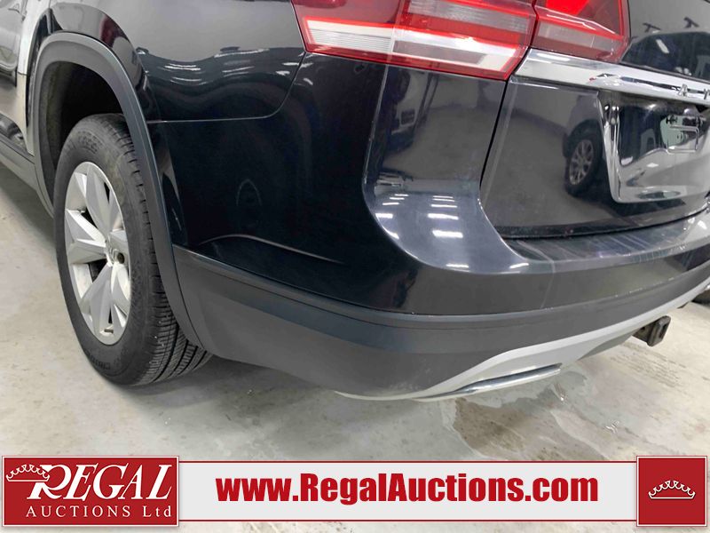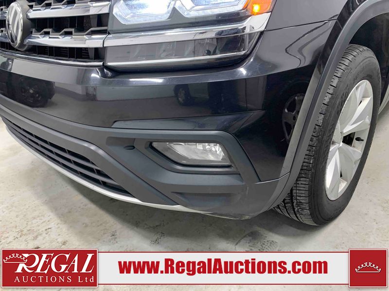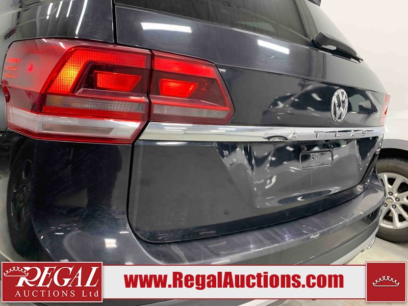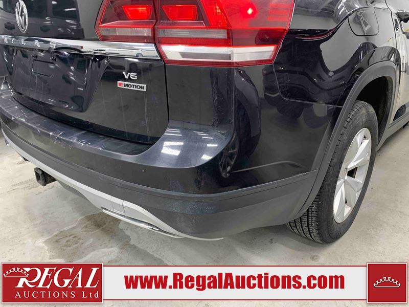 This 2018 VOLKSWAGEN ATLAS COMFORTLINE 4D UTILITY AWD 3.6L is powered by a 6 cylinder gasoline engine and an automatic transmission. It is equipped with four wheel drive. The SUV has seats for 7 people. The mileage is average considering the SUV's age. The vehicle has high value options including leather upholstery, power seats, heated seats, and a backup camera. The body looks to be in fair condition overall. There is noteworthy paint peeling on the rear bumper. There are slight chips on the front bumper, hood, left front door, left rear door, and right rear door. There are minor scratches on the left front door. There are very minor scratches in many areas around the body. There are very minor chips in many areas around the body. There is very minor dent damage on the right rear door. The interior looks to be in fair condition overall. The driver's seat is torn. The passenger seat is stained. The carpet is dirty. The windshield looks to be in good condition. All of the tires have lots of tread remaining.
