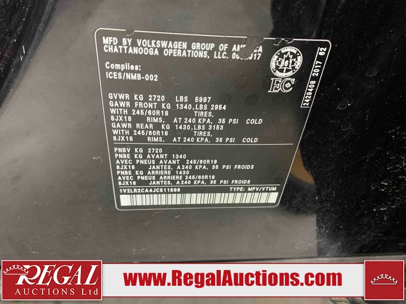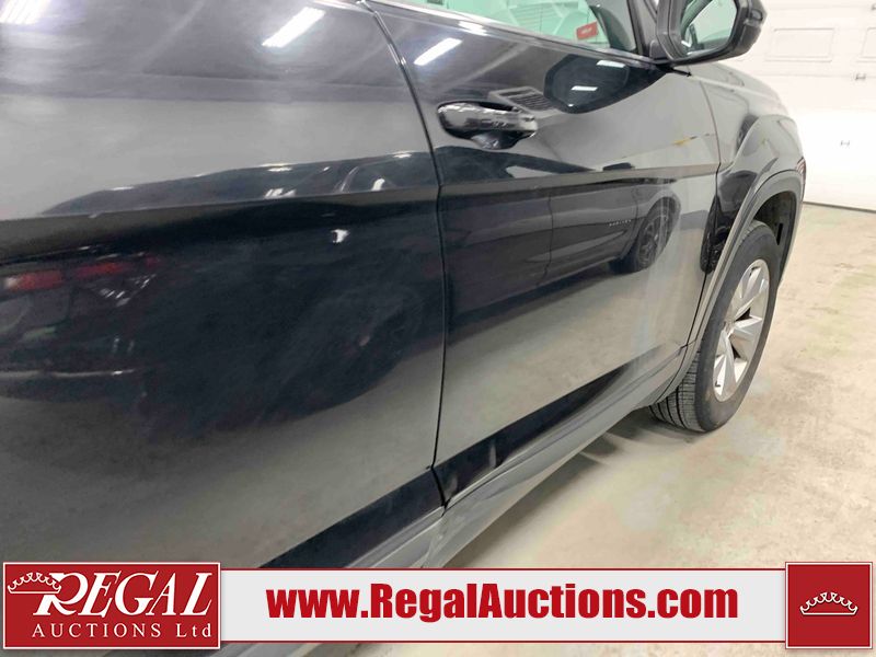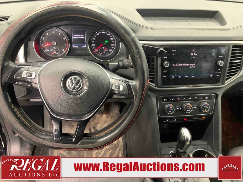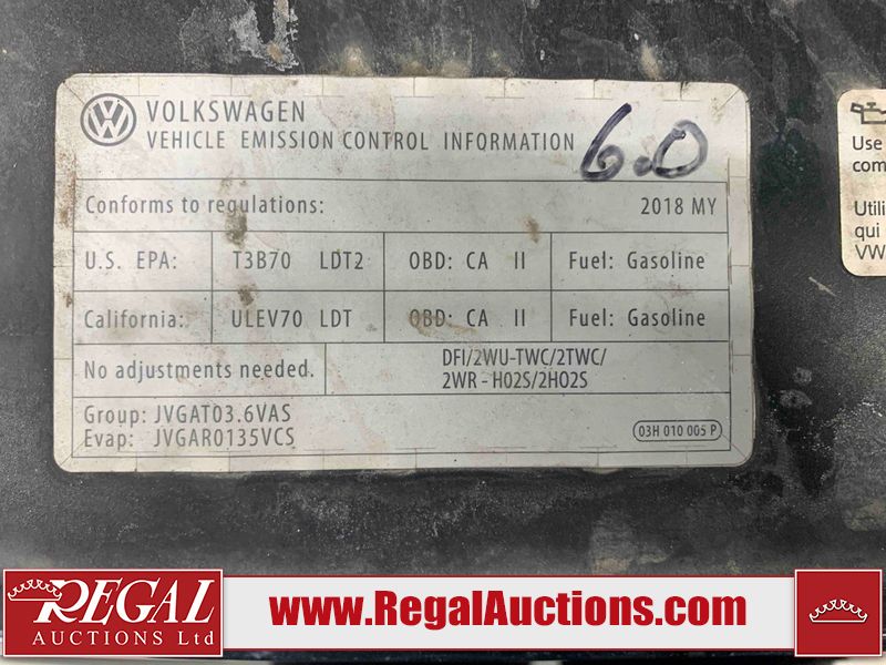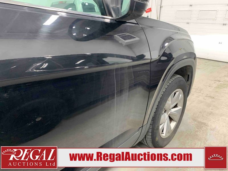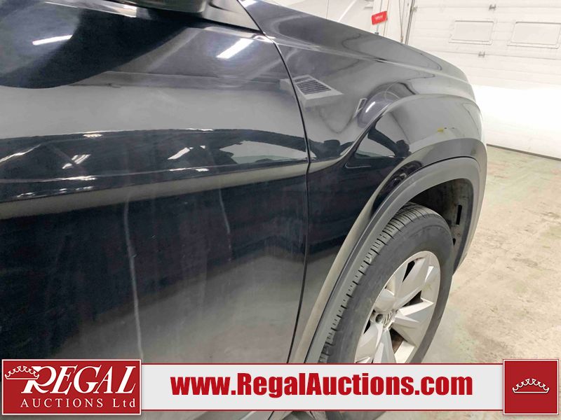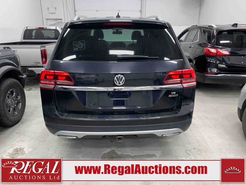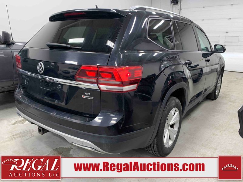 This 2018 VOLKSWAGEN ATLAS COMFORTLINE 4D UTILITY AWD 3.6L is powered by a 6 cylinder gasoline engine and an automatic transmission. It is equipped with four wheel drive. The SUV has seats for 7 people. The mileage is average considering the SUV's age. The vehicle has high value options including leather upholstery, power seats, heated seats, and a backup camera. The body looks to be in fair condition overall. There is noteworthy paint peeling on the rear bumper. There are slight chips on the front bumper, hood, left front door, left rear door, and right rear door. There are minor scratches on the left front door. There are very minor scratches in many areas around the body. There are very minor chips in many areas around the body. There is very minor dent damage on the right rear door. The interior looks to be in fair condition overall. The driver's seat is torn. The passenger seat is stained. The carpet is dirty. The windshield looks to be in good condition. All of the tires have lots of tread remaining.