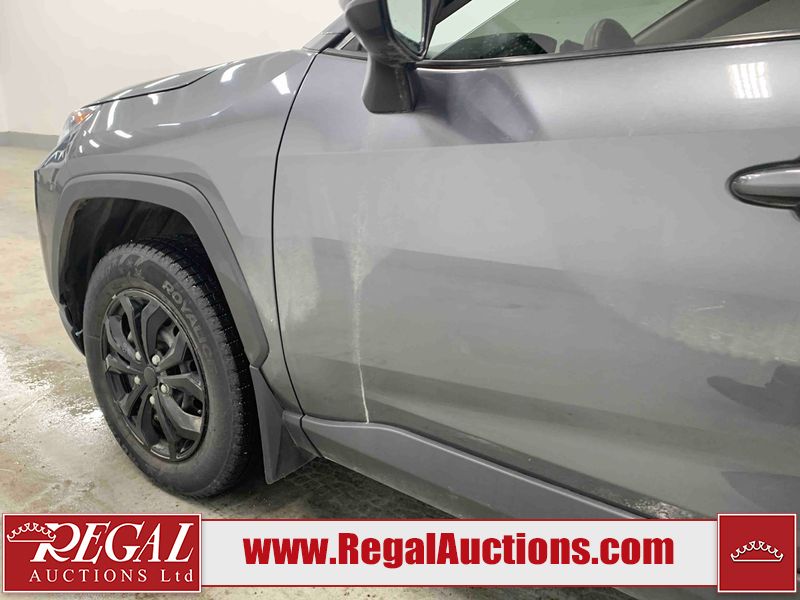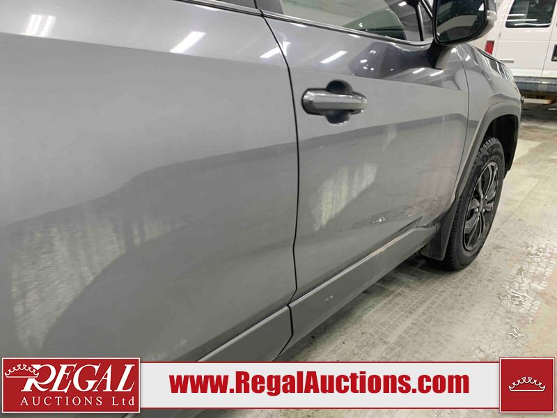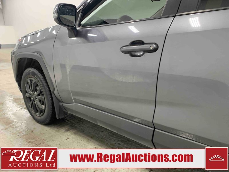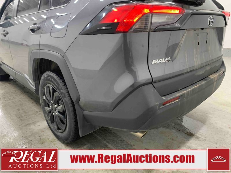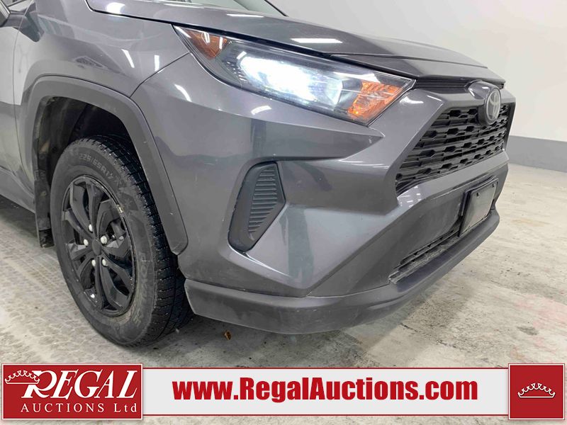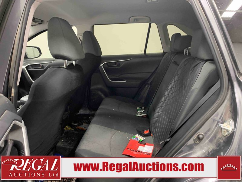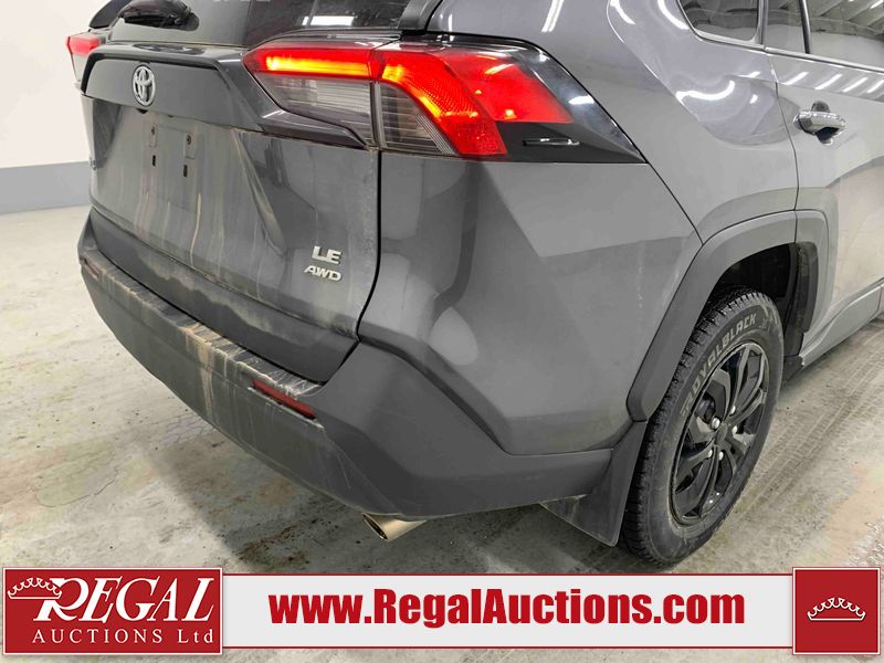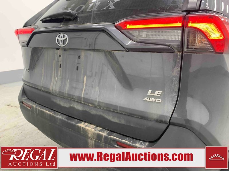 This 2021 TOYOTA RAV4 LE 4D UTILITY AWD 2.5L is powered by a 4 cylinder gasoline engine and an automatic transmission. It is equipped with four wheel drive. The SUV has seats for 5 people. The SUV has high mileage for its age. The vehicle has high value options including heated seats and a backup camera. The Tire Pressure and Stability Control lights are on. The body looks to be in fair condition overall. The front bumper is cracked. There are chips on the front bumper and hood. There are incidental scratches on the front bumper, left front door, left rear door, rear bumper, right rear fender, and right rear door. There are very minor chips in many areas around the body. There are very minor scratches in many areas around the body. There is very minor dent damage on the left rear fender. The interior looks to be in fair condition overall. The driver's seat and passenger seat are stained. The rear seats are dirty. The carpet is dirty. The windshield is cracked. All of the tires have lots of tread remaining.