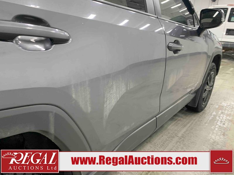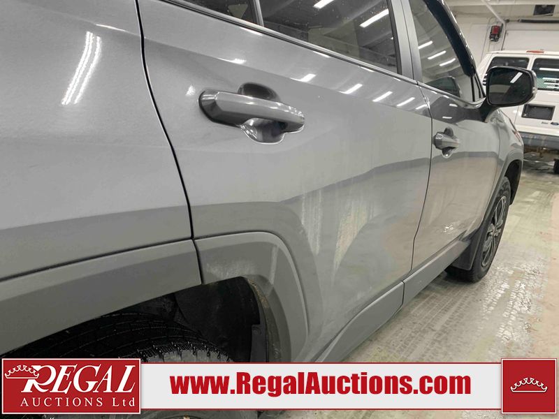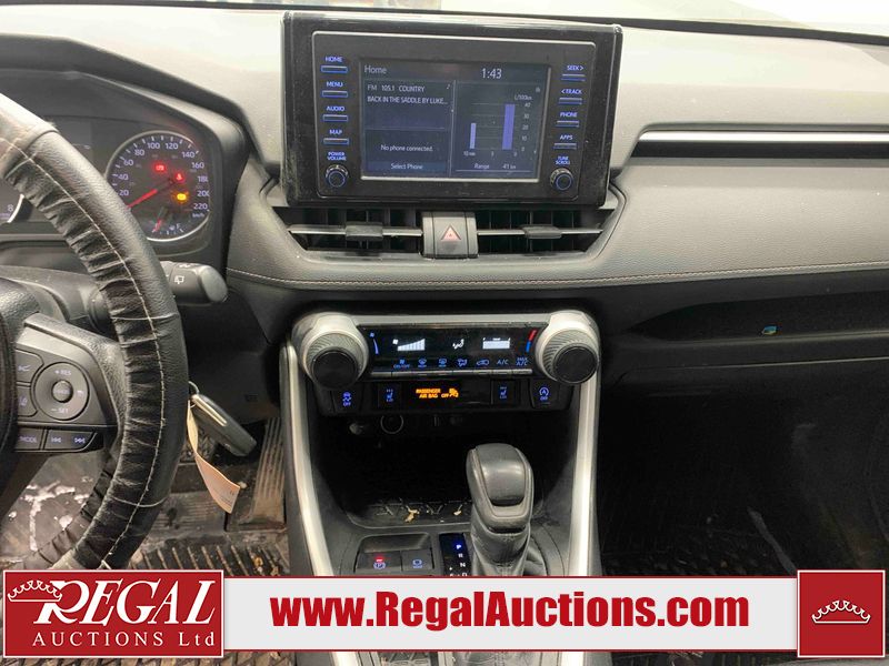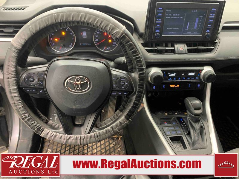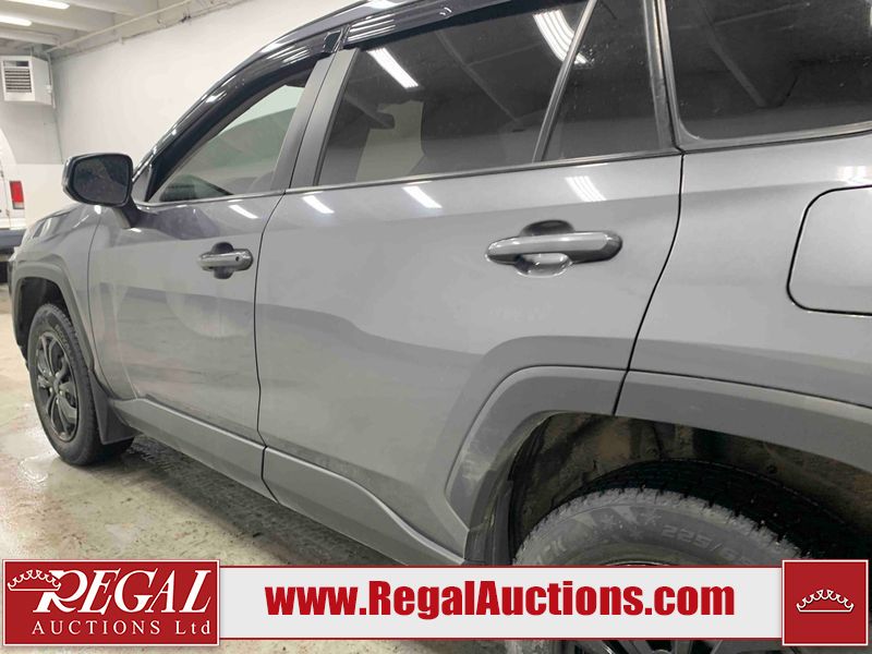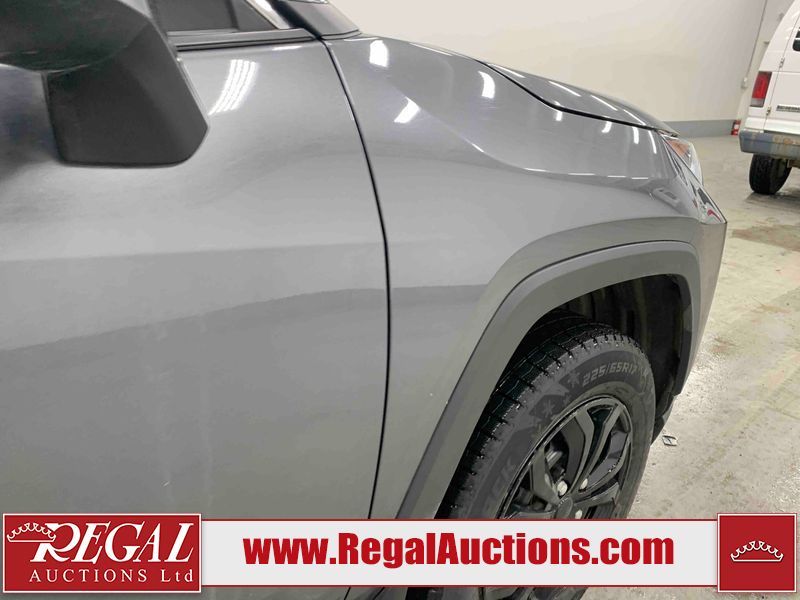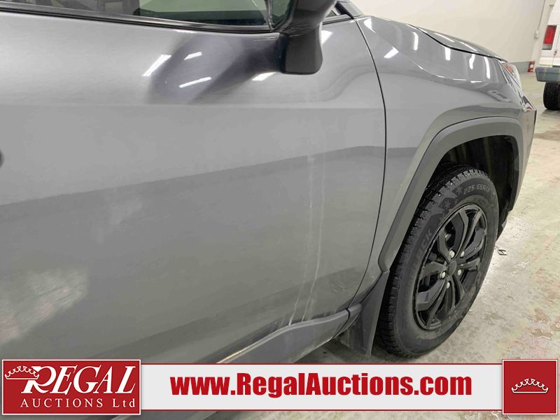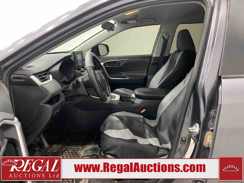 This 2021 TOYOTA RAV4 LE 4D UTILITY AWD 2.5L is powered by a 4 cylinder gasoline engine and an automatic transmission. It is equipped with four wheel drive. The SUV has seats for 5 people. The SUV has high mileage for its age. The vehicle has high value options including heated seats and a backup camera. The Tire Pressure and Stability Control lights are on. The body looks to be in fair condition overall. The front bumper is cracked. There are chips on the front bumper and hood. There are incidental scratches on the front bumper, left front door, left rear door, rear bumper, right rear fender, and right rear door. There are very minor chips in many areas around the body. There are very minor scratches in many areas around the body. There is very minor dent damage on the left rear fender. The interior looks to be in fair condition overall. The driver's seat and passenger seat are stained. The rear seats are dirty. The carpet is dirty. The windshield is cracked. All of the tires have lots of tread remaining.