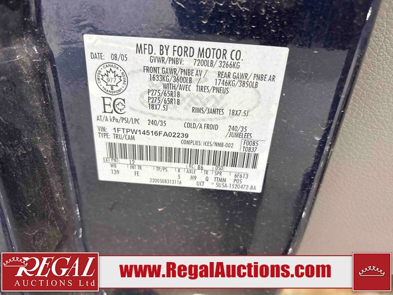 This 2006 FORD F-150 SUPER CREW PICK UP 4WD is powered by a 5.4L V8 gasoline engine and an automatic transmission. It is equipped with four-wheel drive. The truck has seats for 5 people. The truck has high mileage for its age. The Brake System light is on. The vehicle has some mechanical problems. The engine runs rough. The brakes are weak. (See Footnote 1) The body looks to be in rough condition overall. There is substantial rust on the left rear door, left rear fender, right rear fender, and right rear door. The hood has been repainted poorly. The tailgate is broken. There is minor rust on the roof and left front fender. There are minimal scratches on the tailgate and right rear fender. There is slight dent damage on the right rear fender. There are very minor chips in many areas around the body. There are very minor scratches in many areas around the body. There is very minor dent damage in a few areas around the body. The interior looks to be in good condition overall. The driver's seat is torn. The windshield is cracked. The driver side mirror is broken. All of the tires have lots of tread remaining. This truck is being sold by an automotive broker. The vehicle will be sold with the following declarations: Claims Total $3000 - $4999 (See Footnote 2). Footnotes: 1) We've identified some mechanical problems with the vehicle. However, the vehicle has not undergone a mechanical inspection and our findings are not to be considered a complete evaluation of the vehicle's mechanical condition. Review our Buyer Protection Policy to see how Regal Auctions protects you from undisclosed mechanical problems. 2) The vehicle's total recorded insurance claims history is between $3,000 - $4,999. This is the amount of money that was paid out by an insurance company for repairs to cover claims against the vehicle's insurance policy. This information is provided by CarFax. Regal Auctions Ltd. makes no guarantee or warranty, either express or implied, with respect to the data provided in this report. The information has been provided from the consignor and from sources generally believed to be reliable, however the accuracy of this information cannot be guaranteed by Regal Auctions.