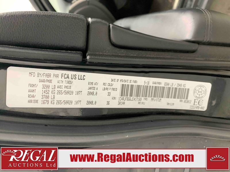 This 2018 JEEP GRAND CHEROKEE LIMITED 4D UTILITY 4WD 3.6L is powered by a 6 cylinder gasoline engine and an automatic transmission. It is equipped with four wheel drive. The SUV has seats for 5 people. The mileage is average considering the SUV's age. LIMITED is a very popular trim level. The vehicle has high value options including a sunroof, leather upholstery, power seats, heated seats, navigation, and a backup camera. The Check Engine light is on. The body looks to be in fair condition overall. There are slight chips on the front bumper, grille, hood, and roof. There are minimal scratches on the front bumper, hood, roof, left front fender, rear bumper, right rear door, and right front door. There is dent damage on the hood. There is minimal rust on the roof. There are very minor chips in many areas around the body. There is very minor dent damage in a few areas around the body. There are very minor scratches in many areas around the body. The interior looks to be in fair condition overall. The driver's seat, rear seats, and doors are worn. The carpet is dirty. The windshield is cracked. All of the tires have lots of tread remaining.