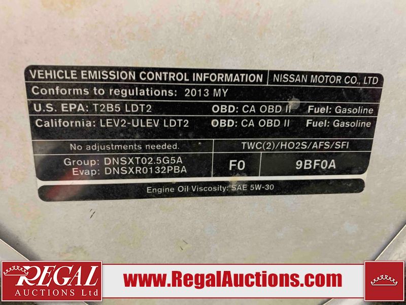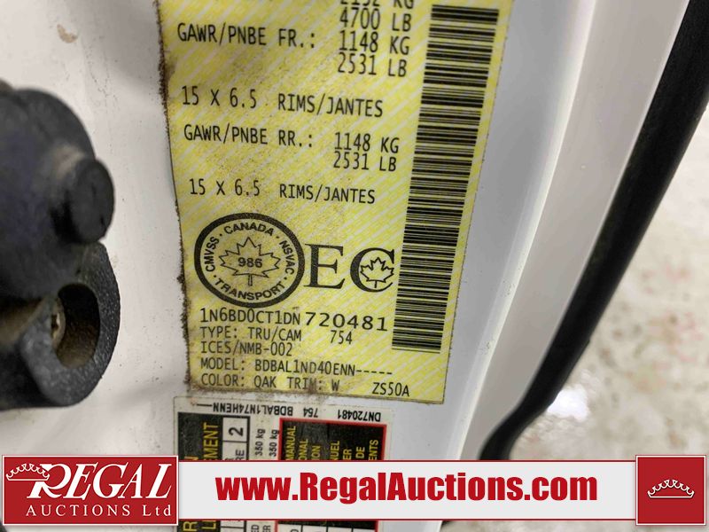 This 2013 NISSAN FRONTIER EXTENDED CAB PICK UP RWD is powered by a 2.5L 4-cylinder gasoline engine and an automatic transmission. It is a two-wheel drive model. The truck has seats for 4 people. The truck has low mileage for its age. The vehicle has high-value options including navigation. The body looks to be in fair condition overall. There are minor chips on the front bumper, hood, left front fender, left rear fender, and right rear fender. There are minor scratches on the front bumper, left front door, left rear fender, tailgate, right rear fender, and right front door. There is rust on the left rear fender. There are very minor scratches in a few areas around the body. There are very minor chips in a few areas around the body. The interior looks to be in good condition overall. The windshield is cracked. All of the tires have lots of tread remaining. This truck is being sold by a private individual. Regal Auctions Ltd. makes no guarantee or warranty, either express or implied, with respect to the data provided in this report. The information has been provided from the consignor and from sources generally believed to be reliable, however the accuracy of this information cannot be guaranteed by Regal Auctions.