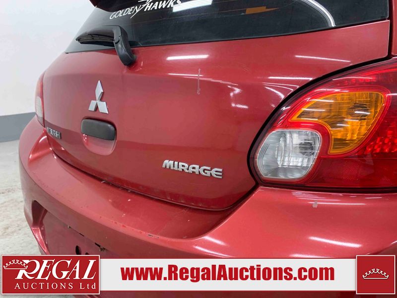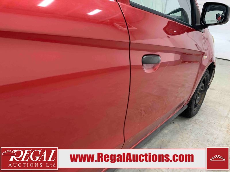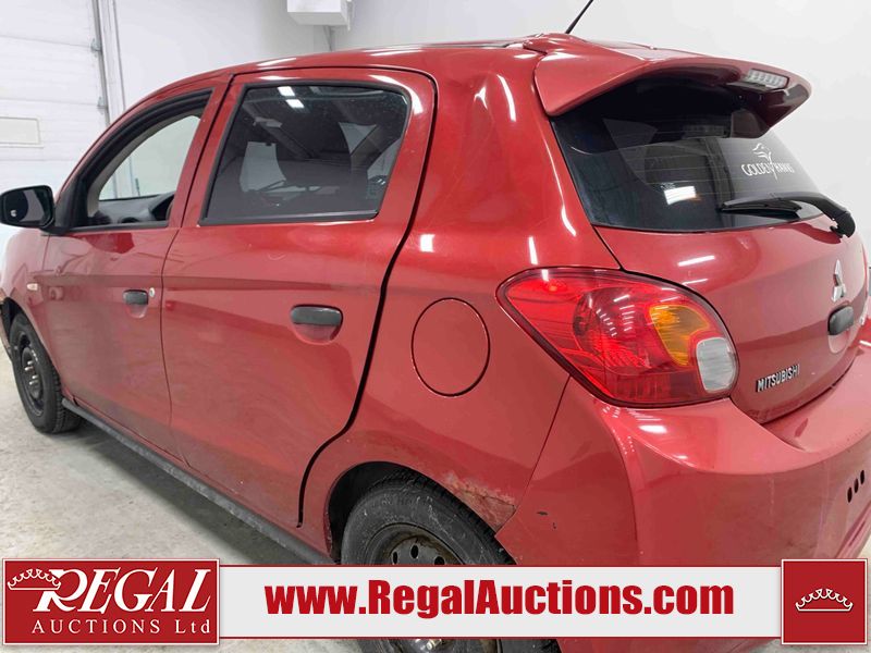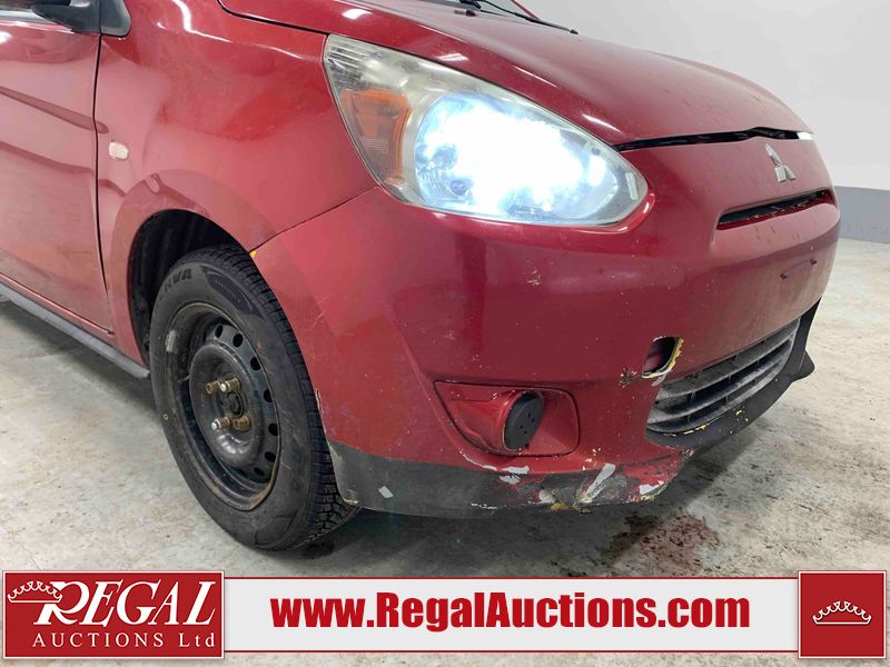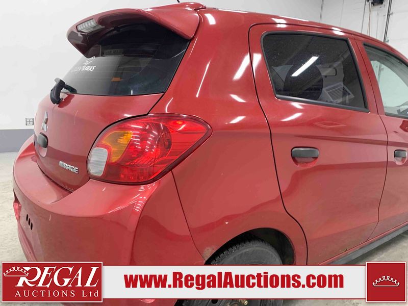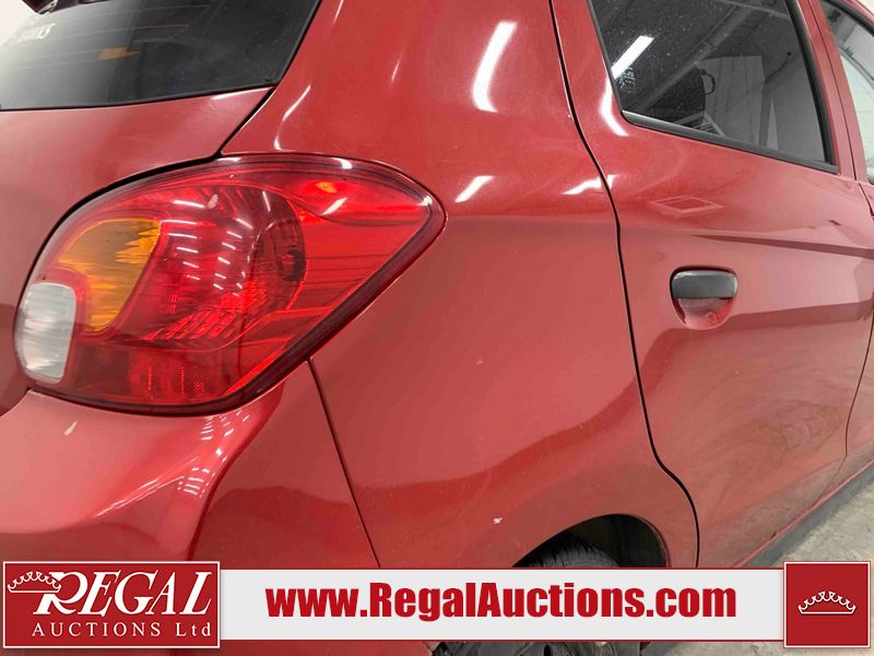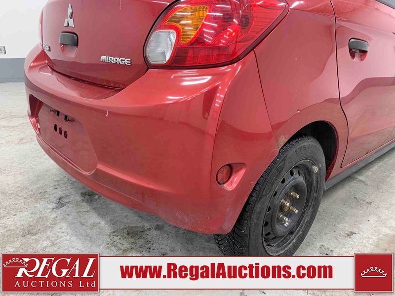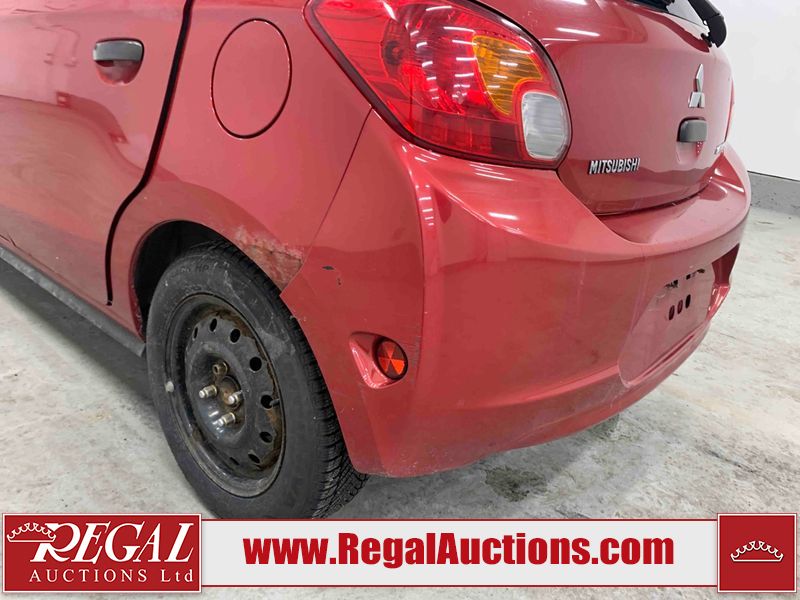 This 2015 MITSUBISHI MIRAGE 4D HATCHABCK is powered by a 1.2L 4-cylinder gasoline engine and an automatic transmission. The car has seats for 5 people. The car has low mileage for its age. The body looks to be in rough condition overall. The front bumper has been repainted poorly. There is pronounced rust on the left rear fender. There are slight chips on the front bumper, grille, hood, roof, left front fender, left front door, left rear door, left rear fender, rear bumper, right rear fender, right rear door, right front door, and right front fender. There are scratches on the front bumper, hood, roof, left front fender, left front door, left rear door, left rear fender, rear bumper, trunk lid, right rear fender, right rear door, right front door, and right front fender. There is minimal paint peeling on the front bumper. There is dent damage on the hood, left front fender, and left front door. There is minor rust on the left front door, left rear door, right rear fender, right rear door, and right front door. There are very minor chips on the trunk lid. There is very minor dent damage on the right front fender. The front bumper is misaligned. The interior looks to be in rough condition overall. The carpet is missing. The driver's seat, passenger seat, and rear seats are stained. The dashboard and doors are dirty. The windshield looks to be in good condition. All of the tires have lots of tread remaining. This car is being sold by an automotive broker. Regal Auctions Ltd. makes no guarantee or warranty, either express or implied, with respect to the data provided in this report. The information has been provided from the consignor and from sources generally believed to be reliable, however the accuracy of this information cannot be guaranteed by Regal Auctions.