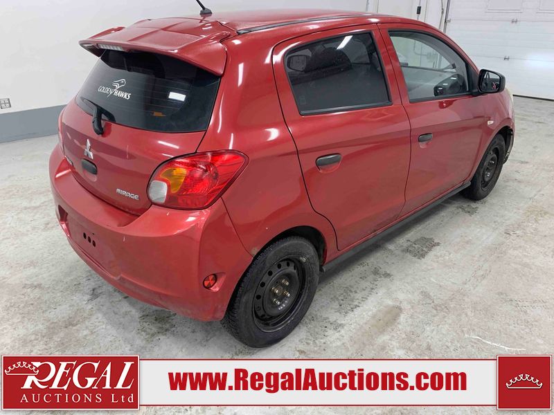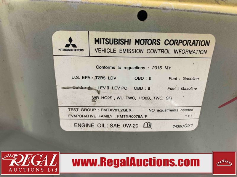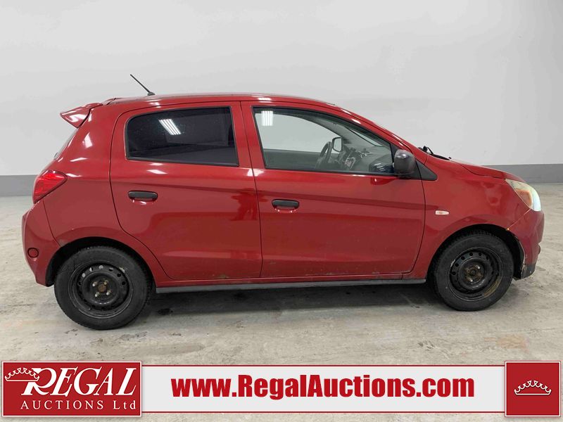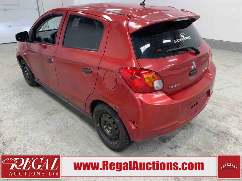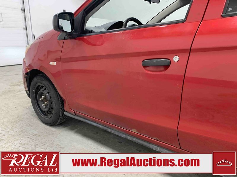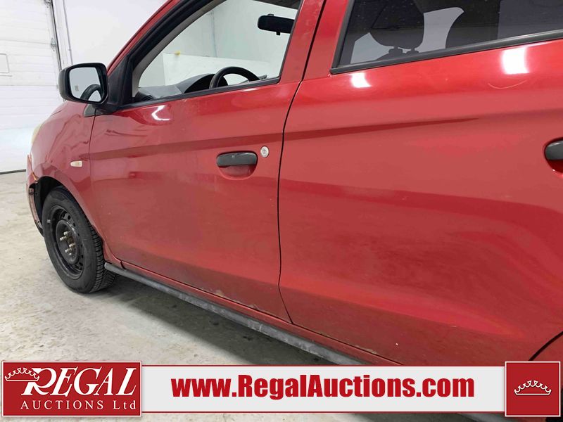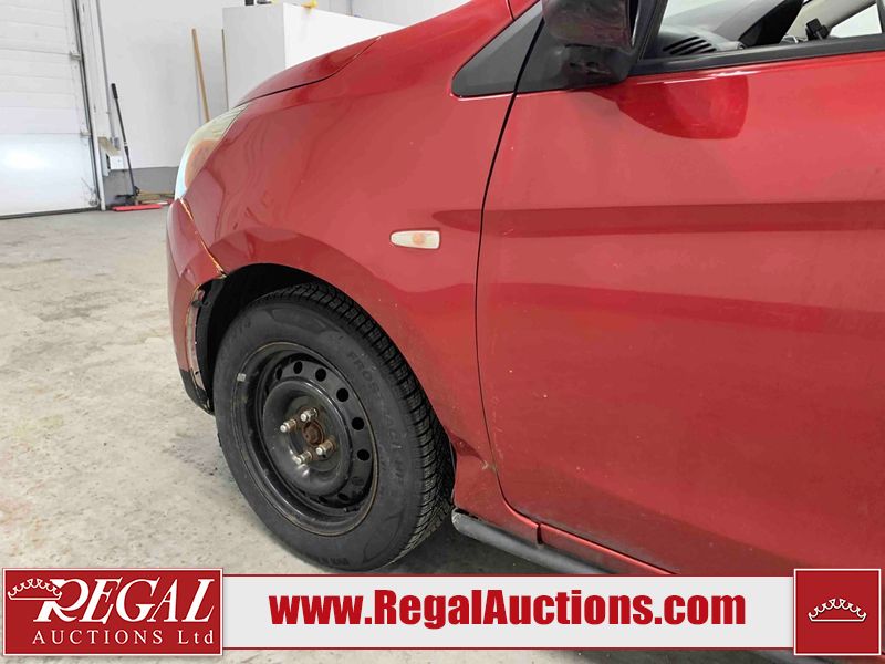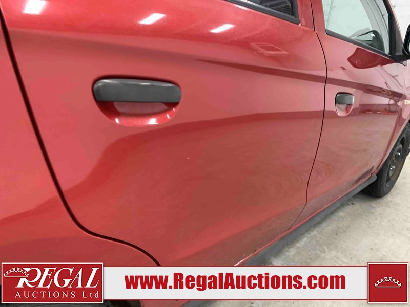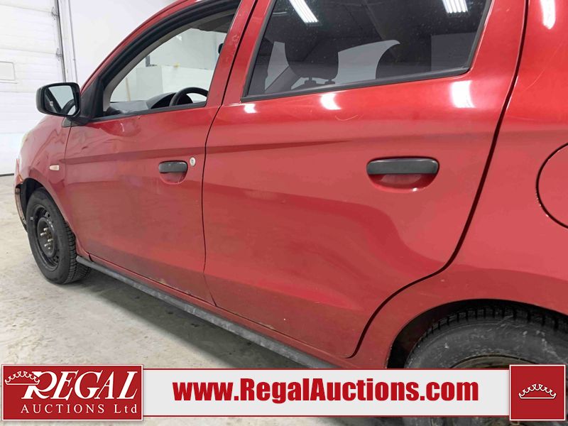 This 2015 MITSUBISHI MIRAGE 4D HATCHABCK is powered by a 1.2L 4-cylinder gasoline engine and an automatic transmission. The car has seats for 5 people. The car has low mileage for its age. The body looks to be in rough condition overall. The front bumper has been repainted poorly. There is pronounced rust on the left rear fender. There are slight chips on the front bumper, grille, hood, roof, left front fender, left front door, left rear door, left rear fender, rear bumper, right rear fender, right rear door, right front door, and right front fender. There are scratches on the front bumper, hood, roof, left front fender, left front door, left rear door, left rear fender, rear bumper, trunk lid, right rear fender, right rear door, right front door, and right front fender. There is minimal paint peeling on the front bumper. There is dent damage on the hood, left front fender, and left front door. There is minor rust on the left front door, left rear door, right rear fender, right rear door, and right front door. There are very minor chips on the trunk lid. There is very minor dent damage on the right front fender. The front bumper is misaligned. The interior looks to be in rough condition overall. The carpet is missing. The driver's seat, passenger seat, and rear seats are stained. The dashboard and doors are dirty. The windshield looks to be in good condition. All of the tires have lots of tread remaining. This car is being sold by an automotive broker. Regal Auctions Ltd. makes no guarantee or warranty, either express or implied, with respect to the data provided in this report. The information has been provided from the consignor and from sources generally believed to be reliable, however the accuracy of this information cannot be guaranteed by Regal Auctions.