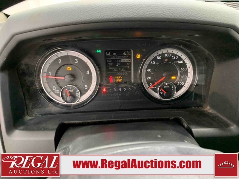 This 2018 RAM 1500 SLT CREW CAB SWB 3.0L is powered by a turbocharged 6 cylinder diesel engine and an automatic transmission. It is equipped with four wheel drive. The truck has seats for 6 people. The truck has low mileage for its age. The vehicle has high value options including a backup camera. The Check Engine and Service 4wd lights are on. This units transmission is slipping out of gear. It moves by swapping between drive, neutral, and then back to drive. The vehicle has some mechanical problems. The body looks to be in fair condition overall. There is noteworthy paint peeling on the front bumper and tail gate. There are chips on the front bumper, hood, roof, left front fender, left rear door, left rear fender, rear bumper, right rear fender, right rear door, and right front fender. There are scratches on the left front fender and left rear fender. There is minor dent damage on the tail gate. There are very minor chips in some areas around the body. There are very minor scratches in many areas around the body. There is very minor dent damage in a few areas around the body. The interior looks to be in fair condition overall. The rear seats are stained. The rear seats and doors are dirty. The carpet is dirty. The windshield is cracked. All of the tires are nearly bald and should be replaced.