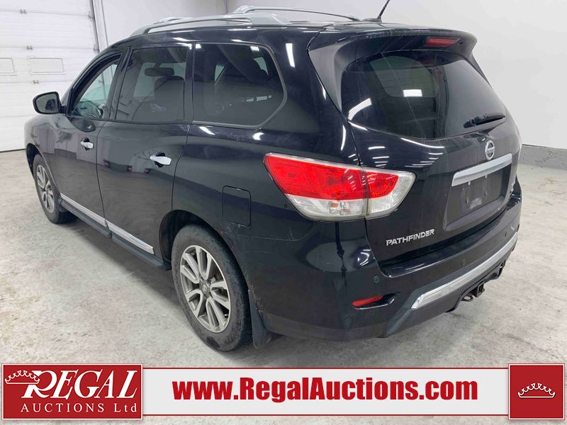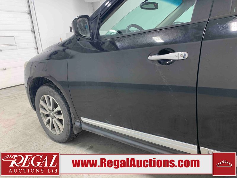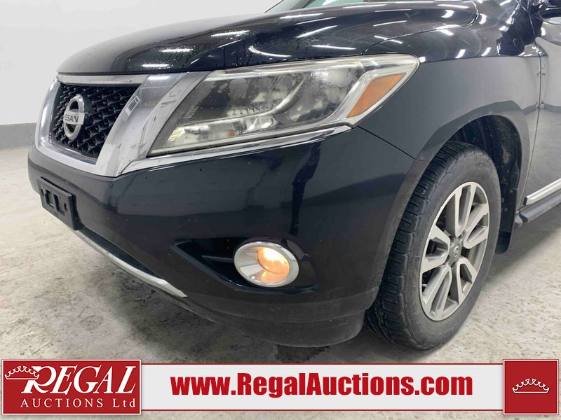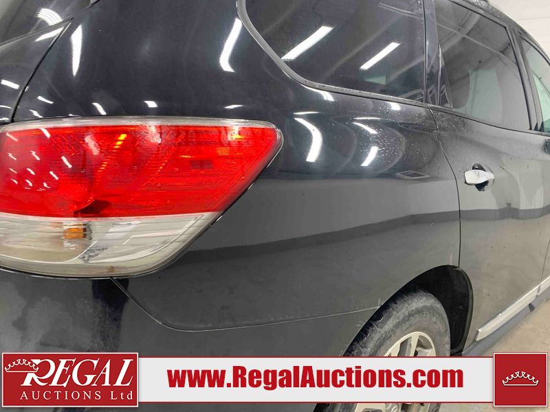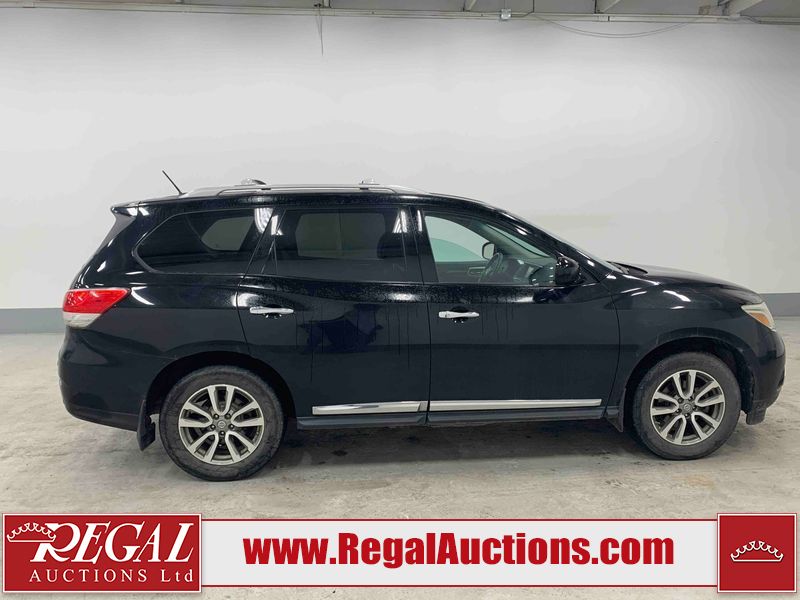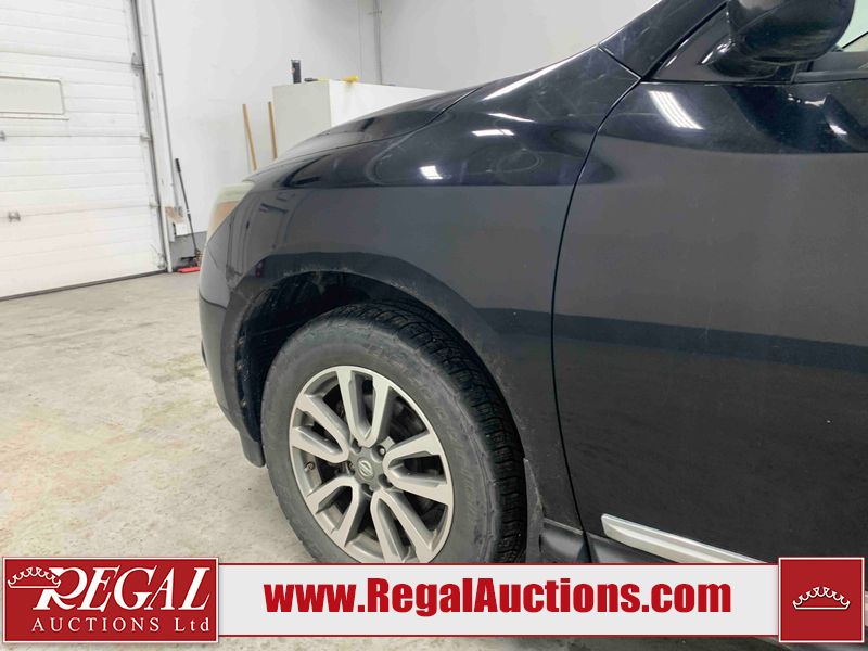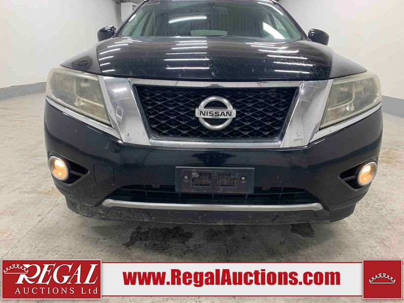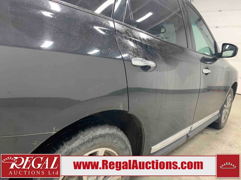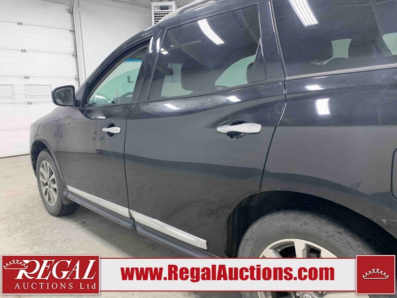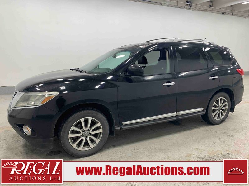 This 2013 NISSAN PATHFINDER SL 4D UTILITY 4WD is powered by a 3.5L V6 gasoline engine and an automatic transmission. It is equipped with four-wheel drive. The SUV has seats for 5 people. The mileage is average considering the SUV's age. The vehicle has high-value options including leather upholstery, power seats, heated seats, a backup camera, and a power liftgate. The Stability Control light is on. The body looks to be in fair condition overall. There are chips on the front bumper, grille, hood, roof, and rear bumper. There are slight scratches on the front bumper, hood, roof, left front fender, left front door, left rear door, left rear fender, rear bumper, rear door, right rear fender, right rear door, right front door, and right front fender. There is slight dent damage on the right front door. There are very minor chips in many areas around the body. The interior looks to be in good condition overall. The driver's seat, passenger seat, rear seats, and doors are dirty. The carpet is dirty. The windshield looks to be in good condition. The tires are all worn. This SUV is being sold by an automotive broker. The vehicle will be sold with the following declarations: Out of Province - BC (See Footnote 1). Footnotes: 1) The vehicle's last registered jurisdiction is British Columbia. The purchaser must have the vehicle undergo and pass an Out of Province inspection before it can be registered in Alberta. Regal Auctions Ltd. makes no guarantee or warranty, either express or implied, with respect to the data provided in this report. The information has been provided from the consignor and from sources generally believed to be reliable, however the accuracy of this information cannot be guaranteed by Regal Auctions.