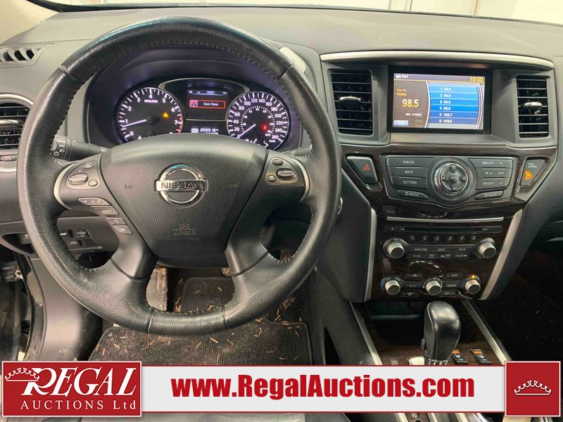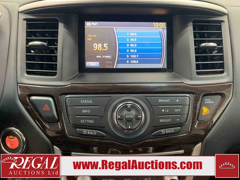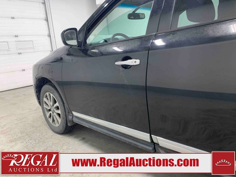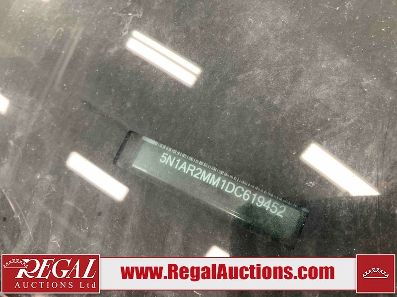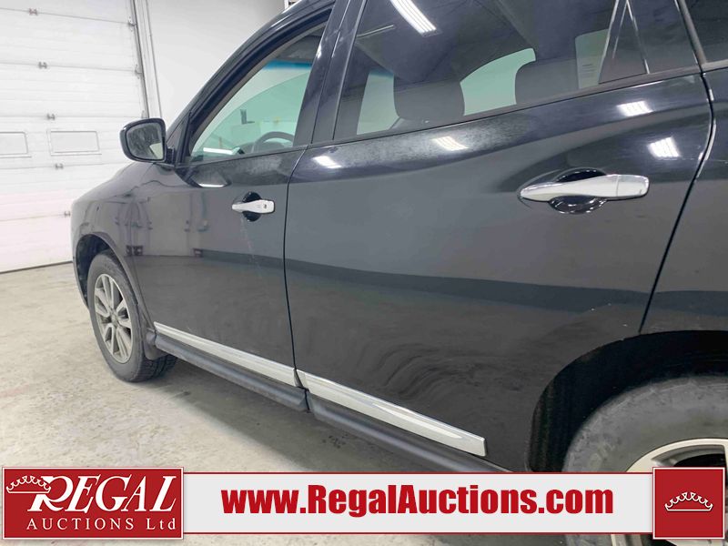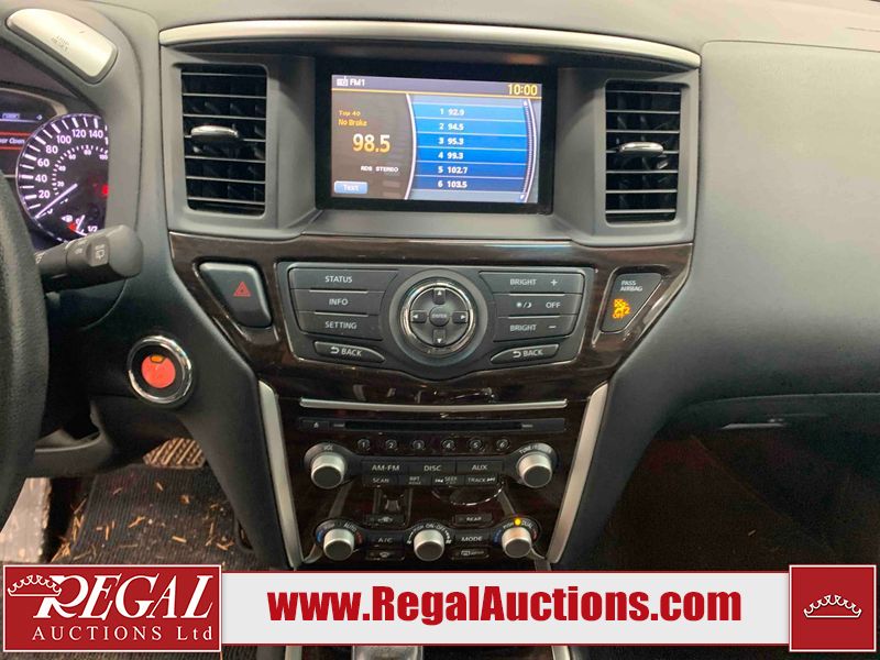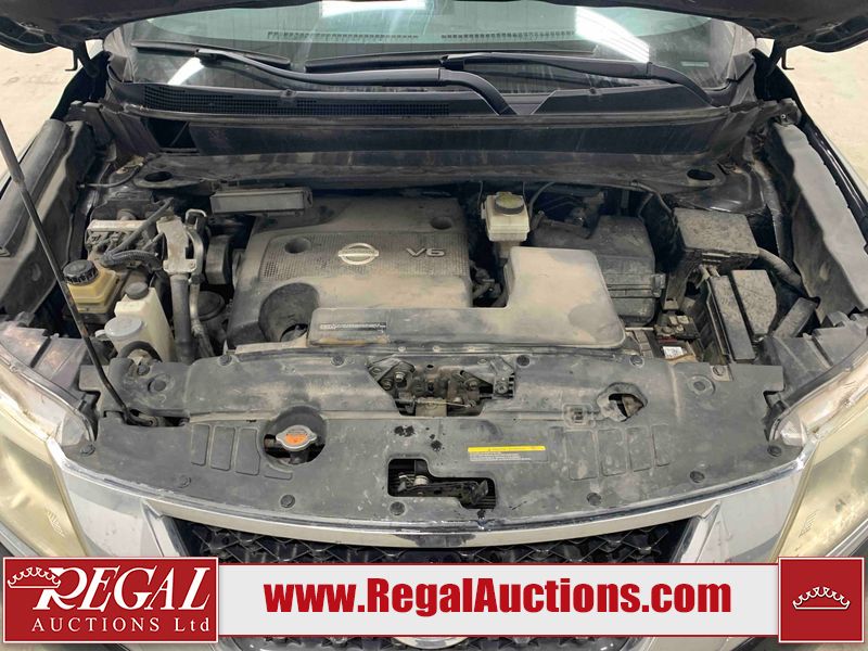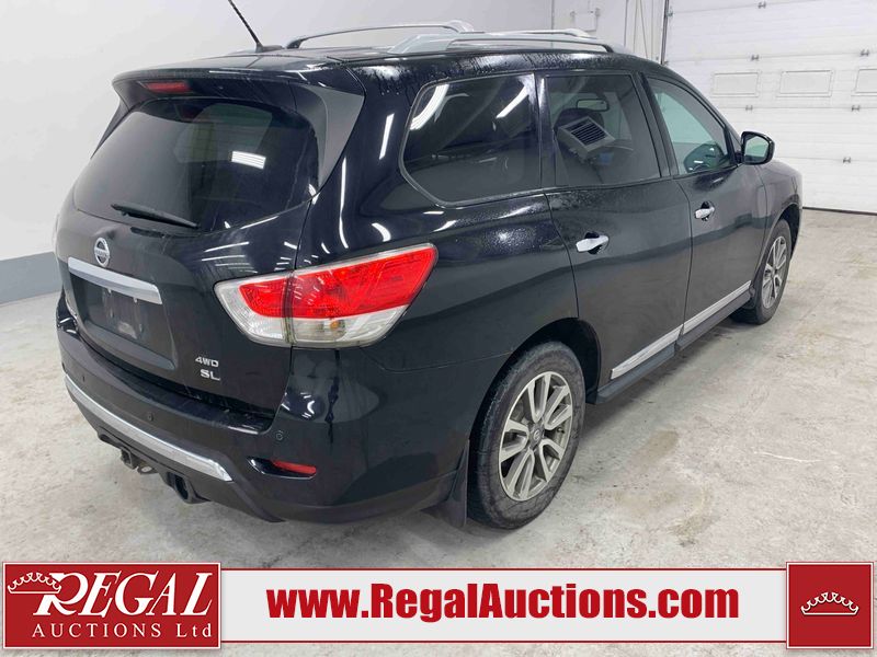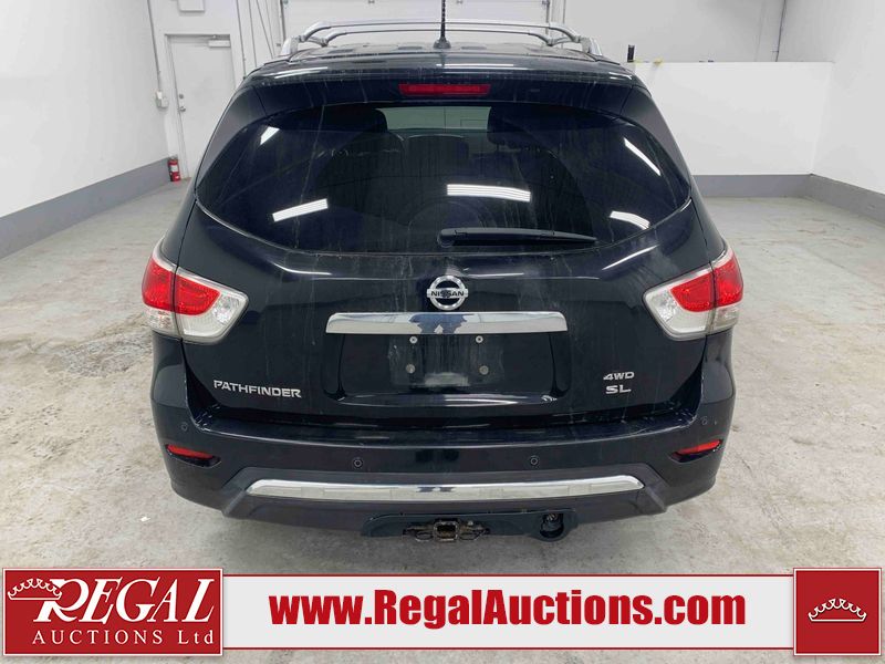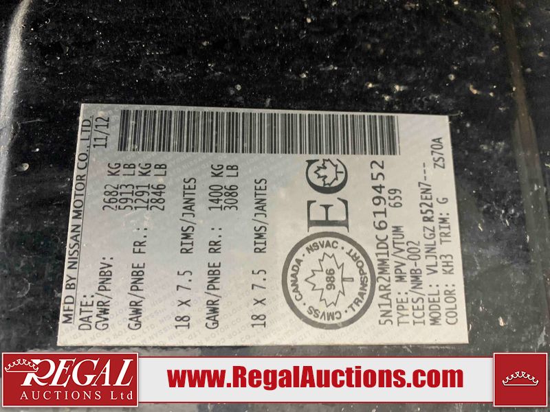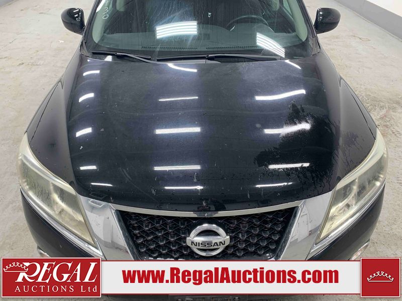 This 2013 NISSAN PATHFINDER SL 4D UTILITY 4WD is powered by a 3.5L V6 gasoline engine and an automatic transmission. It is equipped with four-wheel drive. The SUV has seats for 5 people. The mileage is average considering the SUV's age. The vehicle has high-value options including leather upholstery, power seats, heated seats, a backup camera, and a power liftgate. The Stability Control light is on. The body looks to be in fair condition overall. There are chips on the front bumper, grille, hood, roof, and rear bumper. There are slight scratches on the front bumper, hood, roof, left front fender, left front door, left rear door, left rear fender, rear bumper, rear door, right rear fender, right rear door, right front door, and right front fender. There is slight dent damage on the right front door. There are very minor chips in many areas around the body. The interior looks to be in good condition overall. The driver's seat, passenger seat, rear seats, and doors are dirty. The carpet is dirty. The windshield looks to be in good condition. The tires are all worn. This SUV is being sold by an automotive broker. The vehicle will be sold with the following declarations: Out of Province - BC (See Footnote 1). Footnotes: 1) The vehicle's last registered jurisdiction is British Columbia. The purchaser must have the vehicle undergo and pass an Out of Province inspection before it can be registered in Alberta. Regal Auctions Ltd. makes no guarantee or warranty, either express or implied, with respect to the data provided in this report. The information has been provided from the consignor and from sources generally believed to be reliable, however the accuracy of this information cannot be guaranteed by Regal Auctions.