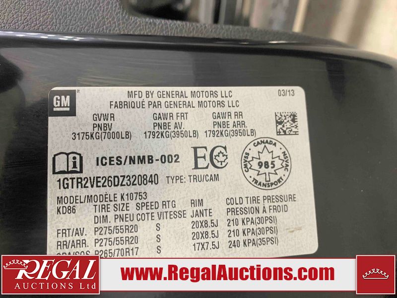 This 2013 GMC SIERRA 1500 SLE EXTENDED CAB PICKUP is powered by a 6.2L V8 cylinder gasoline engine and an automatic transmission. It is equipped with four-wheel drive. The truck has seats for 6 people. The truck has high mileage for its age. The vehicle has high-value options including power seats and a backup camera. The body looks to be in rough condition overall. There is pronounced rust on the left rear fender and right rear fender. There is dent damage on the hood, left front fender, and right front fender. There are chips on the roof, left rear fender, tailgate, and right rear fender. There is rust on the roof and tailgate. There are scratches on the left front door, left rear fender, tailgate, and right rear fender. There is paint peeling on the left rear fender, tailgate, and right rear fender. There are very minor chips in many areas around the body. There are very minor scratches in many areas around the body. There is very minor dent damage on the roof. The interior looks to be in fair condition overall. The driver's seat is torn. The doors are worn. The windshield is cracked. All of the tires have lots of tread remaining. This truck is being sold by a franchise dealership. The vehicle will be sold with the following declarations: Dealership Trade-In (See Footnote 1). Footnotes: 1) This vehicle is being sold on behalf of a franchise dealership. Franchise Dealerships are automotive sales companies who are directly connected to an automotive manufacturer like Ford, Tesla, Honda, BMW, or similar. Regal Auctions Ltd. makes no guarantee or warranty, either express or implied, with respect to the data provided in this report. The information has been provided from the consignor and from sources generally believed to be reliable, however the accuracy of this information cannot be guaranteed by Regal Auctions.