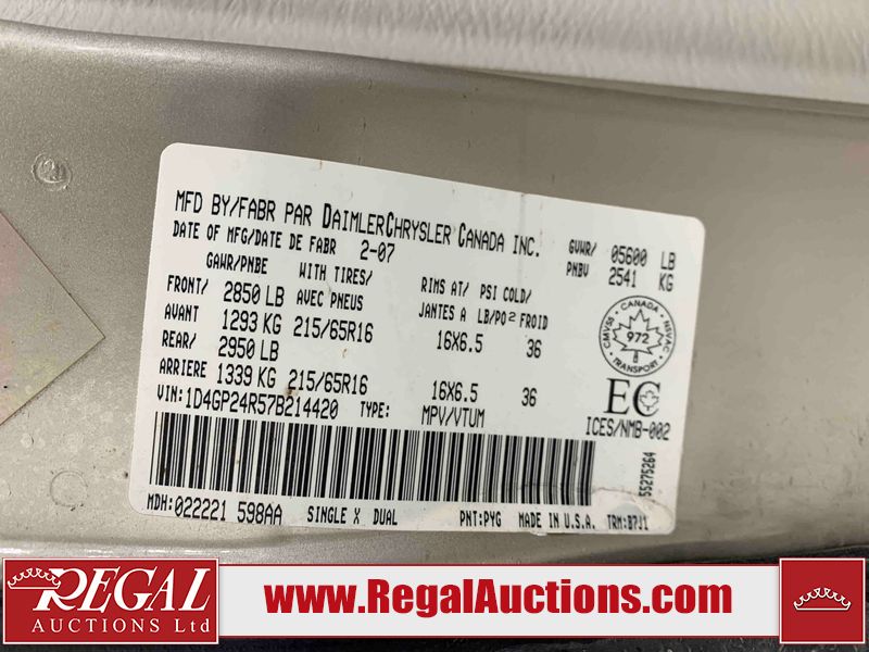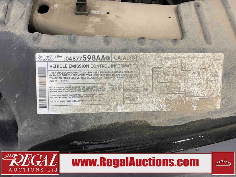 This 2007 DODGE GRAND CARAVAN 4D VAN is powered by a 3.3L V6 gasoline engine and an automatic transmission. The van has seats for 7 people. The van has high mileage for its age. The Airbag, Check Engine, and ABS lights are on. The body looks to be in rough condition overall. The front bumper is cracked. There is conspicuous rust on the left rear fender and right rear fender. There is noteworthy paint peeling on the right rear fender. There are chips on the front bumper, grille, hood, roof, left front fender, left front door, left rear door, left rear fender, rear bumper, rear door, and right rear fender. There are minor scratches on the front bumper, left rear fender, rear bumper, rear door, and right rear fender. There is minimal rust on the hood, left front door, left rear door, rear door, right rear door, and right front door. There is minimal paint peeling on the left rear fender and rear door. There are very minor scratches in many areas around the body. There are very minor chips in a few areas around the body. The rear bumper is misaligned. The interior looks to be in good condition overall. The windshield is damaged. The front tires are nearly bald and should be replaced. The rear tires are worn. This van is being sold by an automotive broker. Regal Auctions Ltd. makes no guarantee or warranty, either express or implied, with respect to the data provided in this report. The information has been provided from the consignor and from sources generally believed to be reliable, however the accuracy of this information cannot be guaranteed by Regal Auctions.