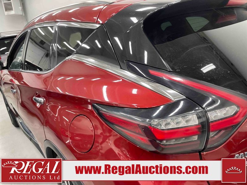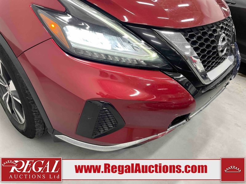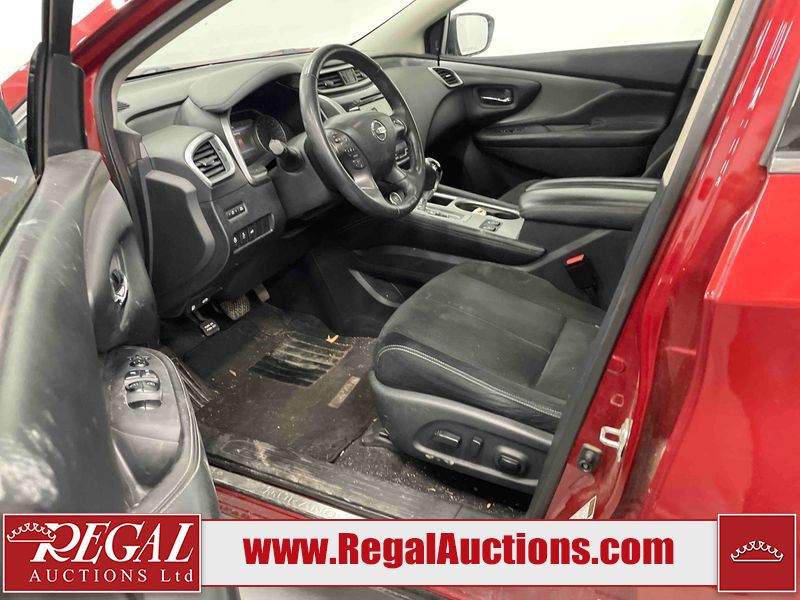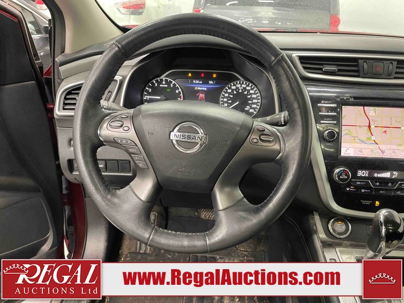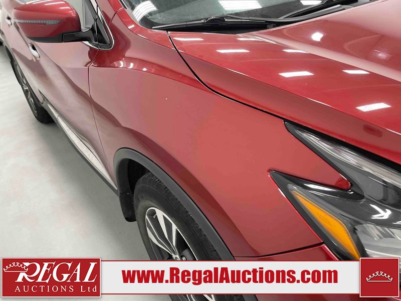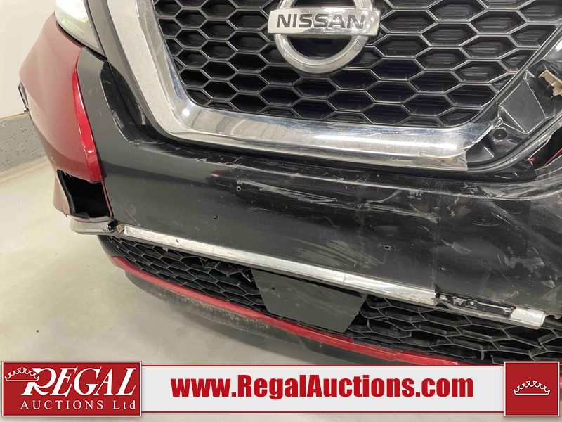 This 2019 NISSAN MURANO SV 4D UTILITY AWD 3.5L is powered by a 6 cylinder gasoline engine and an automatic transmission. It is equipped with four wheel drive. The SUV has seats for 5 people. The mileage is average considering the SUV's age. The vehicle has high value options including a sunroof, power seats, heated seats, navigation, a backup camera, and a power lift gate. The Tire Pressure light is on. Left front headlight is broken. The body looks to be in rough condition overall. There is misaligned damage to the front bumper. There are considerable scratches on the front bumper. The front bumper is broken. There is severe dent damage on the hood. The fascia is broken on the front bumper. There are conspicuous chips on the front bumper. The grille is cracked. There are some scratches on the hood. There is moderate paint peeling on the left front fender. There are slight chips on the hood, roof, and right front fender. There are scratches on the roof, left front fender, and rear bumper. There is dent damage on the left front fender and right rear door. There are very minor chips in many areas around the body. There are very minor scratches in many areas around the body. The headlights are broken. The interior looks to be in fair condition overall. The driver's seat and passenger seat are stained. The rear seats and doors are dirty. The carpet is dirty. There is roofliner cigarette burns damage to the interior. The windshield is chipped. The tires are all worn.