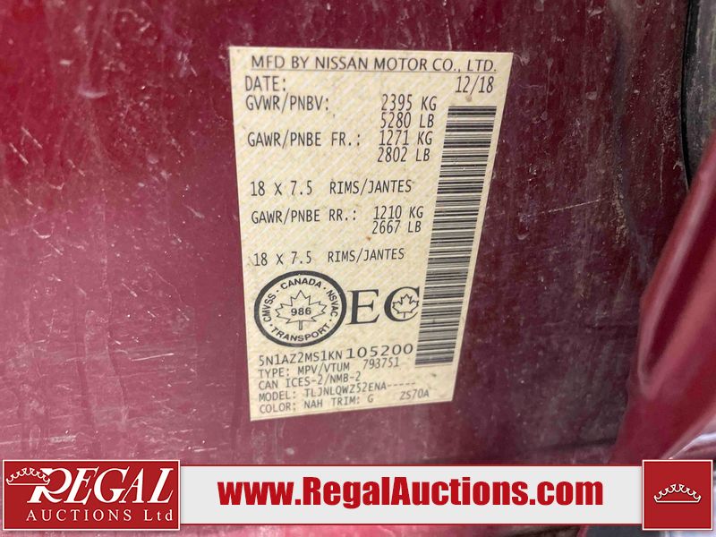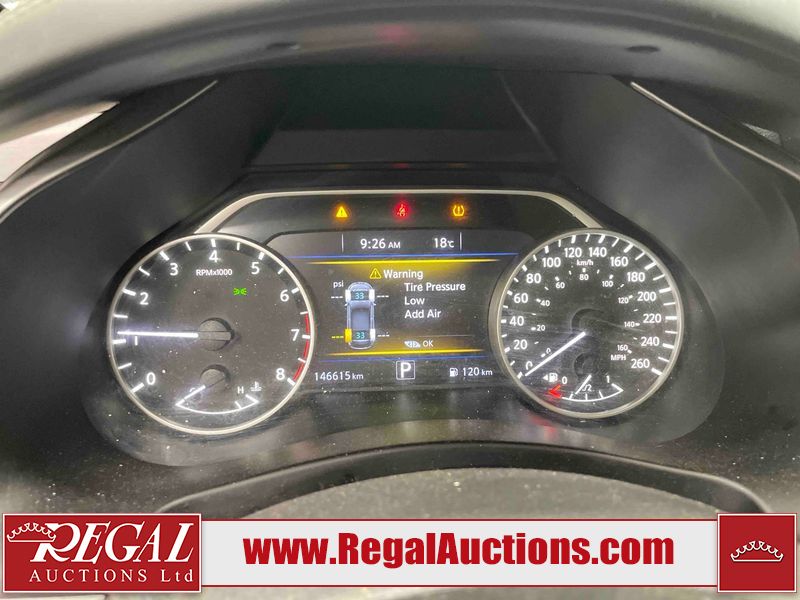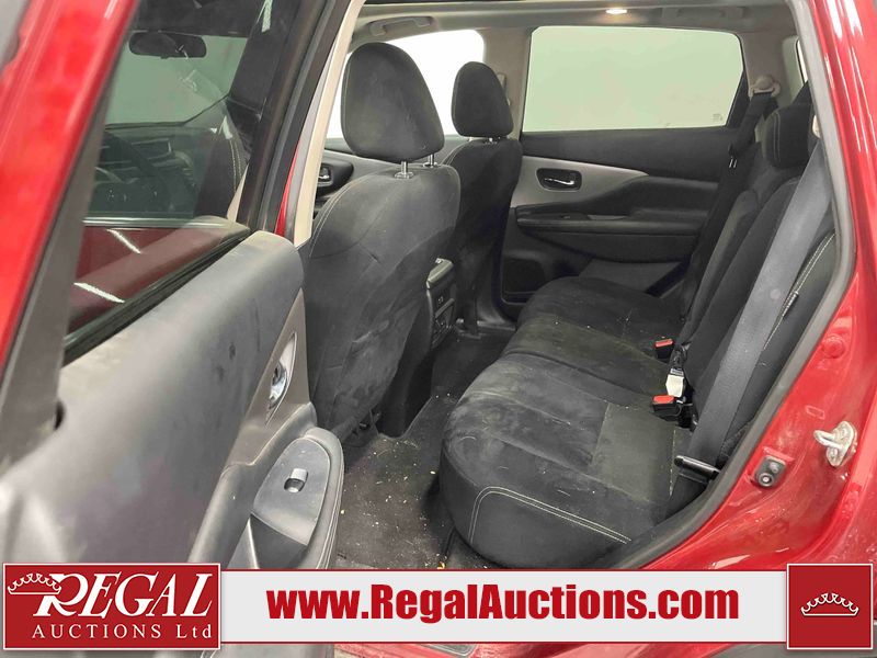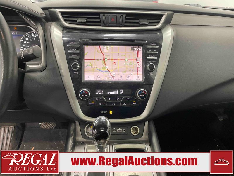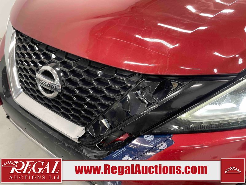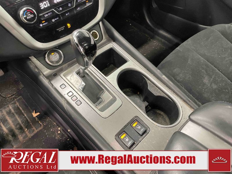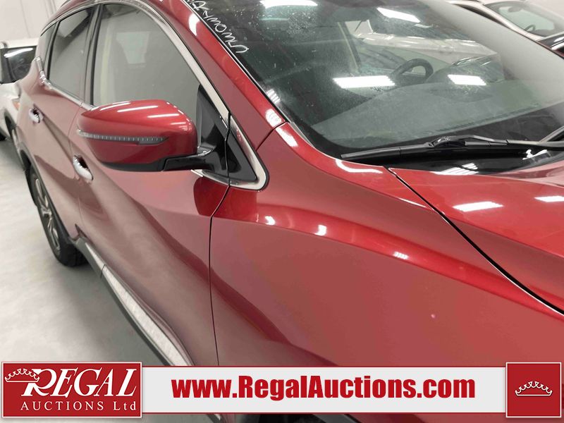 This 2019 NISSAN MURANO SV 4D UTILITY AWD 3.5L is powered by a 6 cylinder gasoline engine and an automatic transmission. It is equipped with four wheel drive. The SUV has seats for 5 people. The mileage is average considering the SUV's age. The vehicle has high value options including a sunroof, power seats, heated seats, navigation, a backup camera, and a power lift gate. The Tire Pressure light is on. Left front headlight is broken. The body looks to be in rough condition overall. There is misaligned damage to the front bumper. There are considerable scratches on the front bumper. The front bumper is broken. There is severe dent damage on the hood. The fascia is broken on the front bumper. There are conspicuous chips on the front bumper. The grille is cracked. There are some scratches on the hood. There is moderate paint peeling on the left front fender. There are slight chips on the hood, roof, and right front fender. There are scratches on the roof, left front fender, and rear bumper. There is dent damage on the left front fender and right rear door. There are very minor chips in many areas around the body. There are very minor scratches in many areas around the body. The headlights are broken. The interior looks to be in fair condition overall. The driver's seat and passenger seat are stained. The rear seats and doors are dirty. The carpet is dirty. There is roofliner cigarette burns damage to the interior. The windshield is chipped. The tires are all worn.