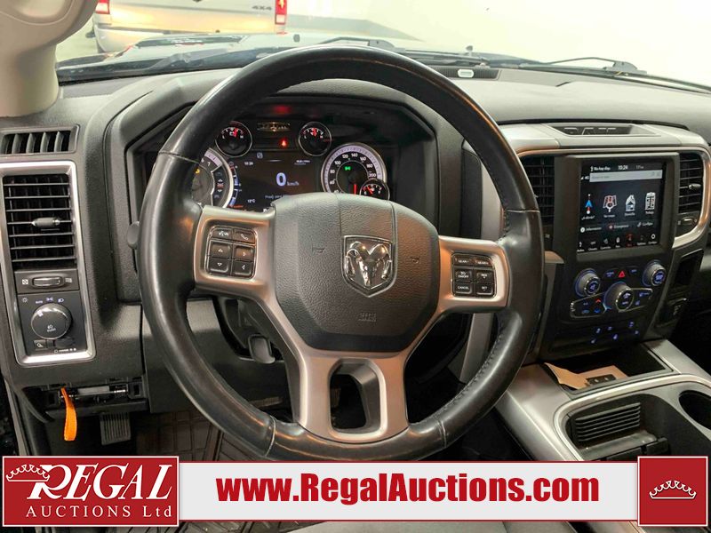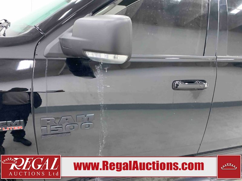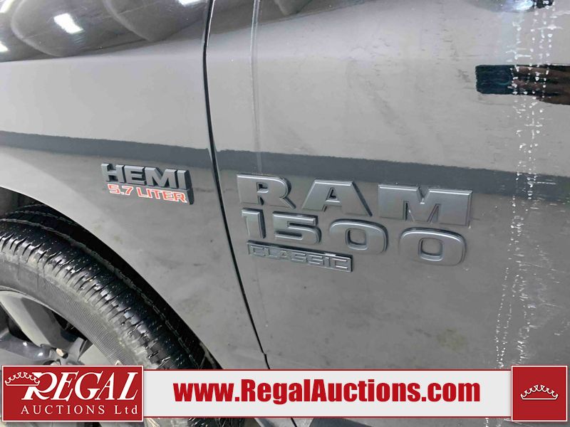 This 2023 RAM 1500 CLASSIC SLT CREW CAB SWB 4WD 5.7L is powered by a 8 cylinder gasoline engine and an automatic transmission. It is equipped with four wheel drive. The truck has seats for 5 people. The truck has low mileage for its age. The vehicle has high value options including power seats, heated seats, navigation, and a backup camera. The Check Engine light is on. The body looks to be in good condition overall. There are chips on the front bumper, grille, hood, and right rear fender. There are very minor scratches in many areas around the body. There are very minor chips in many areas around the body. The interior looks to be in good condition overall. The carpet is dirty. The windshield is chipped. All of the tires have lots of tread remaining.
