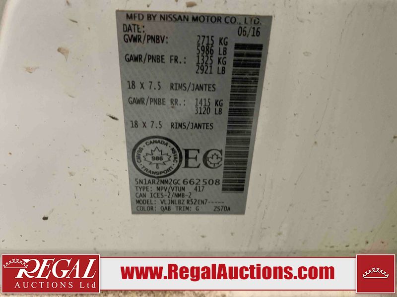 This 2016 NISSAN PATHFINDER S 4D UTILITY 4WD 3.5L is powered by a 6 cylinder gasoline engine and an automatic transmission. It is equipped with four wheel drive. The SUV has seats for 7 people. The SUV has high mileage for its age. The vehicle has high value options including a power lift gate. The vehicle has some mechanical problems. The battery is dead. The vehicle requires a boost to start and may require a booster pack in order to stay running. The exhaust is noisy. The trunk does not open. The body looks to be in rough condition overall. The rear bumper is cracked. There are a fair amount of scratches on the right rear fender. There are minor chips on the front bumper, left front fender, left front door, left rear door, left rear fender, rear bumper, rear door, right rear fender, right front door, and right front fender. There are scratches on the left front door, right rear door, and right front door. There is paint peeling on the rear door. There is slight dent damage on the right rear fender and right rear door. There are very minor scratches in many areas around the body. There are very minor chips in some areas around the body. There is very minor dent damage in a few areas around the body.There is misaligned damage to the rear bumper. The fog lights are broken. The tail lights are broken. There is entire part missing damage to the driver mirror. There is entire part missing damage to the passenger mirror. The interior looks to be in rough condition overall. The driver's seat, passenger seat, and rear seats are stained. There are pronounced cigarette burns on the driver's seat and passenger seat. The dashboard, driver's seat, passenger seat, rear seats, and doors are dirty. The carpet is dirty. The roofliner is dirty. The windshield is cracked. The front tires are nearly bald and should be replaced. The rear tires have lots of tread.