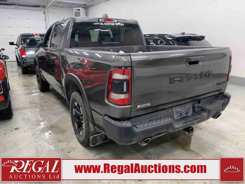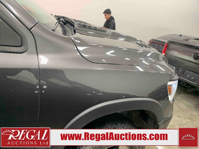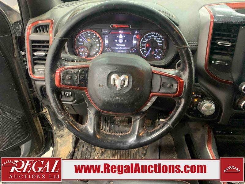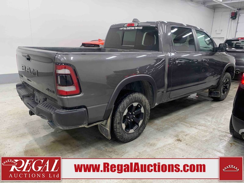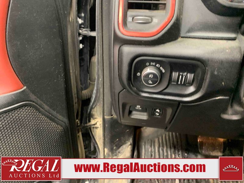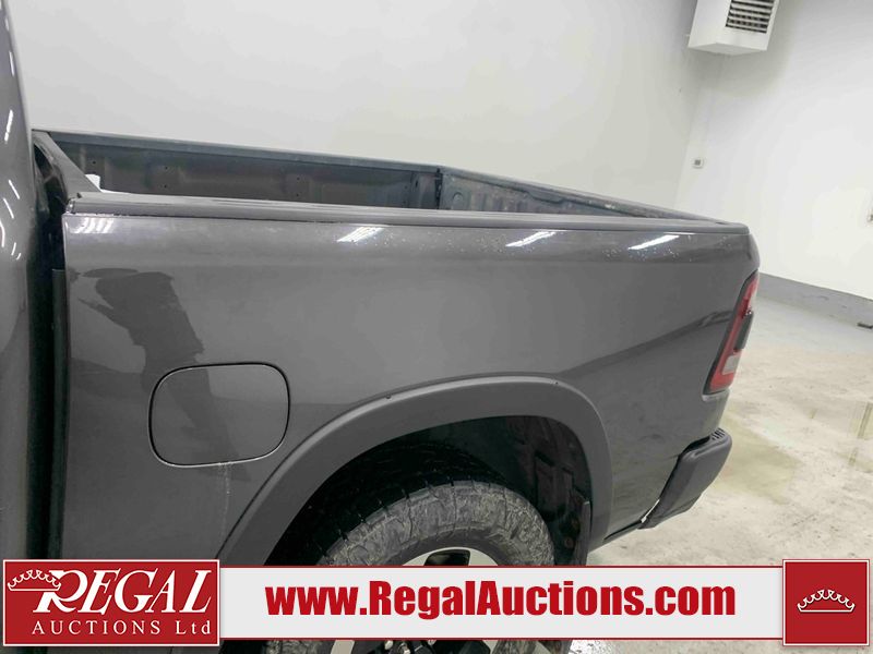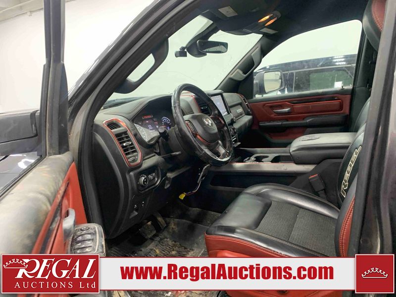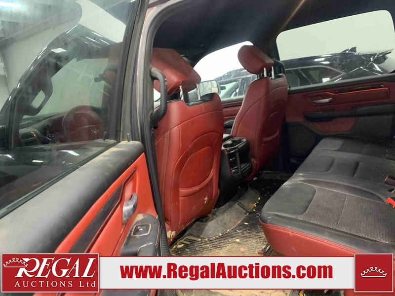 This 2019 RAM 1500 REBEL CREW CAB SWB 4WD 5.7L is powered by a 8 cylinder gasoline engine and an automatic transmission. It is equipped with four wheel drive. The truck has seats for 5 people. The truck has high mileage for its age. The vehicle has high value options including leather upholstery, power seats, heated seats, and a backup camera. The body looks to be in rough condition overall. The left front fender is cracked. There is severe dent damage on the right rear fender and right rear door. The right rear fender has been repainted poorly. There are minimal chips on the front bumper, hood, left front fender, right front door, and right front fender. There is dent damage on the left front fender, left front door, left rear door, rear bumper, tail gate, and right front door. There are minimal scratches on the left front door, tail gate, right rear fender, and right rear door. There is minor paint peeling on the rear bumper. There are very minor scratches in many areas around the body. There are very minor chips in many areas around the body. There is fascia misaligned damage to the rear bumper. The interior looks to be in rough condition overall. There are a fair amount of cigarette burns on the driver's seat. The passenger seat and rear seats are stained. The dashboard, passenger seat, rear seats, and doors are dirty. The carpet is dirty. The windshield is cracked. All of the tires have lots of tread remaining.