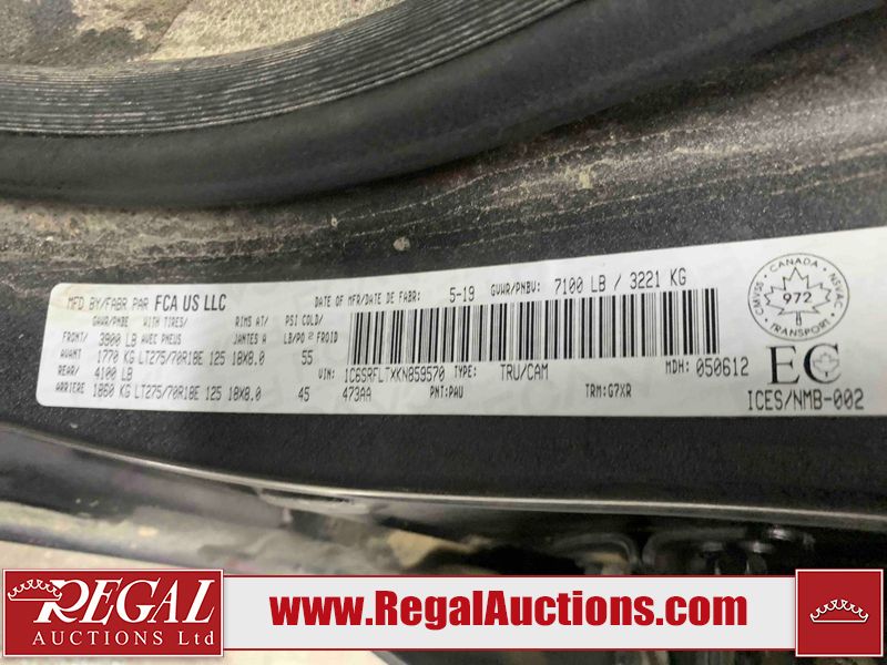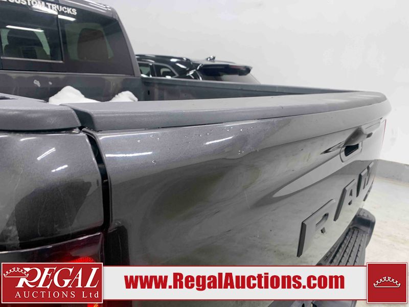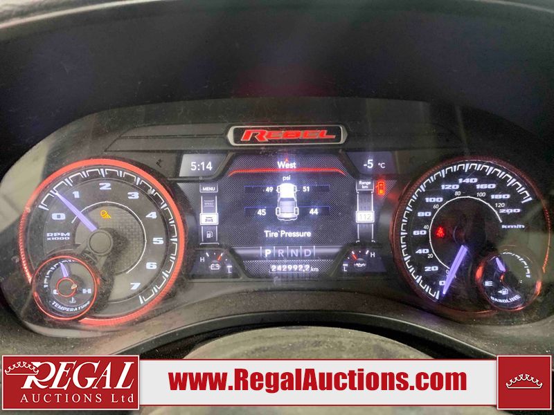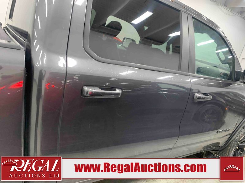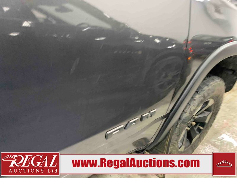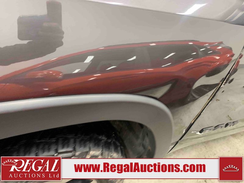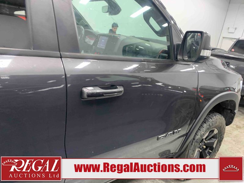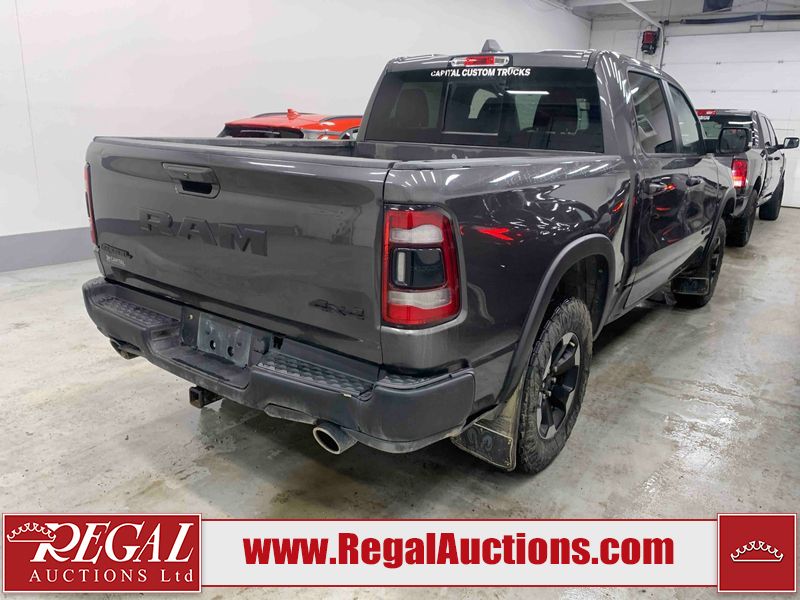 This 2019 RAM 1500 REBEL CREW CAB SWB 4WD 5.7L is powered by a 8 cylinder gasoline engine and an automatic transmission. It is equipped with four wheel drive. The truck has seats for 5 people. The truck has high mileage for its age. The vehicle has high value options including leather upholstery, power seats, heated seats, and a backup camera. The body looks to be in rough condition overall. The left front fender is cracked. There is severe dent damage on the right rear fender and right rear door. The right rear fender has been repainted poorly. There are minimal chips on the front bumper, hood, left front fender, right front door, and right front fender. There is dent damage on the left front fender, left front door, left rear door, rear bumper, tail gate, and right front door. There are minimal scratches on the left front door, tail gate, right rear fender, and right rear door. There is minor paint peeling on the rear bumper. There are very minor scratches in many areas around the body. There are very minor chips in many areas around the body. There is fascia misaligned damage to the rear bumper. The interior looks to be in rough condition overall. There are a fair amount of cigarette burns on the driver's seat. The passenger seat and rear seats are stained. The dashboard, passenger seat, rear seats, and doors are dirty. The carpet is dirty. The windshield is cracked. All of the tires have lots of tread remaining.