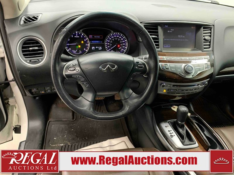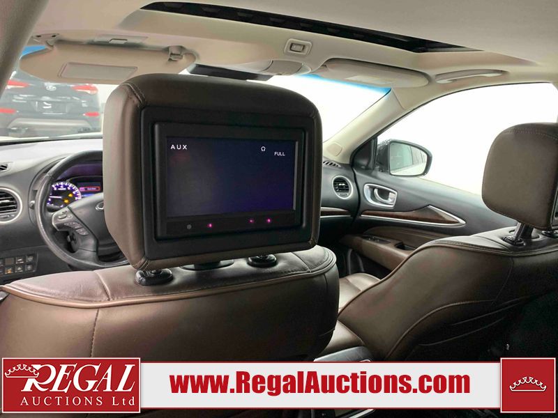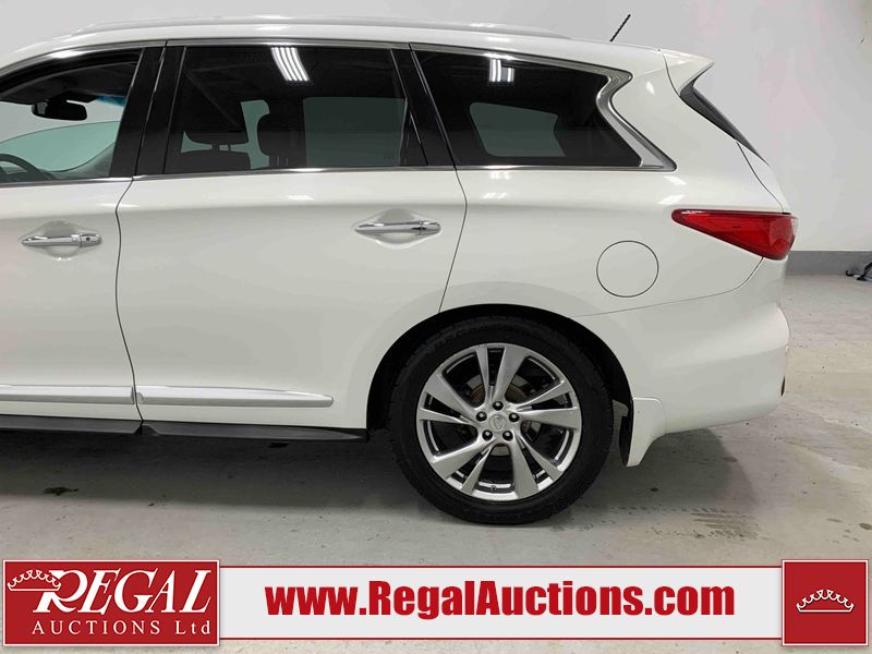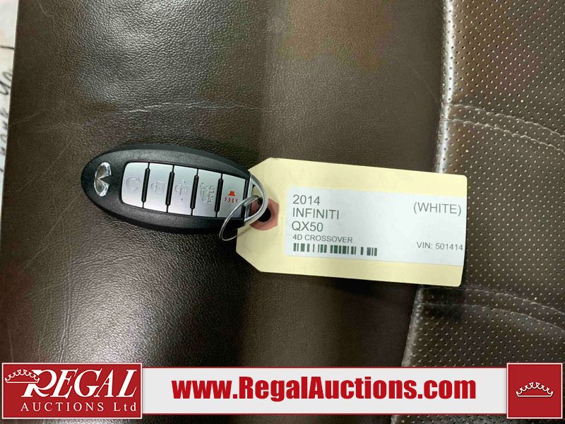 This 2014 INFINITI QX50 4D CROSSOVER is powered by a 3.5L 6 cylinder gasoline engine and an automatic transmission. It is equipped with four wheel drive. The SUV has seats for 7 people. The SUV has low mileage for its age. The vehicle has high value options including a sunroof, leather upholstery, power seats, heated seats, navigation, a backup camera, and a power lift gate. The tire pressure monitor light is on. The body looks to be in good condition overall. There are very minor chips in many areas around the body. There are very minor scratches in a few areas around the body. The interior looks to be in good condition overall. The windshield looks to be in good condition. All of the tires have lots of tread remaining. This SUV is being sold by an automotive broker. Regal Auctions Ltd. makes no guarantee or warranty, either express or implied, with respect to the data provided in this report. The information has been provided from the consignor and from sources generally believed to be reliable, however the accuracy of this information cannot be guaranteed by Regal Auctions.