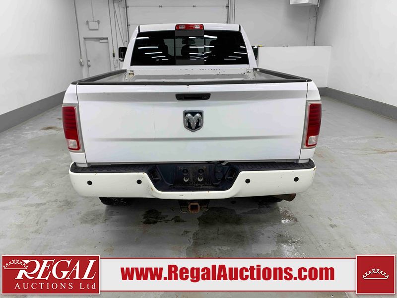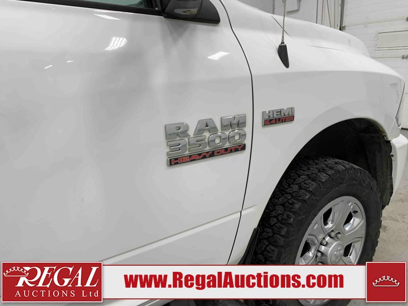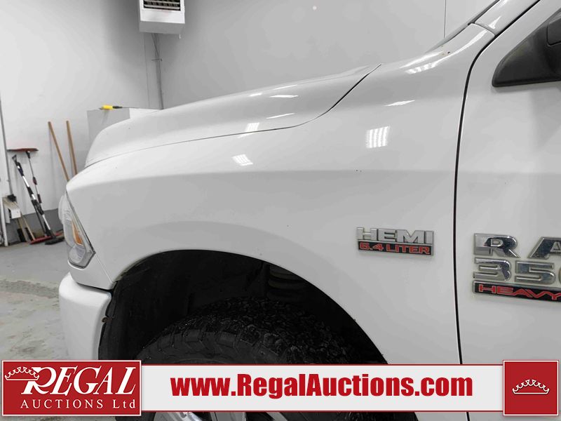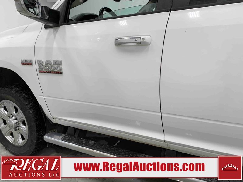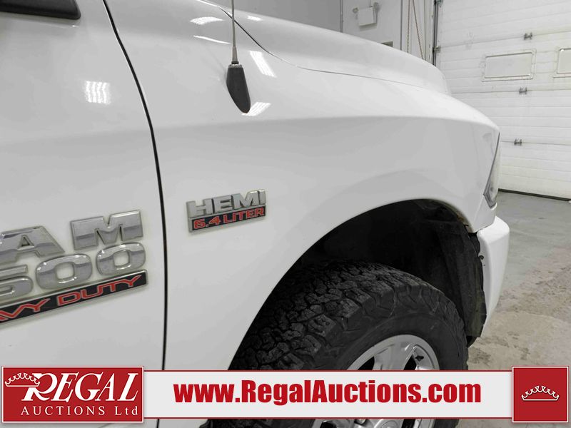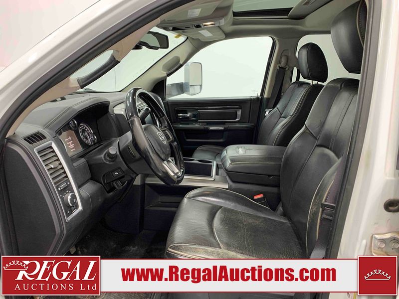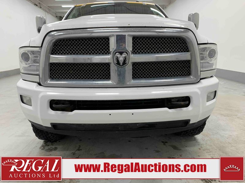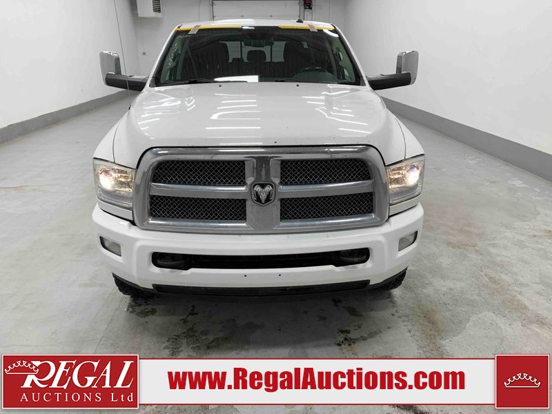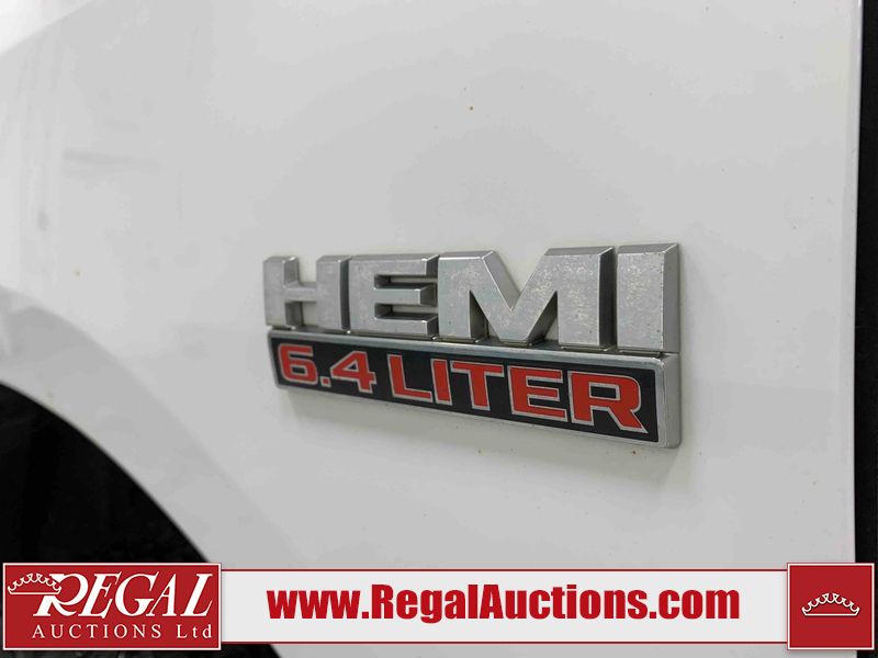 This 2014 RAM 3500 LONGHORN MEGA CAB 4WD is powered by a turbocharged 6.4L 8CYL GAS 8 cylinder gasoline engine and an automatic transmission. It is equipped with four wheel drive. The truck has seats for 5 people. The truck has high mileage for its age. LONGHORN is a very popular trim level. The vehicle has high value options including leather upholstery, power seats, heated seats, navigation, and a backup camera. The body looks to be in rough condition overall. The rear bumper is a different color from the rest of the vehicle. There is some chrome peeling on the grille. There are incidental chips on the front bumper, hood, roof, left front fender, left front door, left rear door, rear bumper, tail gate, right rear fender, and right front fender. There are minimal scratches on the hood, roof, left rear door, left rear fender, rear bumper, right rear fender, right rear door, and right front door. There is rust on the hood, roof, left front fender, left front door, left rear door, left rear fender, rear bumper, tail gate, right rear fender, right rear door, right front door, and right front fender. There is minimal dent damage on the tail gate and right rear fender. There are very minor scratches in many areas around the body. There are very minor chips in some areas around the body. There is very minor dent damage in a few areas around the body. The interior looks to be in fair condition overall. The driver's seat is worn. The passenger seat, rear seats, and doors are dirty. The windshield looks to be in good condition. All of the tires have lots of tread remaining. This truck is being sold by an automotive broker. Regal Auctions Ltd. makes no guarantee or warranty, either express or implied, with respect to the data provided in this report. The information has been provided from the consignor and from sources generally believed to be reliable, however the accuracy of this information cannot be guaranteed by Regal Auctions.