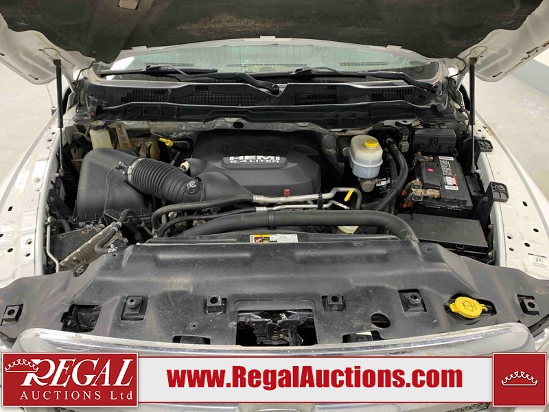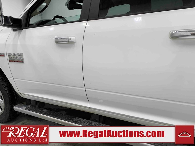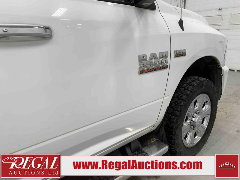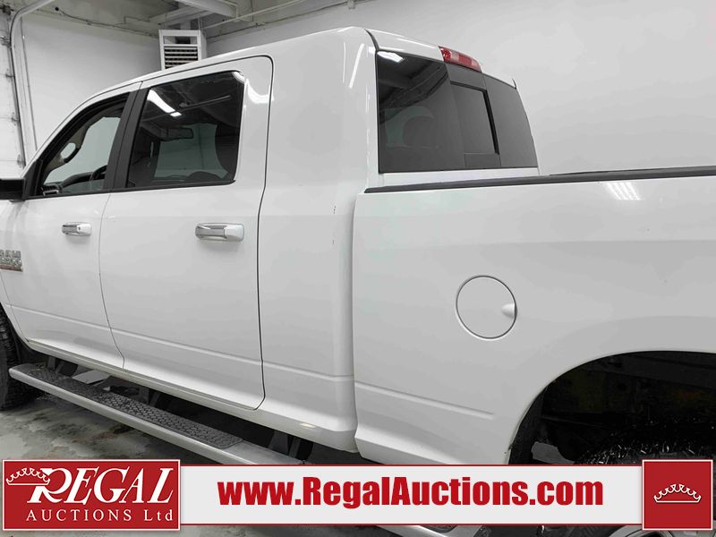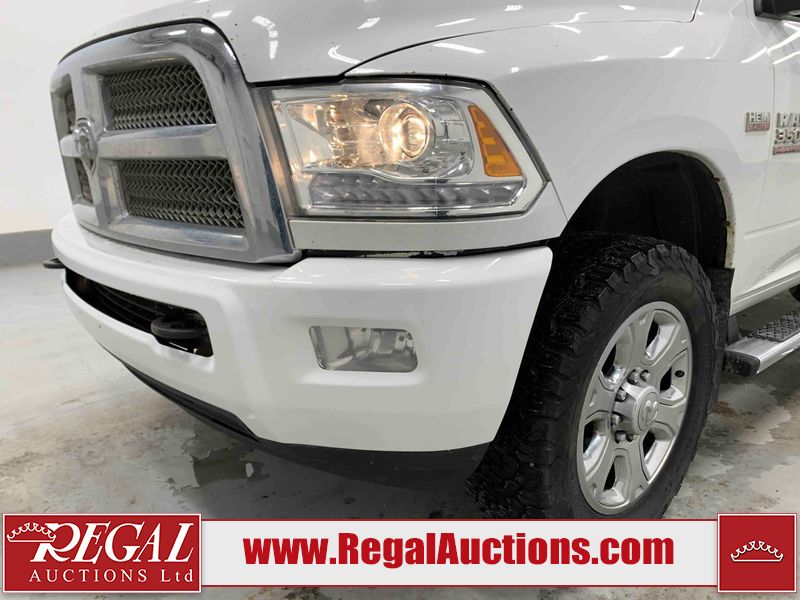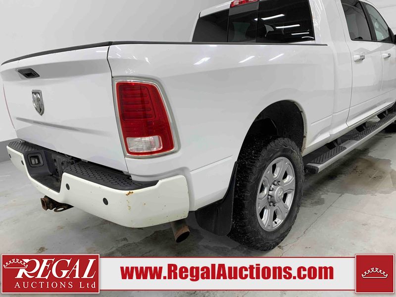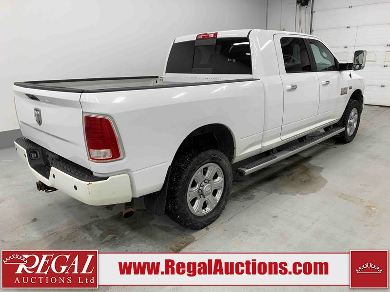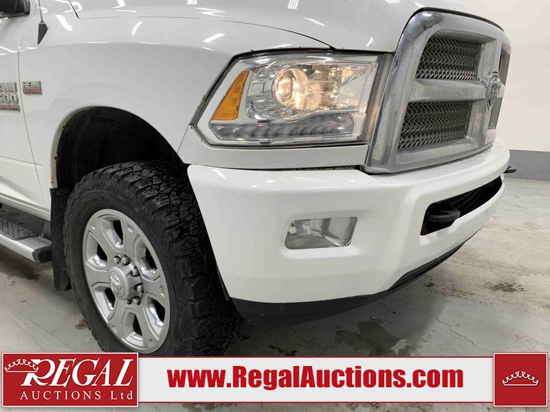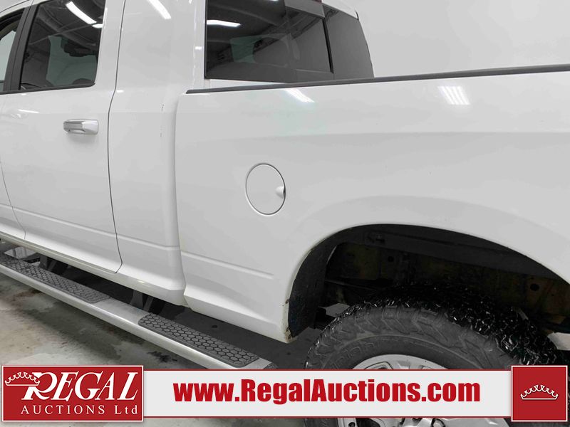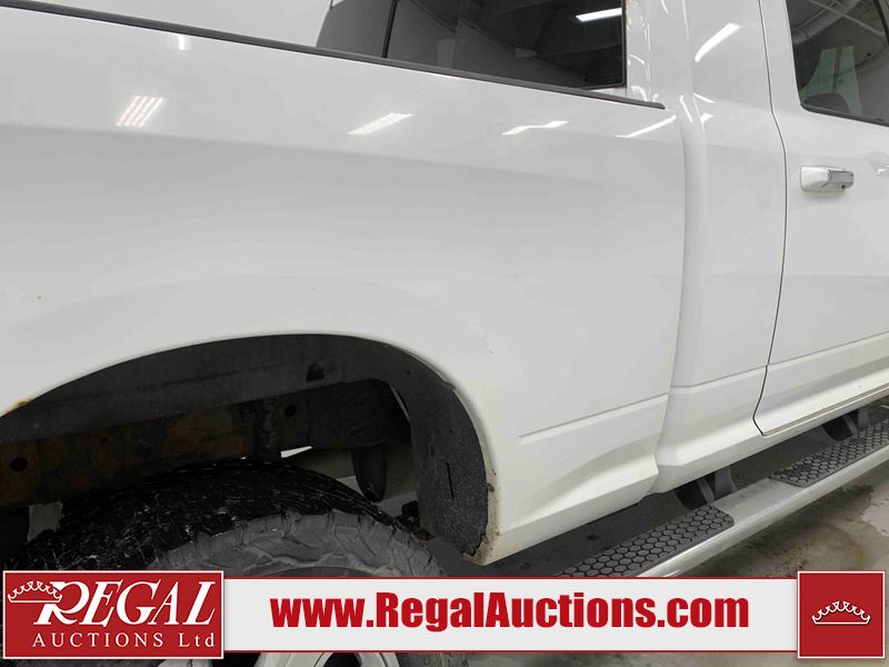 This 2014 RAM 3500 LONGHORN MEGA CAB 4WD is powered by a turbocharged 6.4L 8CYL GAS 8 cylinder gasoline engine and an automatic transmission. It is equipped with four wheel drive. The truck has seats for 5 people. The truck has high mileage for its age. LONGHORN is a very popular trim level. The vehicle has high value options including leather upholstery, power seats, heated seats, navigation, and a backup camera. The body looks to be in rough condition overall. The rear bumper is a different color from the rest of the vehicle. There is some chrome peeling on the grille. There are incidental chips on the front bumper, hood, roof, left front fender, left front door, left rear door, rear bumper, tail gate, right rear fender, and right front fender. There are minimal scratches on the hood, roof, left rear door, left rear fender, rear bumper, right rear fender, right rear door, and right front door. There is rust on the hood, roof, left front fender, left front door, left rear door, left rear fender, rear bumper, tail gate, right rear fender, right rear door, right front door, and right front fender. There is minimal dent damage on the tail gate and right rear fender. There are very minor scratches in many areas around the body. There are very minor chips in some areas around the body. There is very minor dent damage in a few areas around the body. The interior looks to be in fair condition overall. The driver's seat is worn. The passenger seat, rear seats, and doors are dirty. The windshield looks to be in good condition. All of the tires have lots of tread remaining. This truck is being sold by an automotive broker. Regal Auctions Ltd. makes no guarantee or warranty, either express or implied, with respect to the data provided in this report. The information has been provided from the consignor and from sources generally believed to be reliable, however the accuracy of this information cannot be guaranteed by Regal Auctions.