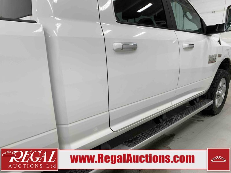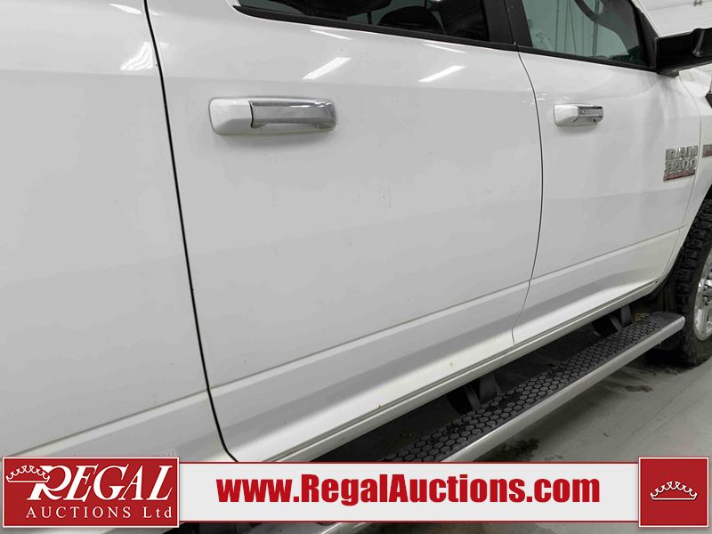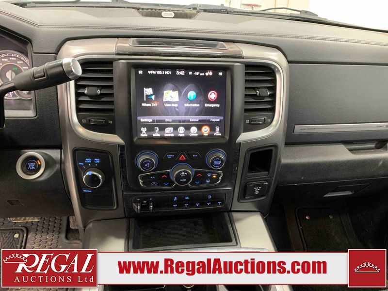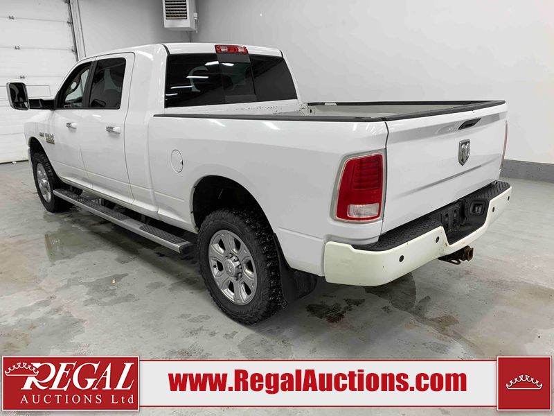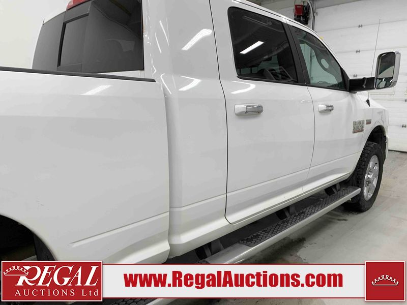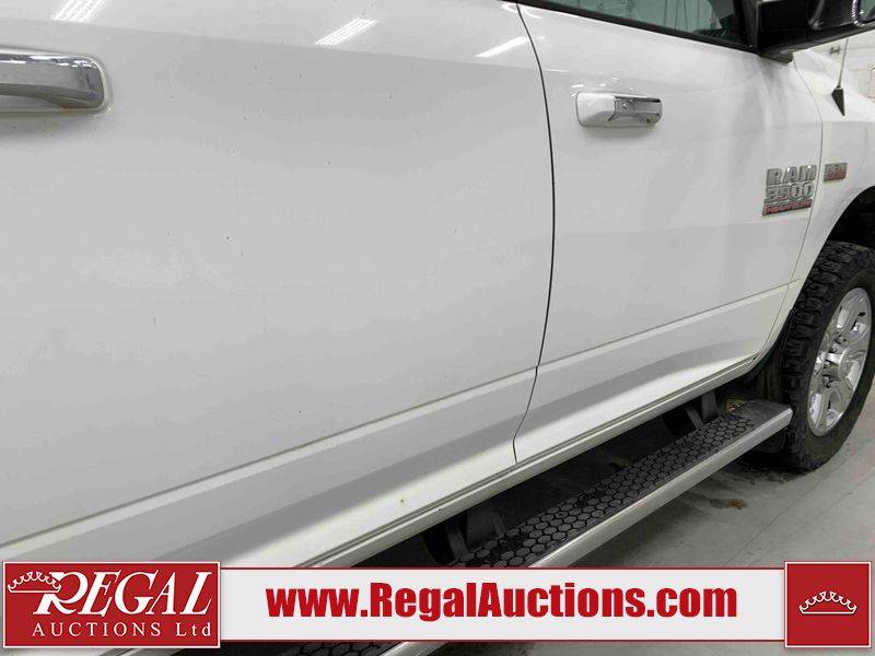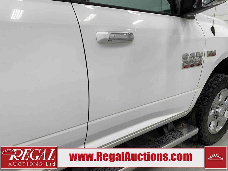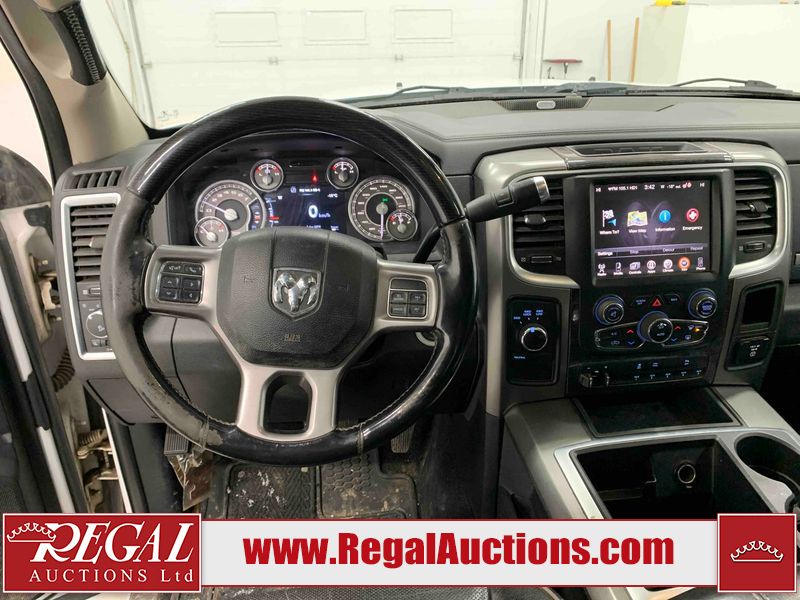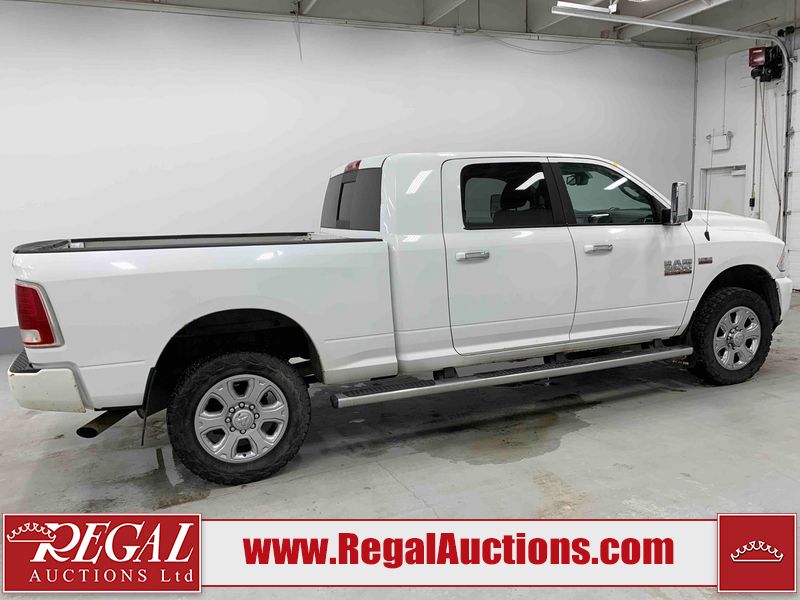 This 2014 RAM 3500 LONGHORN MEGA CAB 4WD is powered by a turbocharged 6.4L 8CYL GAS 8 cylinder gasoline engine and an automatic transmission. It is equipped with four wheel drive. The truck has seats for 5 people. The truck has high mileage for its age. LONGHORN is a very popular trim level. The vehicle has high value options including leather upholstery, power seats, heated seats, navigation, and a backup camera. The body looks to be in rough condition overall. The rear bumper is a different color from the rest of the vehicle. There is some chrome peeling on the grille. There are incidental chips on the front bumper, hood, roof, left front fender, left front door, left rear door, rear bumper, tail gate, right rear fender, and right front fender. There are minimal scratches on the hood, roof, left rear door, left rear fender, rear bumper, right rear fender, right rear door, and right front door. There is rust on the hood, roof, left front fender, left front door, left rear door, left rear fender, rear bumper, tail gate, right rear fender, right rear door, right front door, and right front fender. There is minimal dent damage on the tail gate and right rear fender. There are very minor scratches in many areas around the body. There are very minor chips in some areas around the body. There is very minor dent damage in a few areas around the body. The interior looks to be in fair condition overall. The driver's seat is worn. The passenger seat, rear seats, and doors are dirty. The windshield looks to be in good condition. All of the tires have lots of tread remaining. This truck is being sold by an automotive broker. Regal Auctions Ltd. makes no guarantee or warranty, either express or implied, with respect to the data provided in this report. The information has been provided from the consignor and from sources generally believed to be reliable, however the accuracy of this information cannot be guaranteed by Regal Auctions.