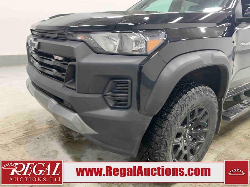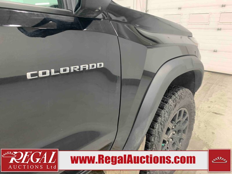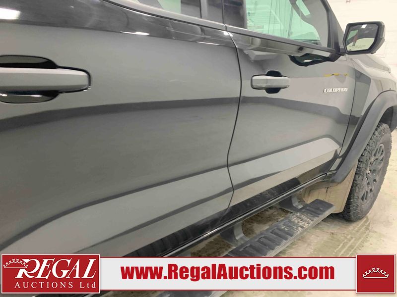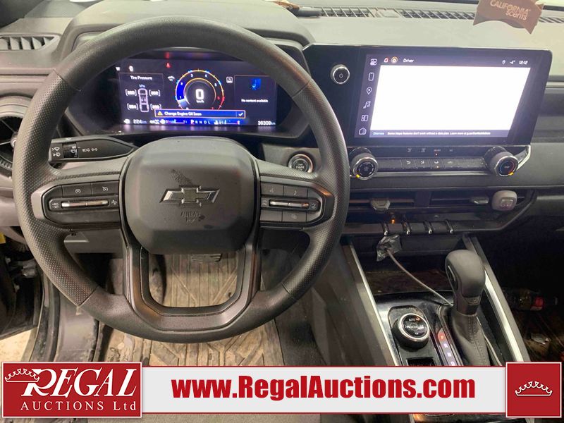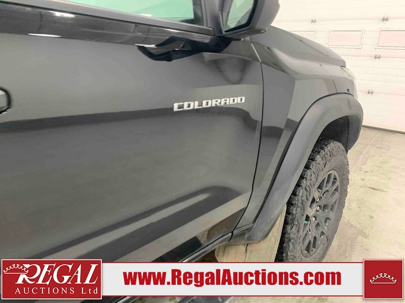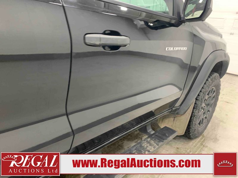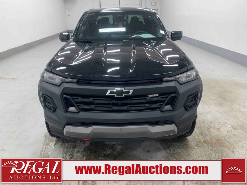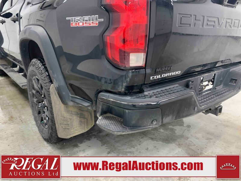 This 2024 CHEVROLET COLORADO TRAIL BOSS EXTENDED CAB SWB 4WD 2.7L is powered by a turbocharged 4 cylinder gasoline engine and an automatic transmission. It is equipped with four wheel drive. The truck has seats for 5 people. The truck has high mileage for its age. The vehicle has high value options including power seats and a backup camera. The body looks to be in fair condition overall. There are moderate scratches on the right front fender. There are incidental scratches on the front bumper, left rear door, left rear fender, tail gate, right rear fender, and right rear door. There are incidental chips on the grille and tail gate. There is minimal dent damage on the roof. There are very minor chips in many areas around the body. There are very minor scratches in many areas around the body. There is very minor dent damage on the right rear fender. The tail lights are broken. The left rear tail light is broken. The interior looks to be in fair condition overall. The passenger seat and rear seats are stained. The carpet is dirty. The windshield is cracked. All of the tires have lots of tread remaining.