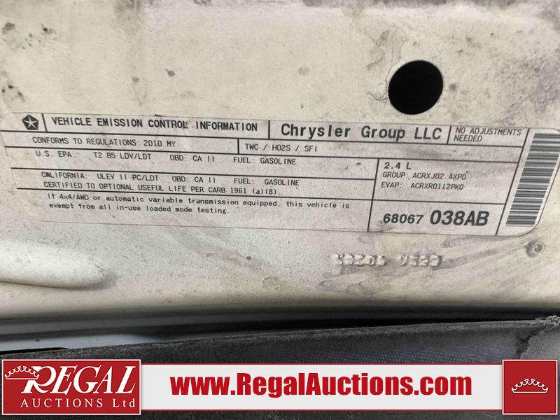 This 2010 JEEP PATRIOT BASE 4D UTILITY 4WD is powered by a 2.4L 4-cylinder gasoline engine and an automatic transmission. It is equipped with four-wheel drive. The SUV has seats for 5 people. The mileage is average considering the SUV's age. The Tire Pressure and Traction Control lights are on. The vehicle has some mechanical problems. The battery is dead. The vehicle requires a boost to start and may require a booster pack in order to stay running. (See Footnote 1) The body looks to be in fair condition overall. There are minimal chips on the front bumper, hood, and rear bumper. There are slight scratches on the front bumper, hood, roof, left front fender, left front door, left rear door, left rear fender, rear bumper, rear door, right rear fender, right rear door, right front door, and right front fender. There is rust on the roof, left front fender, and right rear door. There is slight paint peeling on the left front fender. There are very minor chips in many areas around the body. The interior looks to be in fair condition overall. The driver seat is torn. There are noteworthy stains on the driver's seat and passenger seat. The windshield looks to be in good condition. All of the tires have lots of tread remaining. This SUV is being sold by an automotive broker. The vehicle will be sold with the following declarations: Out of Province - BC (See Footnote 2) and Out of Province - AB OVERRIDE (See Footnote 3). Footnotes: 1) We've identified some mechanical problems with the vehicle. However, the vehicle has not undergone a mechanical inspection and our findings are not to be considered a complete evaluation of the vehicle's mechanical condition. Review our Buyer Protection Policy to see how Regal Auctions protects you from undisclosed mechanical problems. 2) The vehicle's last registered jurisdiction is British Columbia. The purchaser must have the vehicle undergo and pass an Out of Province inspection before it can be registered in Alberta. 3) Out of province inspection for registering the vehicle in Alberta has been completed. Regal Auctions Ltd. makes no guarantee or warranty, either express or implied, with respect to the data provided in this report. The information has been provided from the consignor and from sources generally believed to be reliable, however the accuracy of this information cannot be guaranteed by Regal Auctions.