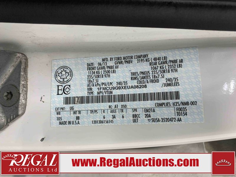 This 2014 FORD ESCAPE 4D UTILITY 4WD is powered by a 2.0L 4-cylinder gasoline engine and an automatic transmission. It is equipped with four-wheel drive. The SUV has seats for 5 people. The mileage is average considering the SUV's age. The vehicle has high-value options including a sunroof, heated seats, and a backup camera. The Tire Pressure light is on. The body looks to be in fair condition overall. There are minimal chips on the front bumper, hood, roof, and left front fender. There are scratches on the front bumper, hood, roof, left front fender, and right rear fender. There are very minor chips in many areas around the body. There are very minor scratches in many areas around the body. The interior looks to be in good condition overall. The driver seat is worn. The windshield looks to be in good condition. The tires are all worn. This SUV is being sold by a franchise dealership. The vehicle will be sold with the following declarations: Dealership Trade-In (See Footnote 1). Footnotes: 1) This vehicle is being sold on behalf of a franchise dealership. Franchise Dealerships are automotive sales companies who are directly connected to an automotive manufacturer like Ford, Tesla, Honda, BMW, or similar. Regal Auctions Ltd. makes no guarantee or warranty, either express or implied, with respect to the data provided in this report. The information has been provided from the consignor and from sources generally believed to be reliable, however the accuracy of this information cannot be guaranteed by Regal Auctions.