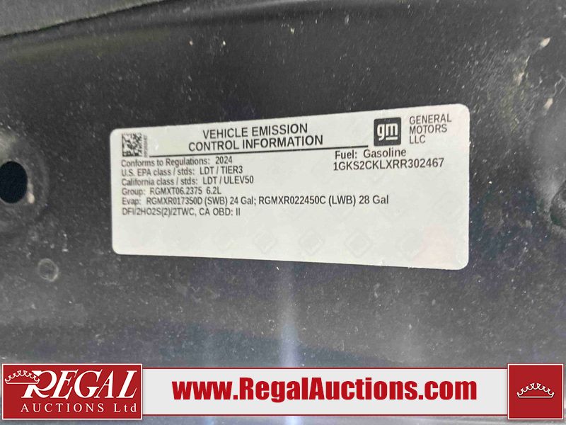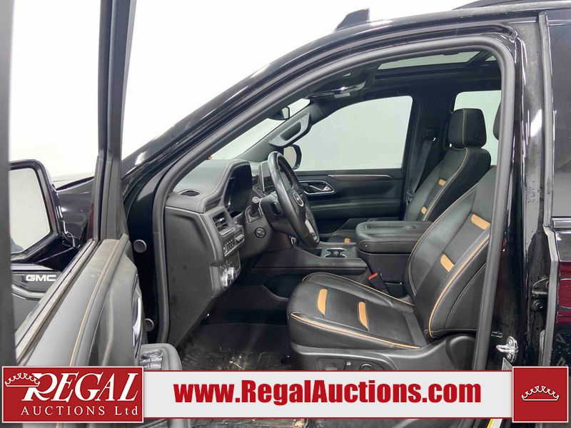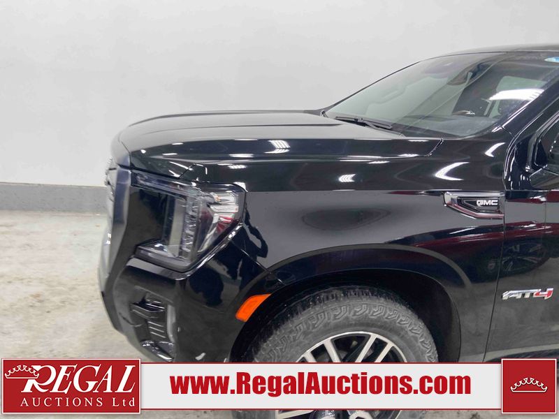 This 2024 GMC YUKON AT4 4D UTILITY 4WD 6.2L is powered by a 8 cylinder gasoline engine and an automatic transmission. It is equipped with four wheel drive. The SUV has seats for 7 people. The mileage is average considering the SUV's age. The vehicle has high value options including a sunroof, leather upholstery, power seats, heated seats, navigation, a backup camera, and a power lift gate. The body looks to be in fair condition overall. The front bumper is cracked. There are chips on the front bumper and grille. There is slight dent damage on the left rear fender. There are very minor chips in many areas around the body. There are very minor scratches in many areas around the body. The interior looks to be in good condition overall. The carpet is dirty. The windshield looks to be in good condition. All of the tires have lots of tread remaining.
