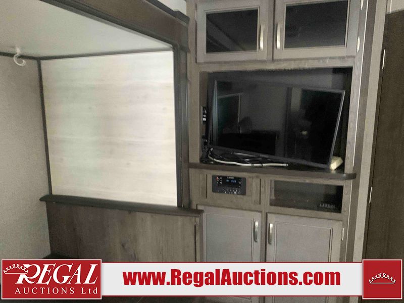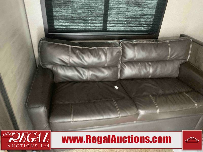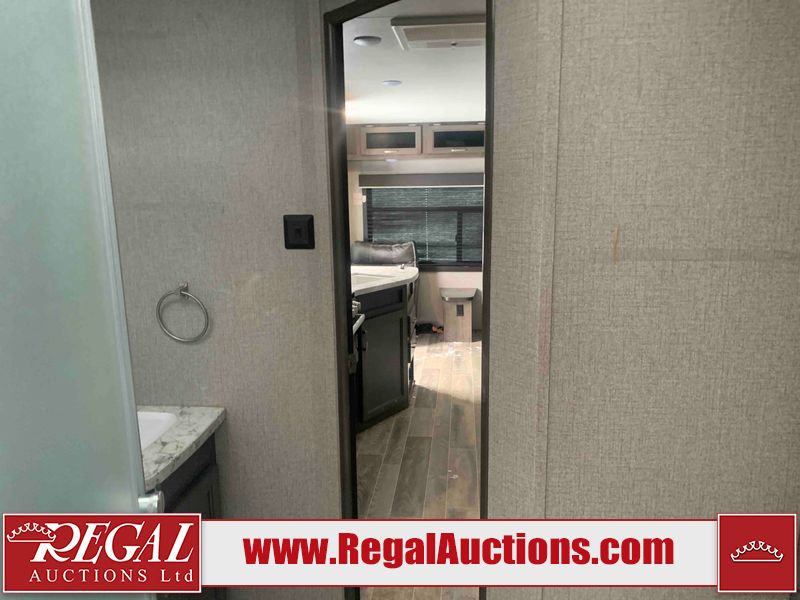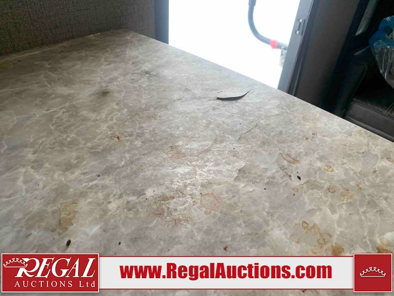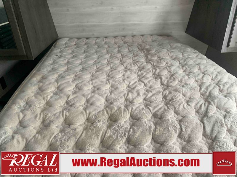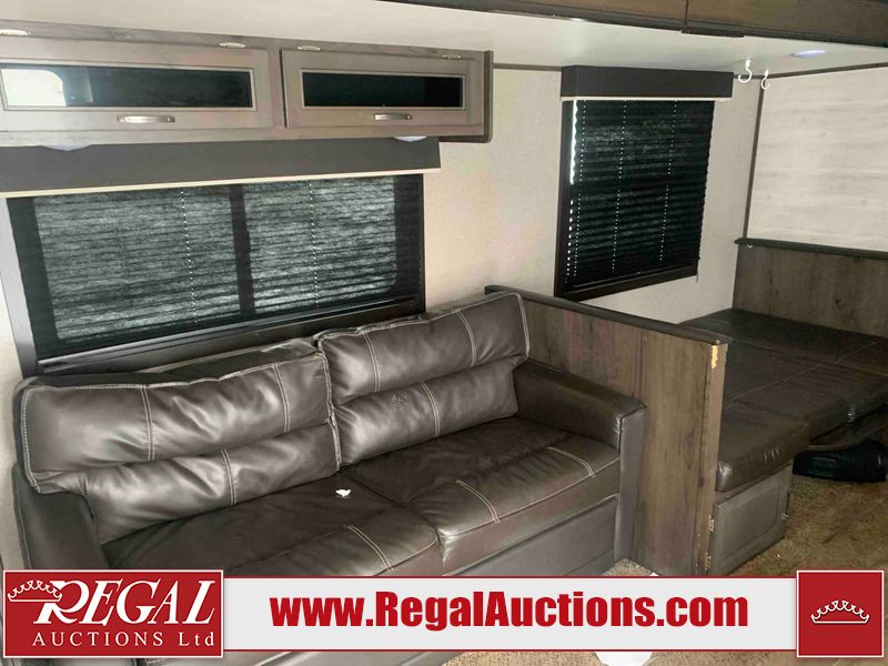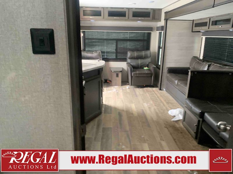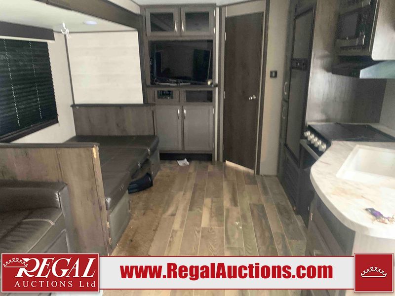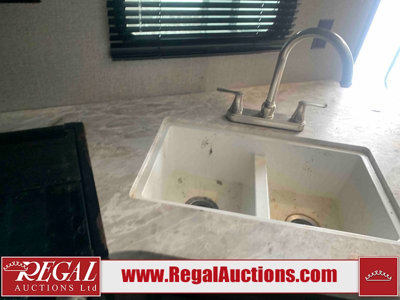 This RV is a 2021 Jayco Jay Flight 265RLS model tandem axle bumper pull trailer. it has a double door entry, roof air, and a single slide out accommodating the living area. The interior is dirty. Some walls are showing scratches and scuffs. The bed is worn. The trim panel has peeling paint. The kitchen at counter is peeling. The exterior walls are made of soft wall aluminum. Some walls are showing scratches and scuffs. The front wall has peeling paint. The left fender is broken. The left rear wall appears to have been hit and is damaged. This unit is with a battery, and two propane tanks. The tires are mounted to alloy rims and appear to be in good enough condition for use. The unit is equipped with a television, stereo system, refrigerator, microwave, oven, and a three burner stove top. The layout consist of a master bedroom/bathroom in the front, kitchenette/dinette in the center, and a living area in the rear.