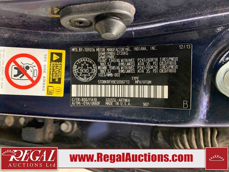 This 2014 TOYOTA HIGHLANDER BASE/HYBRID 4D UTILITY is powered by a 3.5L V6 gasoline engine and an automatic transmission. It is equipped with all-wheel drive. The SUV has seats for 8 people. The mileage is average considering the SUV's age. The vehicle has high-value options including power seats, heated seats, a backup camera, and a power liftgate. The Tire Pressure light is on. The vehicle has some mechanical problems. *TOW* *TRANSMISSION PROBLEMS - NO REVERSE* (See Footnote 1) The body looks to be in rough condition overall. There are incidental chips on the front bumper, hood, roof, left front fender, left front door, left rear door, left rear fender, rear bumper, rear door, right rear fender, right rear door, right front door, and right front fender. There are minimal scratches on the front bumper, hood, roof, left front fender, left front door, left rear door, left rear fender, rear bumper, rear door, right rear fender, right rear door, right front door, and right front fender. The front bumper has parts missing. There is minor dent damage on the left front fender, left rear fender, right front door, and right front fender. There are very minor chips on the grille. The taillights are broken. The interior looks to be in good condition overall. The driver's seat is stained. The dashboard and driver's seat are dirty. The windshield looks to be in good condition. All of the tires have lots of tread remaining. This SUV is being sold by a franchise dealership. The vehicle will be sold with the following declarations: Dealership Trade-In (See Footnote 2) and Mechanical Problems (See Footnote 1). Footnotes: 1) We've identified some mechanical problems with the vehicle. However, the vehicle has not undergone a mechanical inspection and our findings are not to be considered a complete evaluation of the vehicle's mechanical condition. Review our Buyer Protection Policy to see how Regal Auctions protects you from undisclosed mechanical problems. 2) This vehicle is being sold on behalf of a franchise dealership. Franchise Dealerships are automotive sales companies who are directly connected to an automotive manufacturer like Ford, Tesla, Honda, BMW, or similar. Regal Auctions Ltd. makes no guarantee or warranty, either express or implied, with respect to the data provided in this report. The information has been provided from the consignor and from sources generally believed to be reliable, however the accuracy of this information cannot be guaranteed by Regal Auctions.