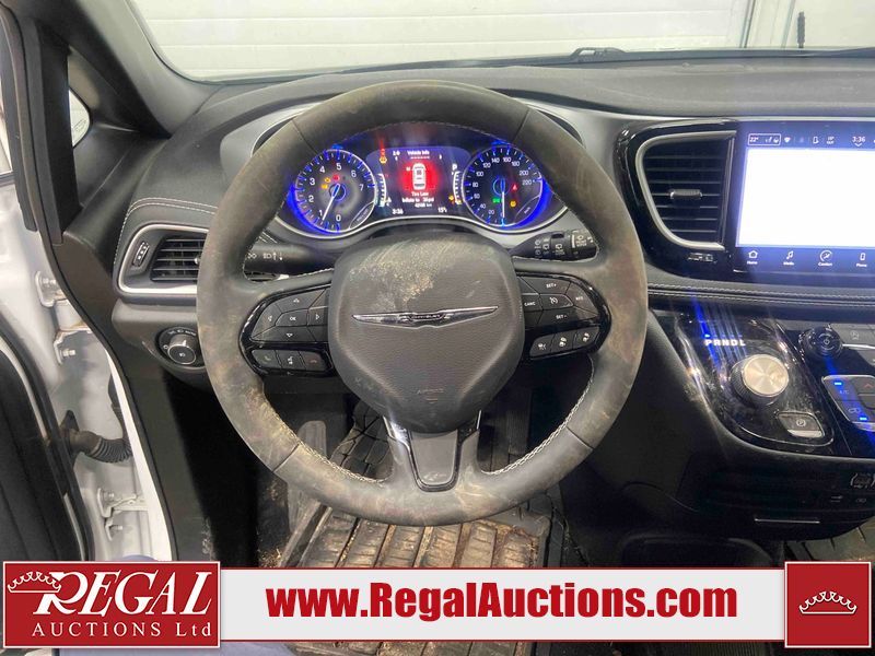 This 2022 CHRYSLER PACIFICA 4D VAN AWD 3.6L is powered by a 6 cylinder gasoline engine and an automatic transmission. It is equipped with four wheel drive. The van has seats for 7 people. The van has low mileage for its age. The vehicle has high value options including power seats, heated seats, and a backup camera. The check engine light is on. The body looks to be in good condition overall. There are minor chips on the front bumper. There are very minor scratches in many areas around the body. There are very minor chips in many areas around the body. There is very minor dent damage in a few areas around the body. The interior looks to be in good condition overall. The carpet is dirty. The windshield looks to be in good condition. All of the tires have lots of tread remaining.