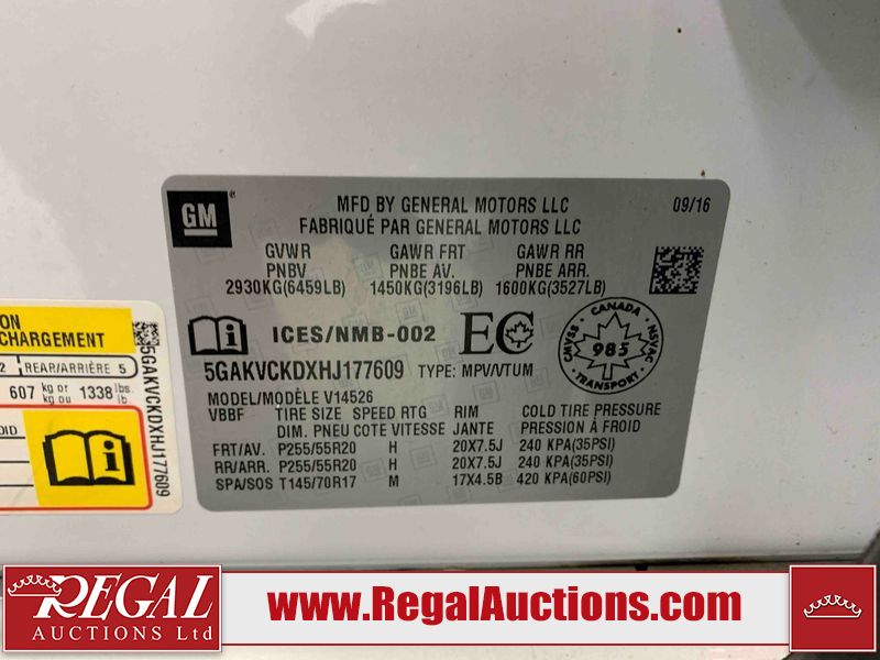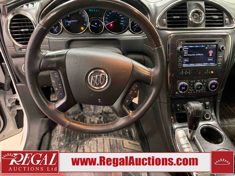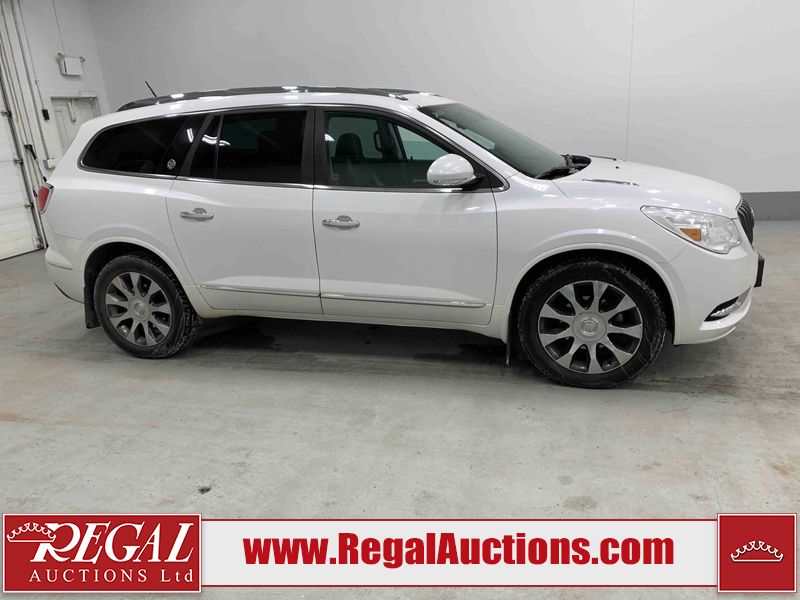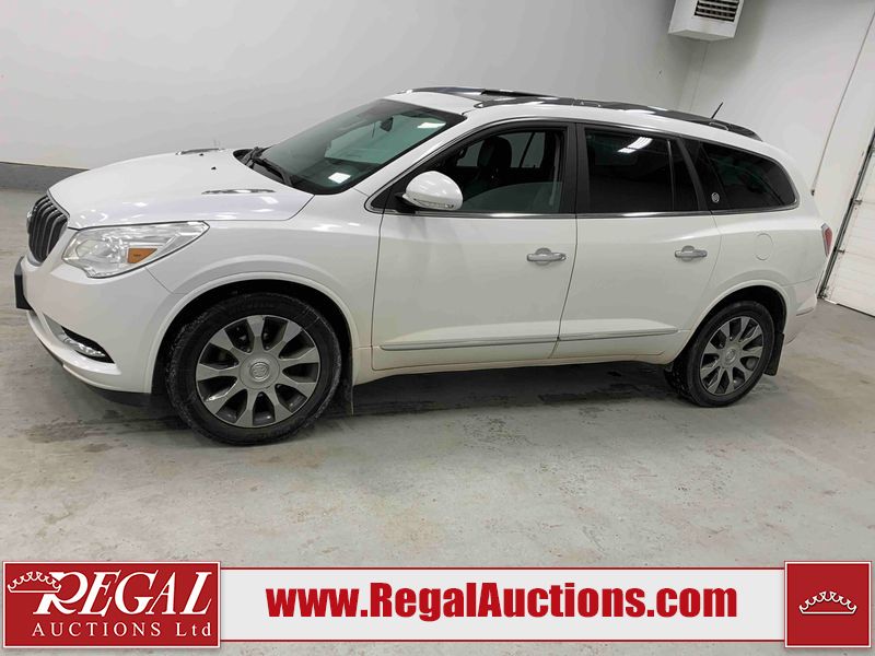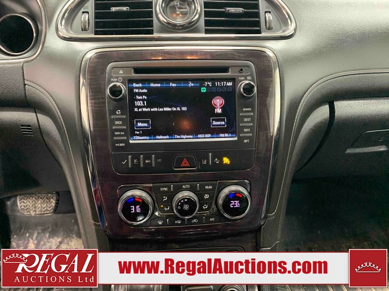 This 2017 BUICK ENCLAVE 4D UTILITY AWD is powered by a 3.6L 6 cylinder gasoline engine and an automatic transmission. It is equipped with four wheel drive. The SUV has seats for 7 people. The mileage is average considering the SUV's age. The vehicle has high value options including a sunroof, leather upholstery, power seats, heated seats, navigation, a backup camera, and a power lift gate. The body looks to be in good condition overall. There are incidental chips on the front bumper and grille. There are scratches on the rear bumper. There are very minor chips in a few areas around the body. There are very minor scratches in many areas around the body. The interior looks to be in good condition overall. The driver's seat is torn. The windshield looks to be in good condition. The front tires are both worn. The rear tires both have lots of tread remaining. This SUV is being sold by an automotive broker. The vehicle will be sold with the following declarations: Auctioneer Announcement "*TRACTION CONTROL LIGHT COMES ON INTERMITTENTLY* ", Claims Total $10,000 - $14,999 (See Footnote 1), and Out of Province - SK (See Footnote 2). Footnotes: 1) The vehicle's total recorded insurance claims history is between $10,000 - $14,999. This is the amount of money that was paid out by an insurance company for repairs to cover claims against the vehicle's insurance policy. This information is provided by CarFax. 2) The vehicle's last registered jurisdiction is Saskatchewan. The purchaser must have the vehicle undergo and pass an Out of Province inspection before it can be registered in Alberta. Regal Auctions Ltd. makes no guarantee or warranty, either express or implied, with respect to the data provided in this report. The information has been provided from the consignor and from sources generally believed to be reliable, however the accuracy of this information cannot be guaranteed by Regal Auctions.