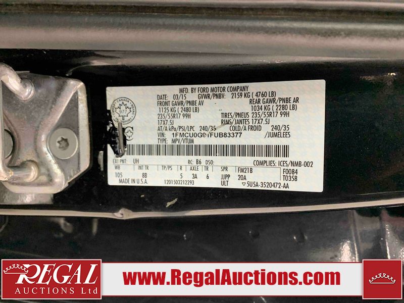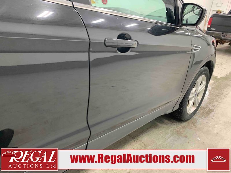 This 2015 FORD ESCAPE 4D UTILITY is powered by a 4-cylinder gasoline engine and an automatic transmission. It is a two-wheel drive model. The SUV has seats for 5 people. The mileage is average considering the SUV's age. The vehicle has high-value options including leather upholstery, power seats, heated seats, and a backup camera. The body looks to be in fair condition overall. There are chips on the front bumper, hood, and rear bumper. There are incidental scratches on the front bumper, hood, roof, left front fender, left front door, left rear door, left rear fender, rear bumper, rear door, and right rear fender. There is incidental rust on the hood. There is dent damage on the hood, right rear fender, and right front door. There are very minor chips in many areas around the body. There is very minor dent damage on the left front door. There are very minor scratches in a few areas around the body. The interior looks to be in good condition overall. The windshield is cracked. All of the tires have lots of tread remaining. This SUV is being sold by an automotive broker. Regal Auctions Ltd. makes no guarantee or warranty, either express or implied, with respect to the data provided in this report. The information has been provided from the consignor and from sources generally believed to be reliable, however the accuracy of this information cannot be guaranteed by Regal Auctions.
