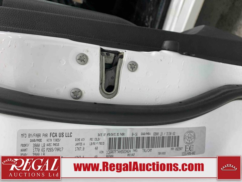 This 2017 RAM 1500 EXTENDED CAB F4WD is powered by a 395HP 5.7L 8 cylinder gasoline engine and an automatic transmission. It is equipped with four wheel drive. The truck has seats for 6 people. The truck has high mileage for its age. The Check Engine and Tire Pressure lights are on. The vehicle has some mechanical problems. The engine has a top end tick. (See Footnote 1) The body looks to be in rough condition overall. There is substantial hail on the hood, roof, left rear fender, right rear fender, right rear door, right front door, and right front fender. There is moderate hail on the left front fender, left front door, and left rear door. There is some rust on the right front fender. There are slight chips on the front bumper, hood, roof, rear bumper, and tail gate. There are incidental scratches on the front bumper, hood, roof, left front fender, left front door, rear bumper, tail gate, right rear fender, and right front fender. There is incidental rust on the roof. There is dent damage on the rear bumper and tail gate. There are very minor chips in many areas around the body. There are very minor scratches in some areas around the body. The interior looks to be in fair condition overall. The driver's seat is torn. The passenger seat and rear seats are stained. The dashboard is dirty. The windshield looks to be in good condition. All of the tires have lots of tread remaining. This truck is being sold by an automotive broker. The vehicle will be sold with the following declarations: Hail Damage (See Footnote 2). Footnotes: 1) We've identified some mechanical problems with the vehicle. However, the vehicle has not undergone a mechanical inspection and our findings are not to be considered a complete evaluation of the vehicle's mechanical condition. Review our Buyer Protection Policy to see how Regal Auctions protects you from undisclosed mechanical problems. 2) This vehicle shows signs of damage from a hail storm. Hail damage is not always clearly visible in photographs. Regal Auctions Ltd. makes no guarantee or warranty, either express or implied, with respect to the data provided in this report. The information has been provided from the consignor and from sources generally believed to be reliable, however the accuracy of this information cannot be guaranteed by Regal Auctions.