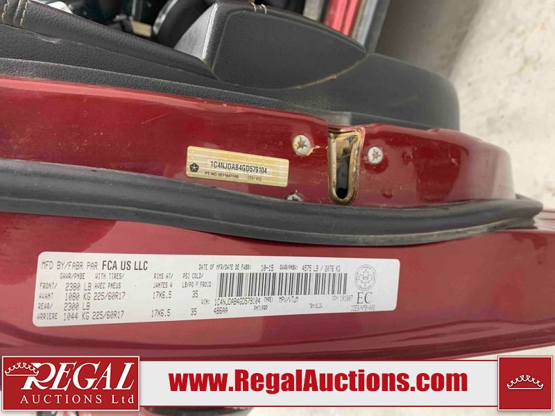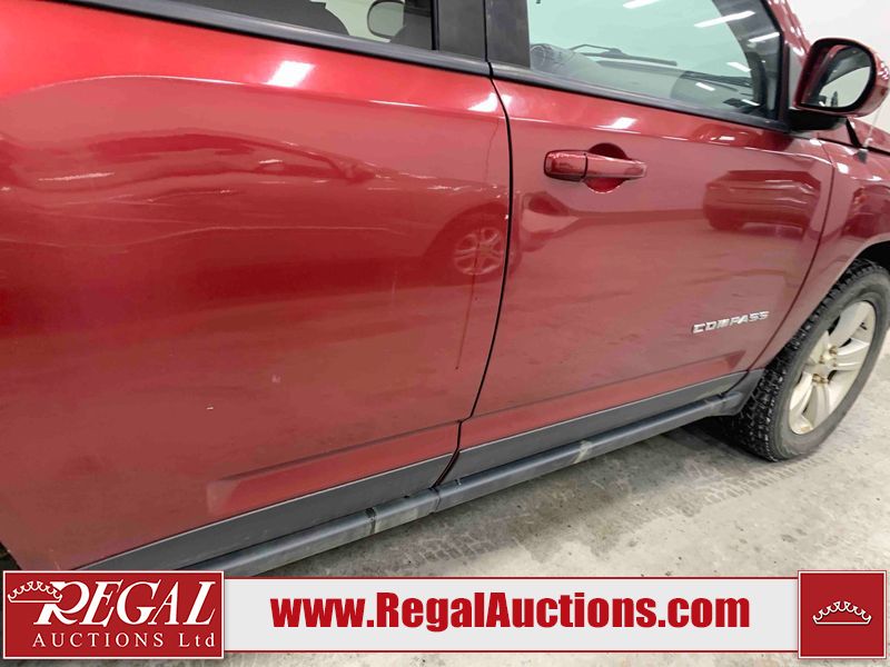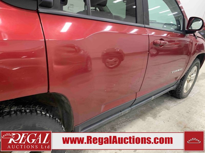 This 2016 JEEP COMPASS 4D UTILITY 4WD is powered by a 2.4L 4-cylinder gasoline engine and an automatic transmission. It is equipped with four-wheel drive. The SUV has seats for 5 people. The SUV has low mileage for its age. The vehicle has high-value options including a sunroof, leather upholstery, power seats, heated seats, and a backup camera. The Tire Pressure light is on. The body looks to be in fair condition overall. There are chips on the front bumper, hood, and rear bumper. There are scratches on the front bumper, rear bumper, right rear fender, right rear door, right front door, and right front fender. There is incidental rust on the left front fender and left rear fender. There is incidental paint peeling on the left rear fender. There is dent damage on the right rear fender, right rear door, and right front door. There are very minor chips in many areas around the body. There are very minor scratches in many areas around the body. The interior looks to be in good condition overall. The windshield looks to be in good condition. All of the tires have lots of tread remaining. This SUV is being sold by an automotive broker. Regal Auctions Ltd. makes no guarantee or warranty, either express or implied, with respect to the data provided in this report. The information has been provided from the consignor and from sources generally believed to be reliable, however the accuracy of this information cannot be guaranteed by Regal Auctions.