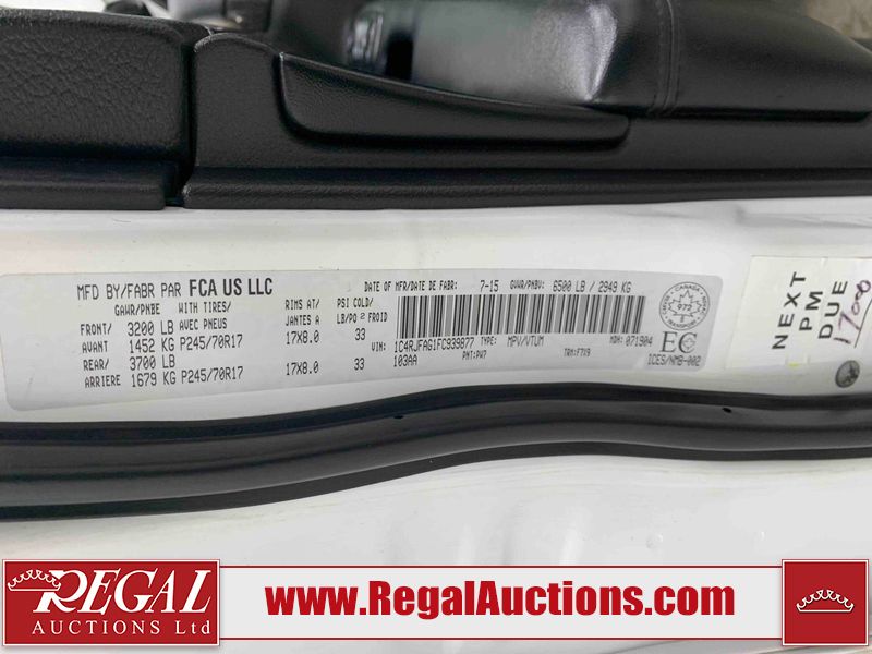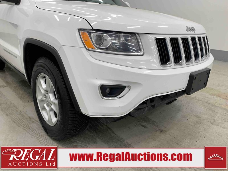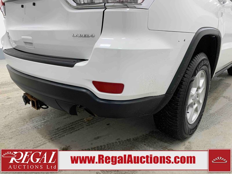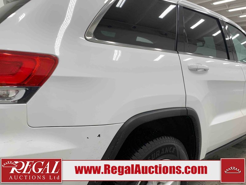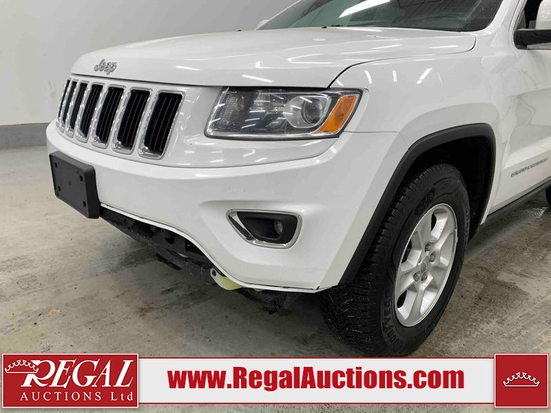 This 2015 JEEP GRAND CHEROKEE LAREDO 4D UTILITY 4WD is powered by a 3.6L 6 cylinder gasoline engine and an automatic transmission. It is equipped with four wheel drive. The SUV has seats for 5 people. The SUV has low mileage for its age. LAREDO is a very popular trim level. The vehicle has high value options including power seats. The body looks to be in fair condition overall. The rear bumper is cracked. There are chips on the front bumper and rear bumper. There are scratches on the front bumper, hood, and rear bumper. There are very minor chips in many areas around the body. There is very minor dent damage on the hood. There are very minor scratches in many areas around the body. The interior looks to be in fair condition overall. There are a fair amount of stained on the driver's seat and passenger seat. The windshield is chipped. All of the tires have lots of tread remaining. This SUV is being sold by an automotive broker. The vehicle will be sold with the following declarations: Out of Province - MB (See Footnote 1). Footnotes: 1) The vehicle's last registered jurisdiction is Manitoba. The purchaser must have the vehicle undergo and pass an Out of Province inspection before it can be registered in Alberta. Regal Auctions Ltd. makes no guarantee or warranty, either express or implied, with respect to the data provided in this report. The information has been provided from the consignor and from sources generally believed to be reliable, however the accuracy of this information cannot be guaranteed by Regal Auctions.