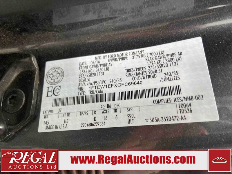 2016 FORD F150 LARIAT SUPERCAB SWB 4WD 5.0L