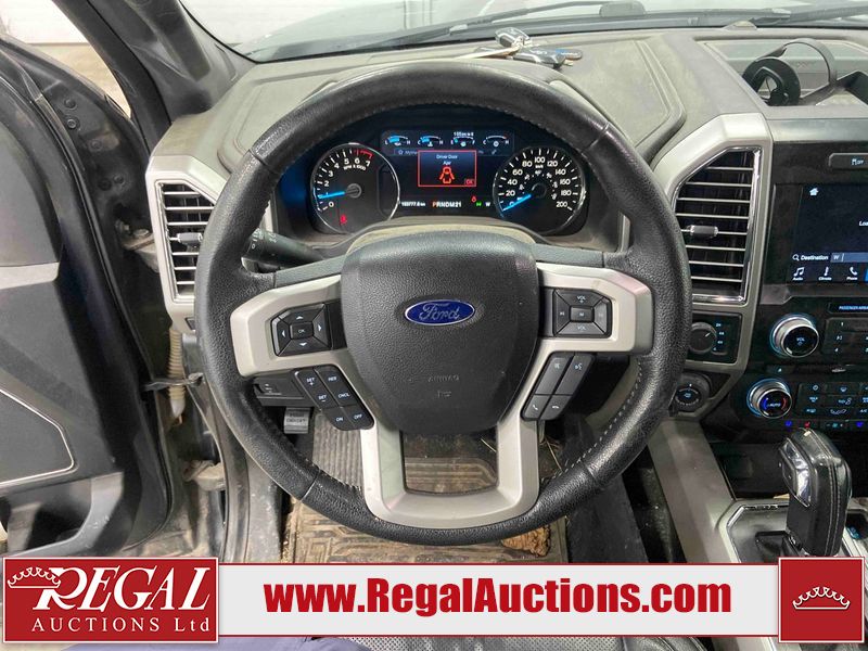 This 2016 FORD F150 LARIAT SUPERCAB SWB 4WD 5.0L is powered by a 8 cylinder gasoline engine and an automatic transmission. It is equipped with four wheel drive. The truck has seats for 5 people. The truck has low mileage for its age. LARIAT is a very popular trim level. The vehicle has high value options including leather upholstery, power seats, heated seats, navigation, and a backup camera. The body looks to be in fair condition overall. The fascia is missing from the front bumper. There are chips on the front bumper, grille, hood, roof, left front fender, left rear door, left rear fender, rear bumper, right front door, and right front fender. There are minimal scratches on the front bumper, left front door, rear bumper, right rear fender, and right front fender. There is dent damage on the front bumper. There are very minor scratches in many areas around the body. There are very minor chips in some areas around the body. There is very minor dent damage on the right front door. The interior looks to be in fair condition overall. The rear seats are stained. The dashboard is dirty. The carpet is dirty. The windshield is cracked. The rear tires are worn. The front tires have lots of tread remaining.