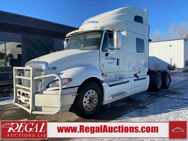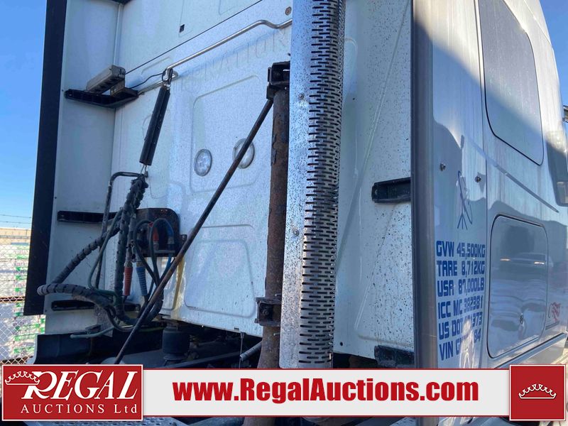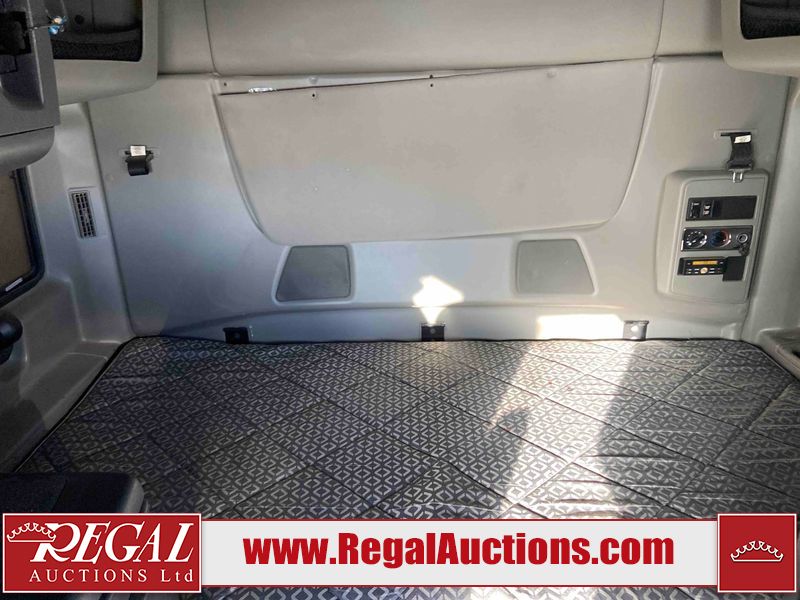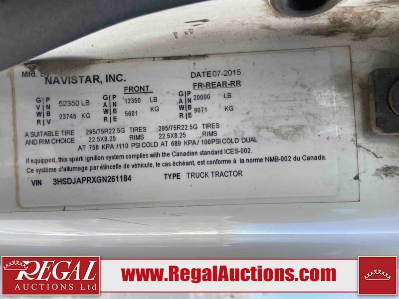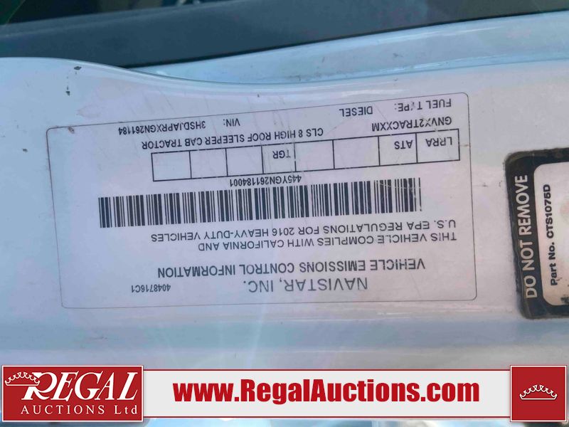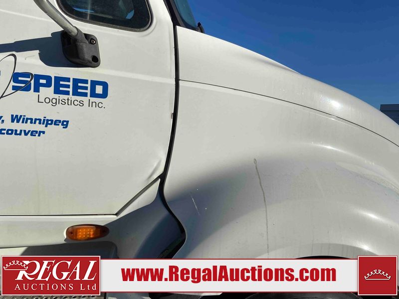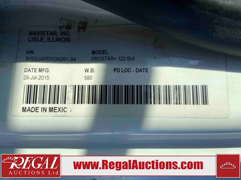 This unit is a 2016 International Prostar+ 122 tandem axle sleeper highway tractor. The odometer shows 1,276,758 kilometers and 20,625 engine hours. It’s GVWR is 52,350 pounds. It has a CVIP of 10/2025. The driver seat is worn. It appears to be misaligned from the bracket. Both seats are stained. Both beds are worn. The rear facia is missing pinions. This unit is equipped with a stereo system, rear, climate control, refrigerator, and a ELD. All panels are showing chips, scratches, and scuffs. The front crossbar is scuffed. The driver’s door has peeling chrome. Both doors have dents and peeling paint. There left Rear mud guard bracket is dented. The rear right cap side is dented. This unit starts and runs without a boost. The engine light is on, unit is showing a transmission fault code, but it does drive. This unit is powered by a Cummins X15 14.9L six cylinder turbo diesel engine and an automatic transmission. The tires are mounted to alloy rims and appear to be in good enough condition for use. This unit is equipped with air brakes, air suspension, sliding fifth wheel, and a differential lock. It has a 12,350 pound front axle and 40,000 pound rear axles.