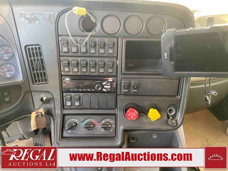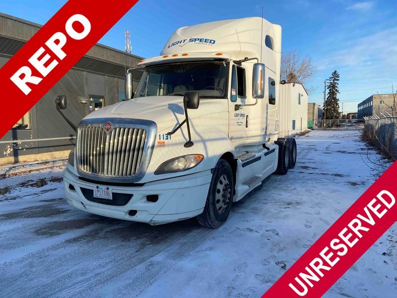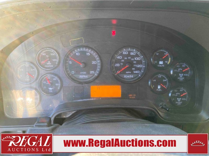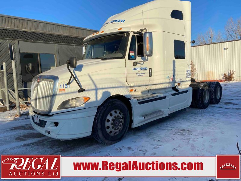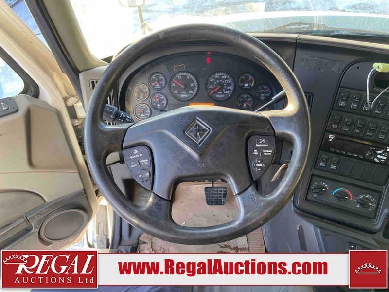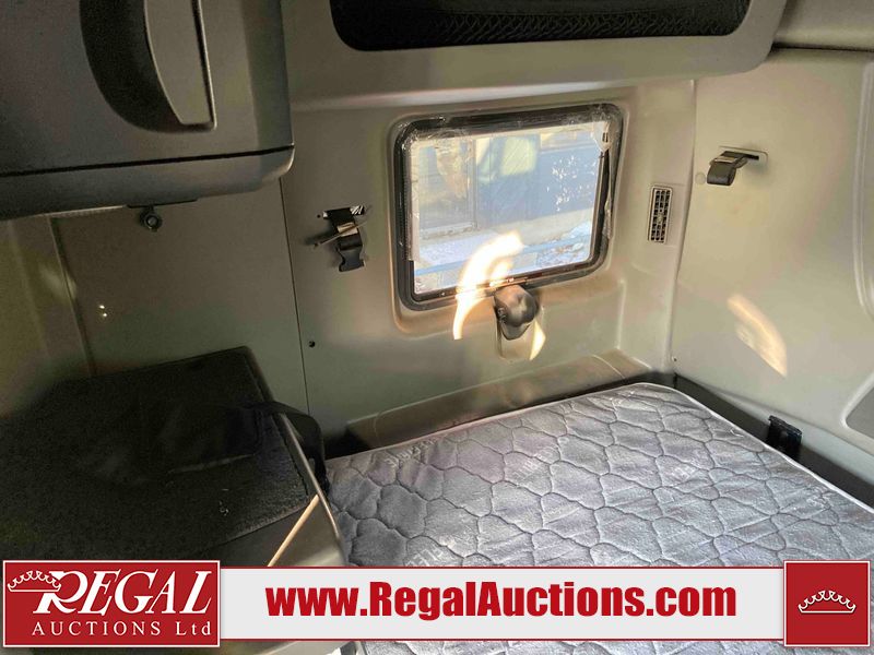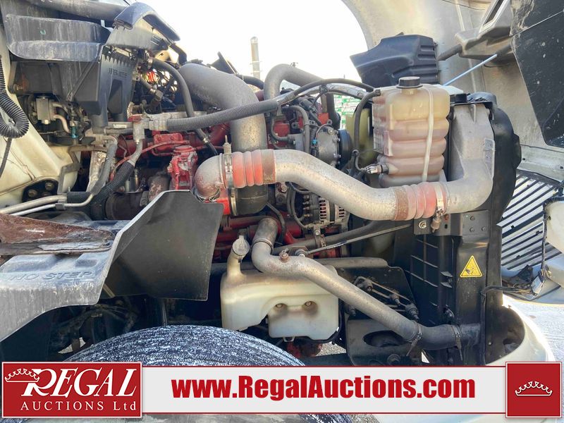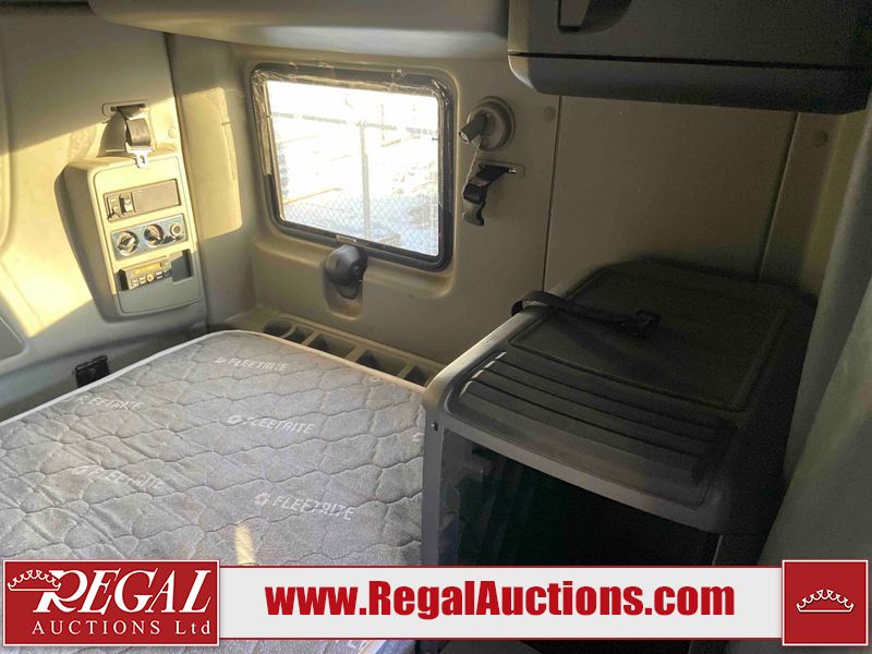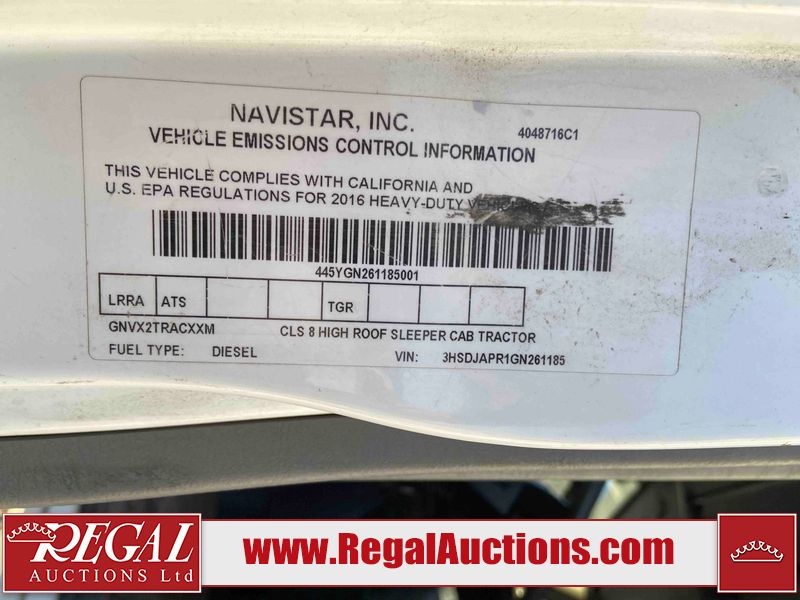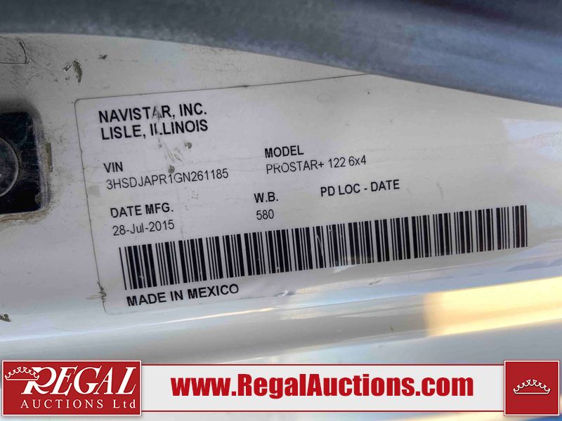 This unit is a 2016 international LF687 Prostar+ 122 6X4 Tandem axle dual sleeper highway tractor. The odometer shows 1163686 kilometers and 25,053 engine hours. It has a GVWR of 52,350 pounds its CVIP is 10/2025. The interior is dirty. Both armrests are torn. The passenger seat seat is stained. Both mattresses and the steering wheel are worn. One of the dashboard gauge covers are missing. This unit is equipped with a stereo system, rear climber control, refrigerator, and a ELD. All panels are showing chips, scratches, and scuffs. The windshield is chipped. Both doors, and rear cab have dents. The left driver door mirror has peeling chrome. The left rear fender is cracked. This unit starts and runs without a boost. This unit is powered by a Cummins 14.9L 6 cylinder turbo diesel engine and an automatic transmission. The tires are mounted to alloy rims and appear to be in good enough condition for use. This unit is equipped with air brakes, air, suspension, and a rear differential lock. This unit has a 12,350 front axles and a 40,000 pound rear axles.