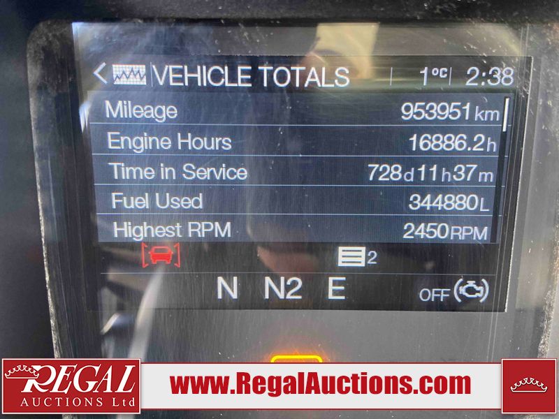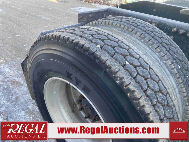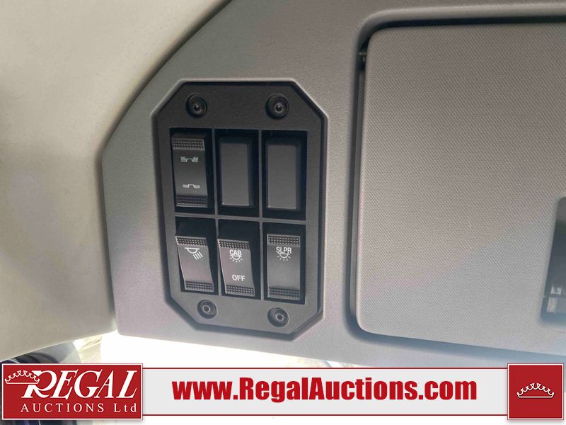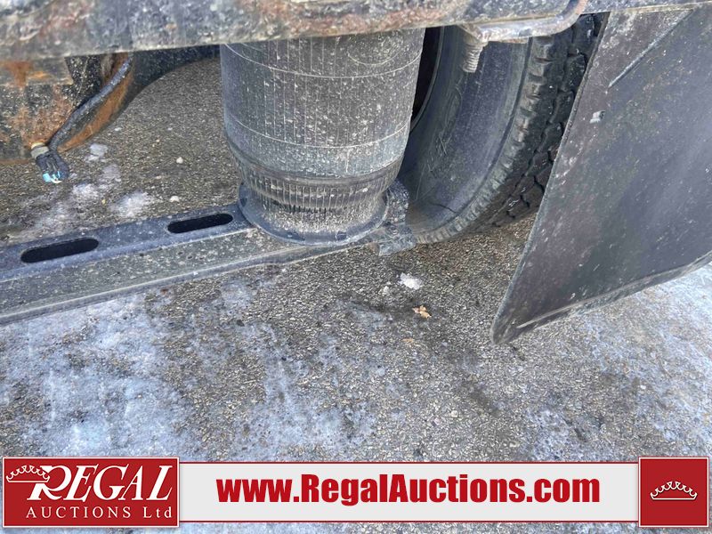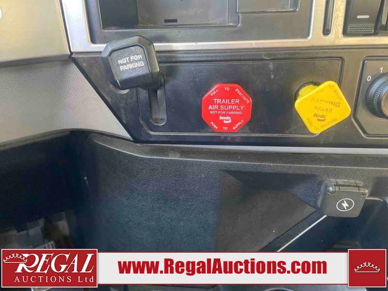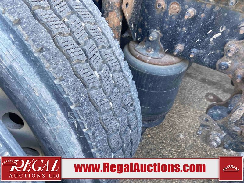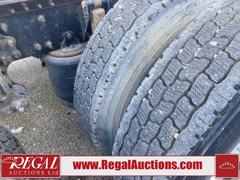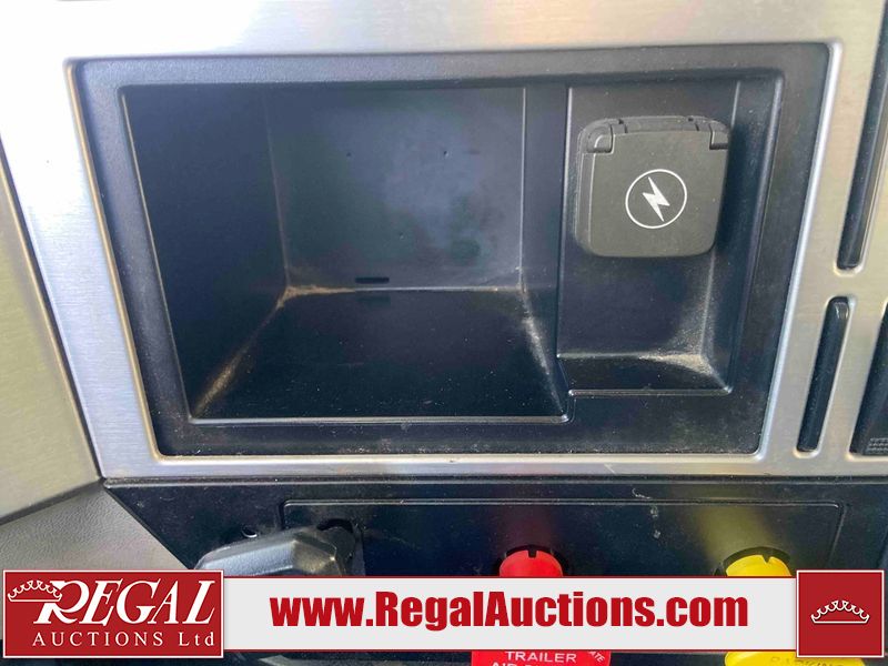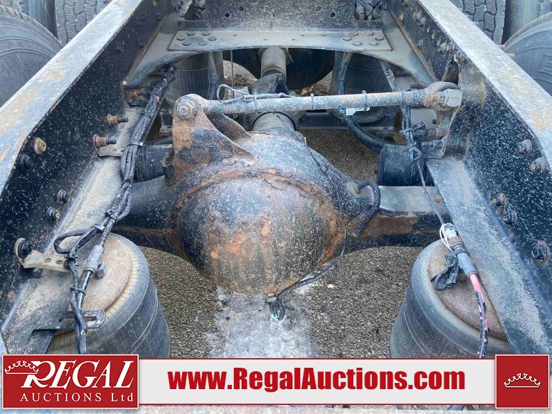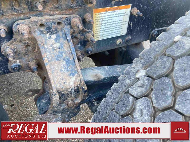 This unit is a 2019 Mack Anthem model tandem axle dual sleeper highway tractor. The odometer shows 953,951 km and 16,885 engine hours. It’s GVWR is 23,600 kg. Its CVIP is 04/2026. The interior is dirty. The passenger seat is stained. Both seat armrest are torn. There is adhesive damage on the dash. The rear cab wall and upper mattress are stained. The cab floor mat is lifting. This unit is equipped with a stereo system, rear climate control, and a refrigerator. All panels are showing chips, scratches, and scuffs. The crash bar fascia is cracked. The right front fender has peeling paint. The left front door panel is cracked and has peeling paint. This unit starts and runs without a boost. ACC unavailable code, missing communication from adaptive cruise control ECU codes. This unit is powered by a 12.8 L six cylinder turbo, diesel engine and an automatic transmission. The tires are mounted to alloy rims and appear to be good enough condition for use. This unit is equipped with air brakes, air, suspension, sliding fifth wheel, differential lock, and rear sliding axles. It has a 5400 KG front axle and 9100 KG rear axles.