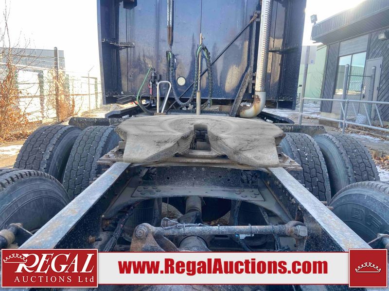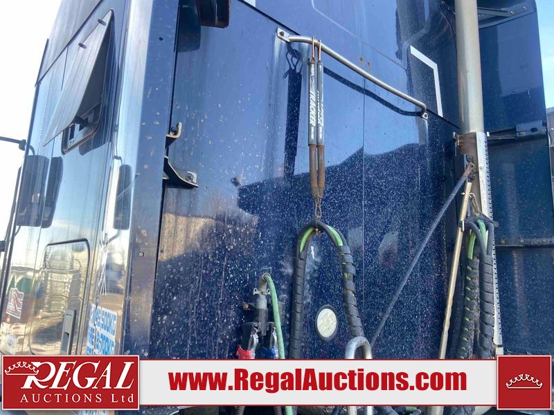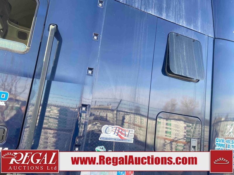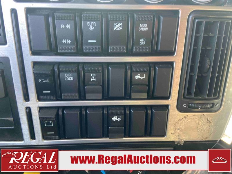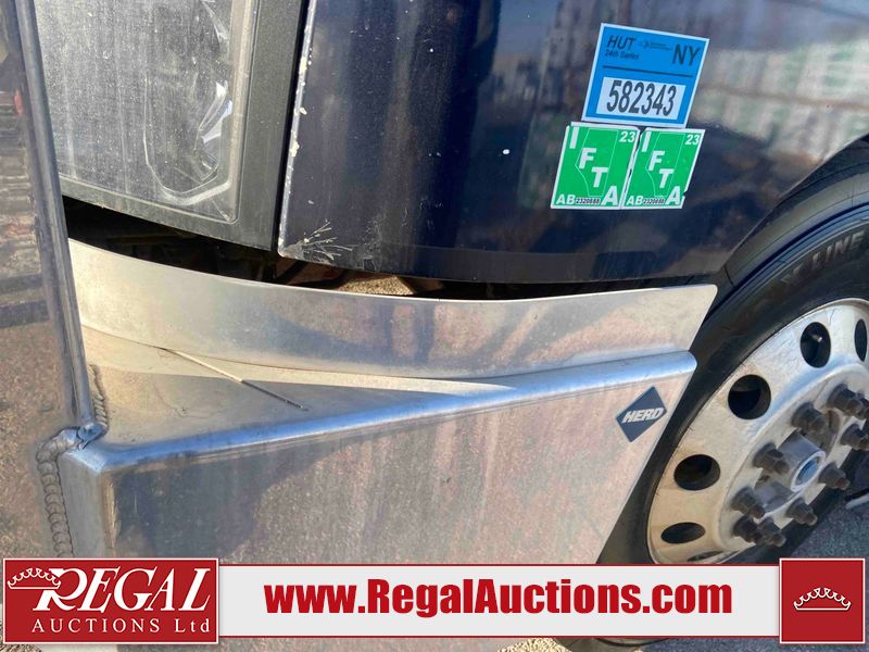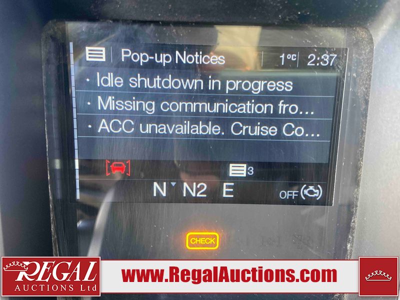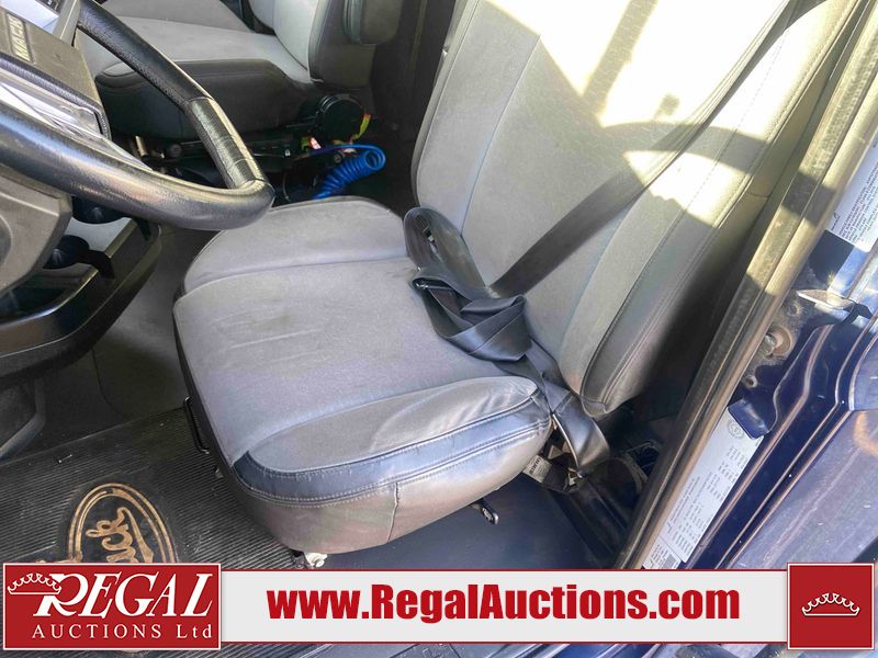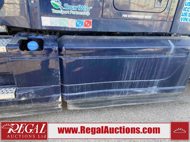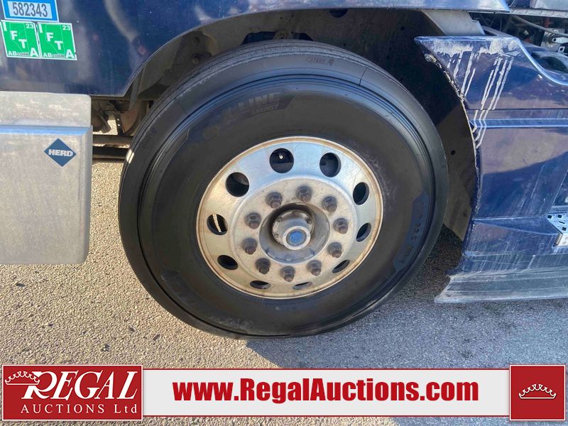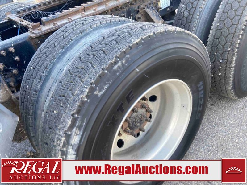 This unit is a 2019 Mack Anthem model tandem axle dual sleeper highway tractor. The odometer shows 953,951 km and 16,885 engine hours. It’s GVWR is 23,600 kg. Its CVIP is 04/2026. The interior is dirty. The passenger seat is stained. Both seat armrest are torn. There is adhesive damage on the dash. The rear cab wall and upper mattress are stained. The cab floor mat is lifting. This unit is equipped with a stereo system, rear climate control, and a refrigerator. All panels are showing chips, scratches, and scuffs. The crash bar fascia is cracked. The right front fender has peeling paint. The left front door panel is cracked and has peeling paint. This unit starts and runs without a boost. ACC unavailable code, missing communication from adaptive cruise control ECU codes. This unit is powered by a 12.8 L six cylinder turbo, diesel engine and an automatic transmission. The tires are mounted to alloy rims and appear to be good enough condition for use. This unit is equipped with air brakes, air, suspension, sliding fifth wheel, differential lock, and rear sliding axles. It has a 5400 KG front axle and 9100 KG rear axles.