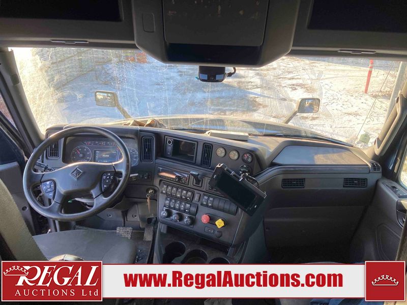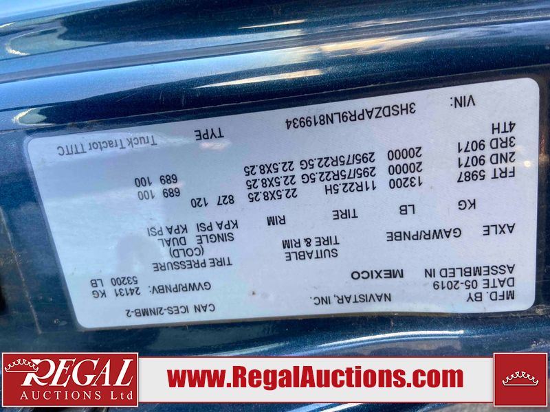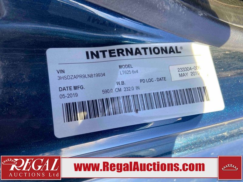 This unit is a 2020 International LT 625 tandem axle sleeper highway tractor. The odometer shows 1,489,481 and 20,031 engine hours. It has a GVWR of 53,200 pounds. Its CVIP is 05/2026. The interior is dirty. Both seats are stained. The passenger armrest is torn. Both beds are worn. One of the cupboards is missing the door. There is a extra mirror in the rear. This unit is equipped with a stereo system, rear climate controls, refrigerator, and a ELD. All panels are showing chips, scratches, and scuffs. The engine cover is cracked and has peeling paint. The front left mirror housing is broken. The driver side lower fascia is cracked. The rear bumper is bent. This unit starts and runs without a boost. This unit is powered by a Cummins X15 14.9 L six cylinder turbo, diesel engine and a automatic transmission. The tires are mounted to alloy rims and appeared to be a good enough condition for use. This unit is equipped with air brakes, air, suspension, and rear locking axles. It has a 13,200 pound front axle and 40,000 pound rear axles.