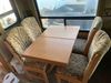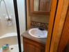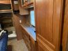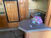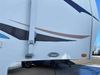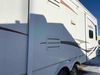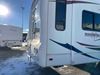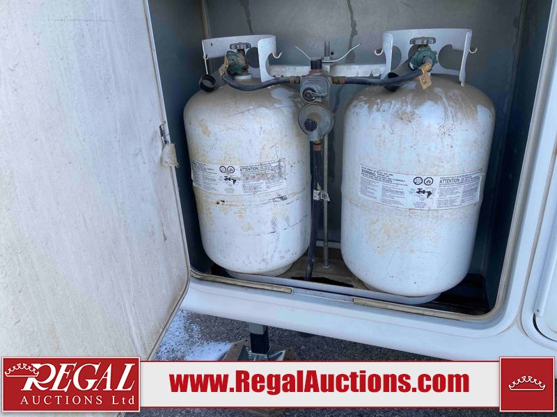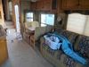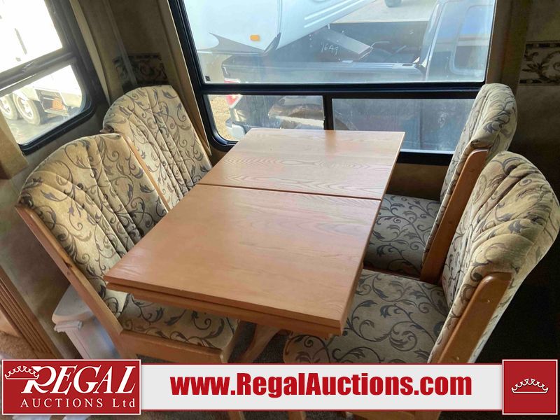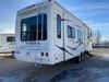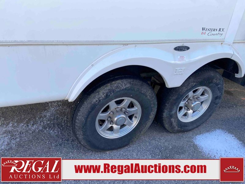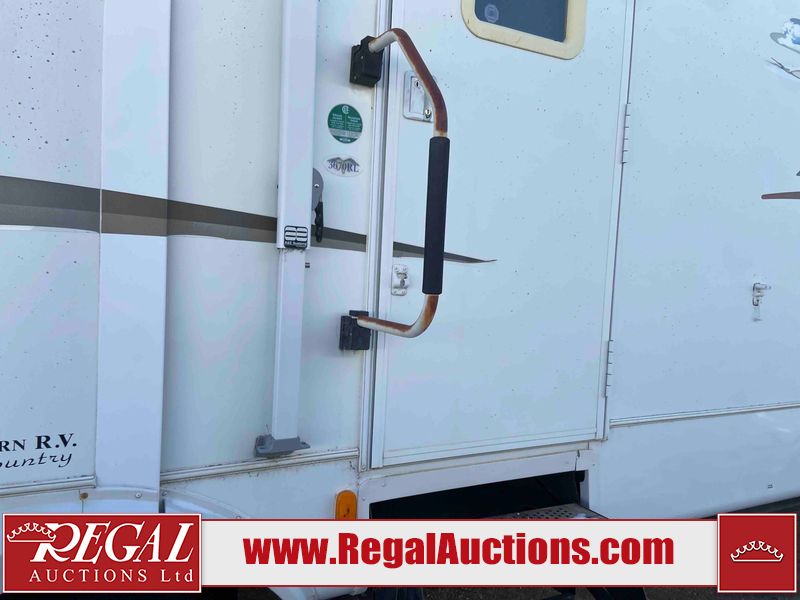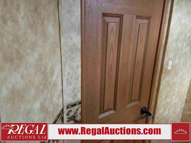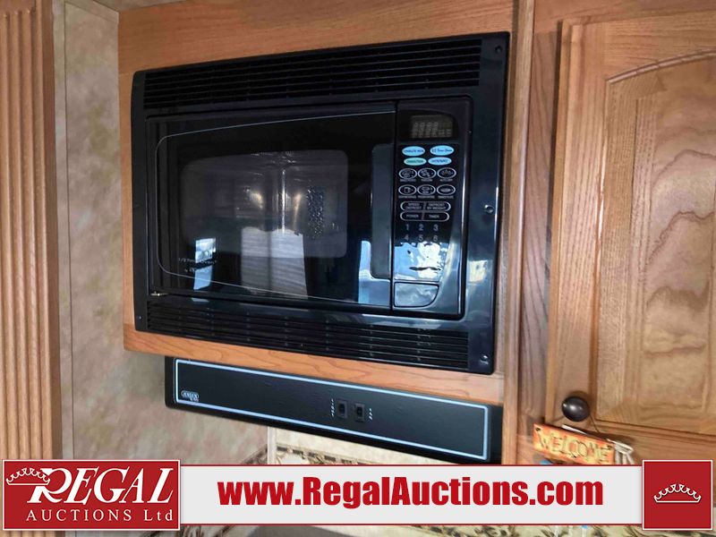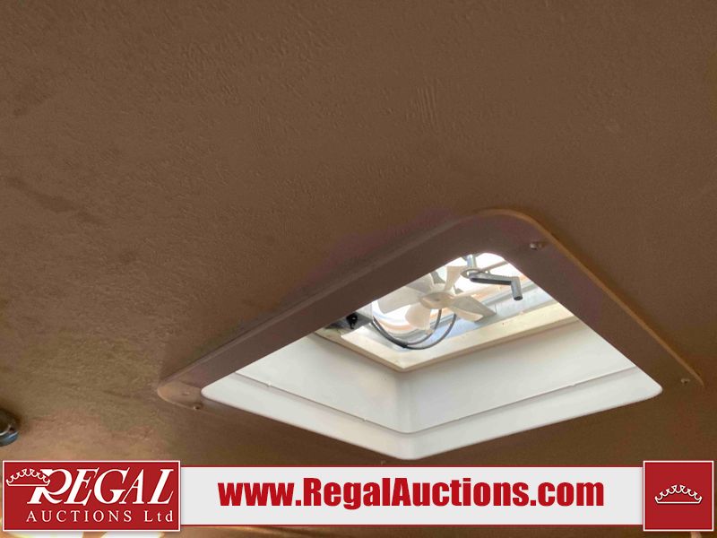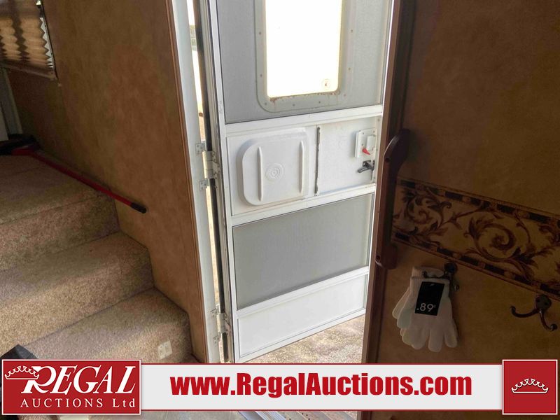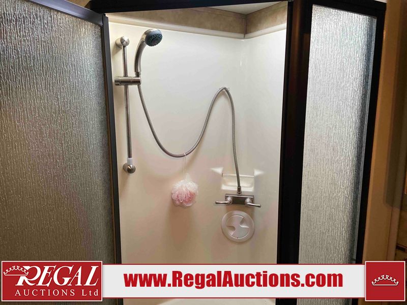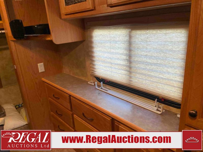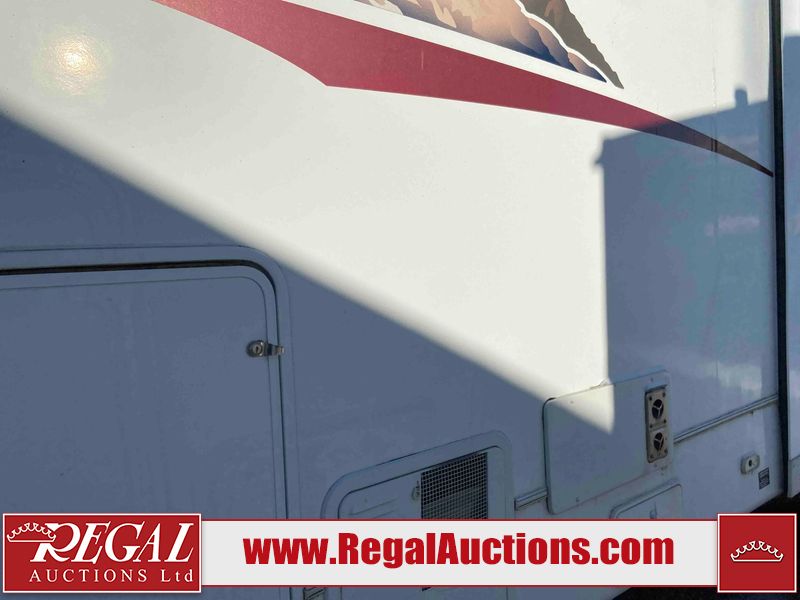 This RV is a 2008 Jayco bighorn heartlands 3670RL model tandem axle 5th wheel trailer. This unit has a single door entry, roof air, and four slide outs, accommodating the living area. The interior is dirty. Some walls are showing scratches and scuffs. The bedroom/kitchenette sky fan trim is cracked. The bed is worn. The bathroom ceiling and kitchenette wall is showing water damage. The kitchenette floor is lifting. The exterior walls are made of hard wall fiberglass. Most panels are showing scratches and scuffs. Some of the weatherstripping is peeling. The rear wall is showing mildew. The rear right fender is dented. Some decals are peeling. The battery is missing. There appears to be an electrical short in the slide out system as it lags continuously when extending or closing. This unit is equipped with two propane tanks. The tires are mounted to alloy rims and appeared to be in good enough condition for use. This unit is equipped with two televisions, refrigerator, microwave, three burner stove, top, oven, electrical fireplace, and a stereo system. The layout consist of a master bedroom/bathroom in the front, kitchenette/dinette in the center, and a living area in the rear.